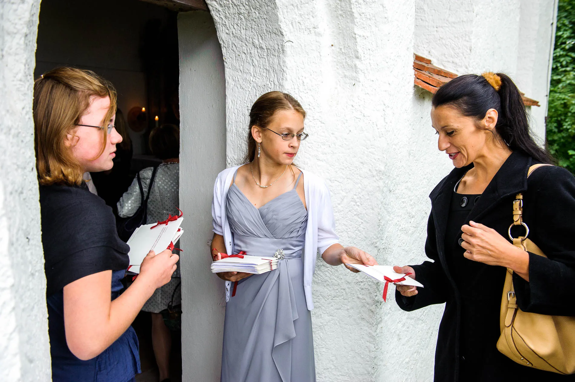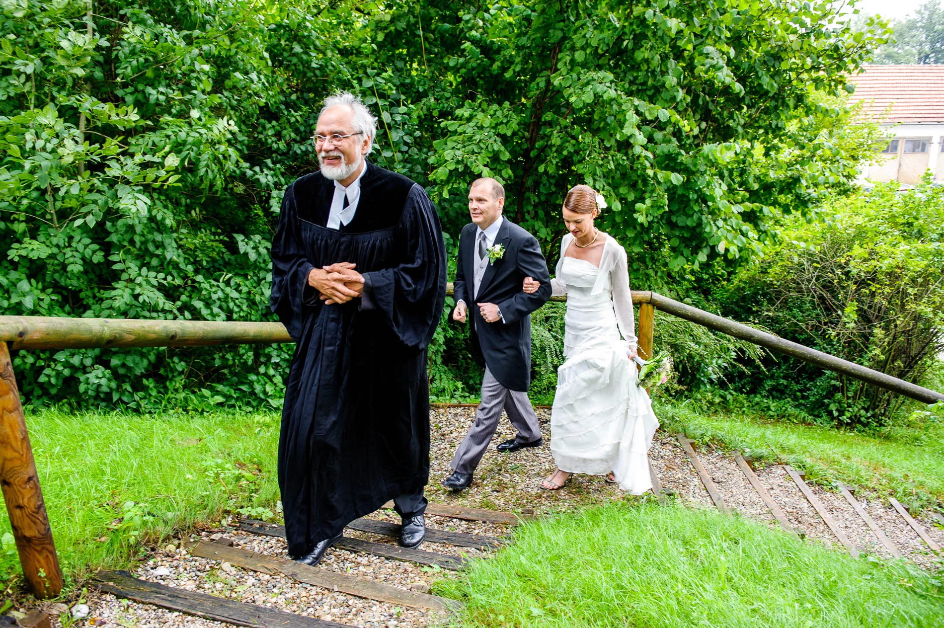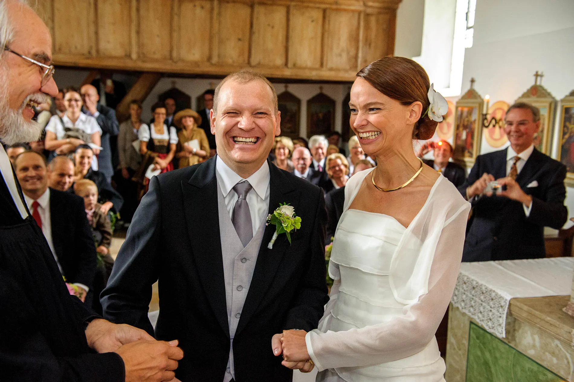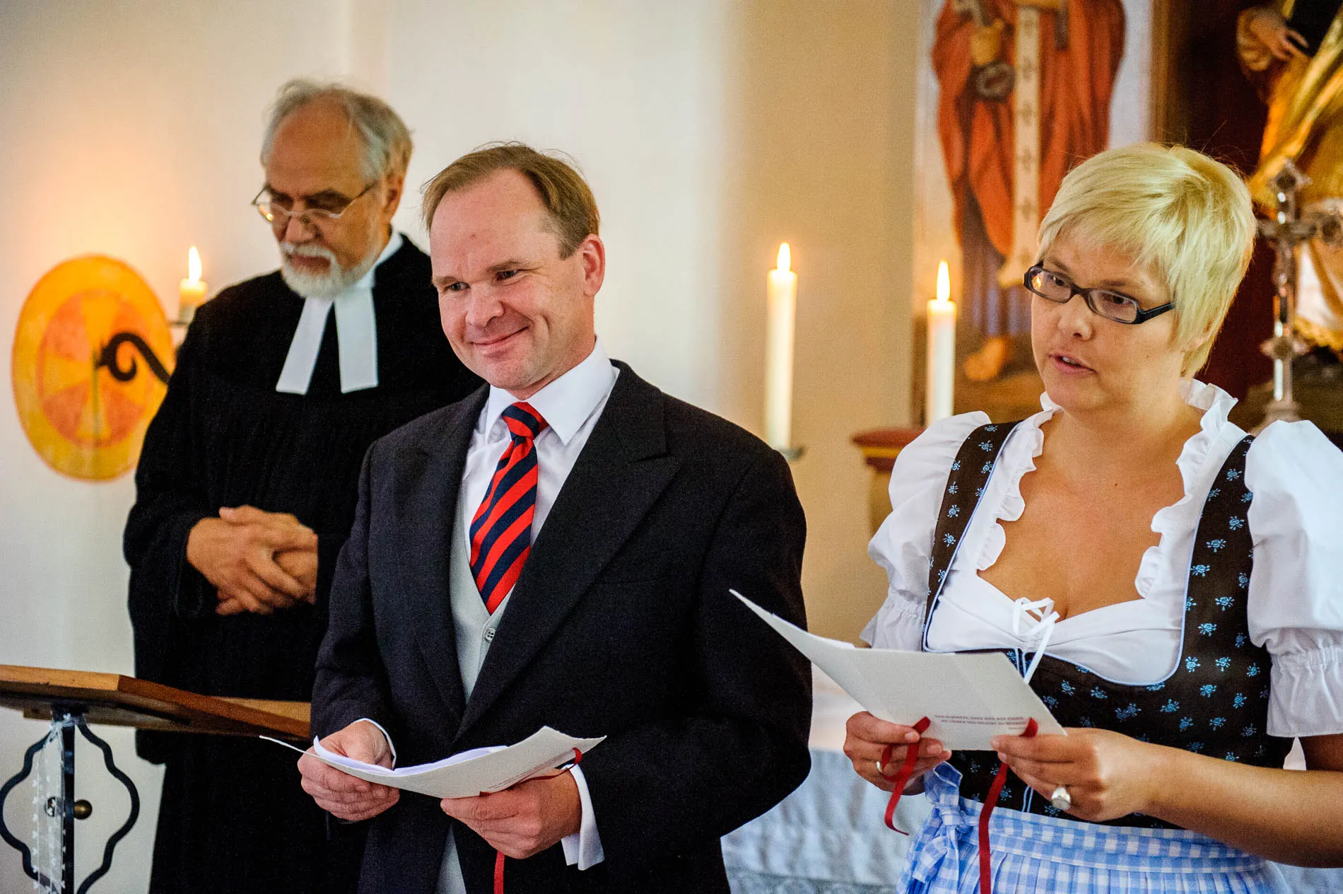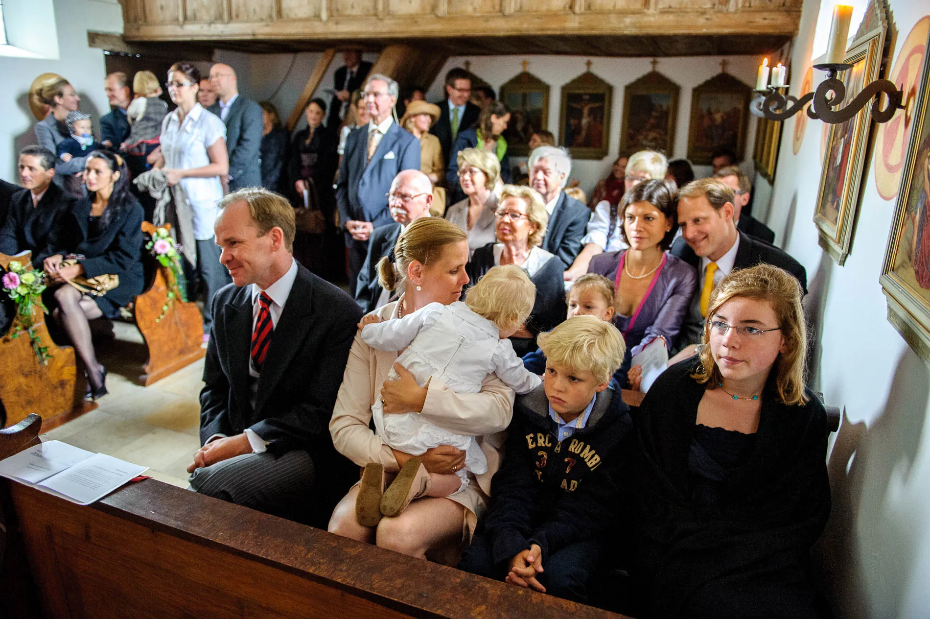 Auf einem Hügel thront die romanische Kirche aus dem 11. Jahrhundert. Hier können sowohl evangelische als auch katholische Trauungen stattfinden – ein Detail, das für viele Paare die Planung erleichtert. Mein Brautpaar entschied sich für den klassischen Einzug: gemeinsam, bestens gelaunt, der Pfarrer voran. In der Kirche wechselten sich Tränen der Freude und Tränen der Rührung ab – ein Wechselspiel, das selbst für einen erfahrenen Hochzeitsfotografen nie Routine wird.