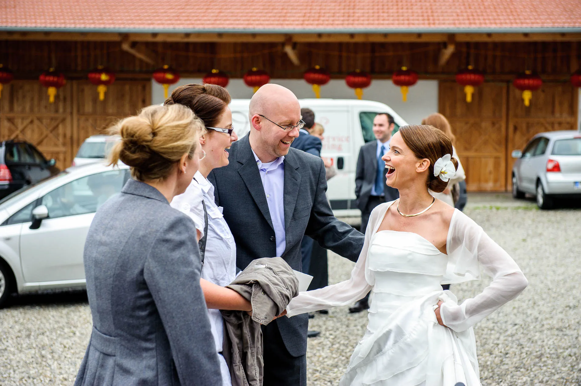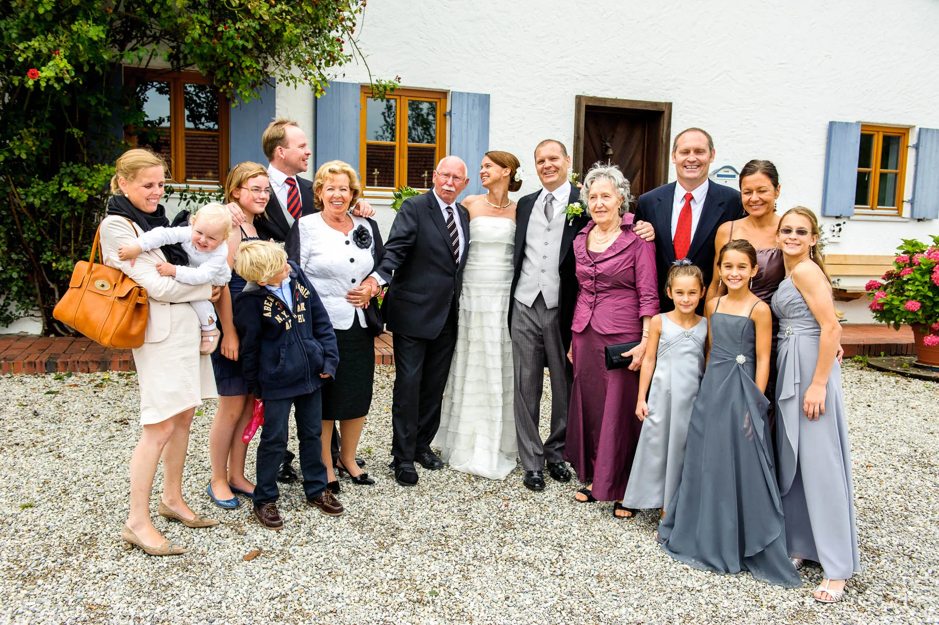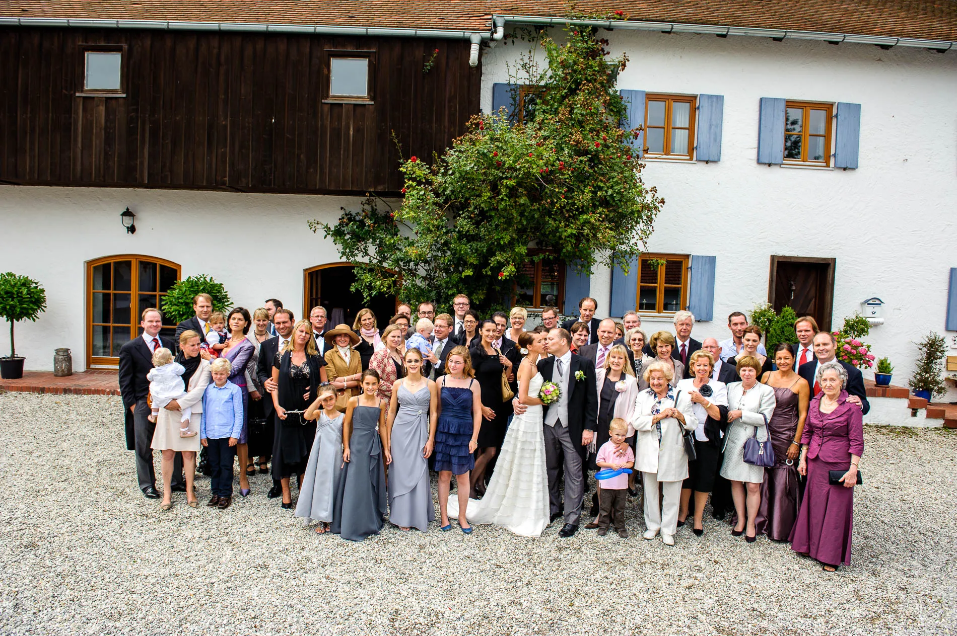 Am Nachmittag versammelten sich alle Gäste zum großen Gruppenfoto. Ein Bild, das zwar organisatorisch immer einer kleinen logistischen Meisterleistung gleicht, aber am Ende unbezahlbar ist. Am Abend verlagerte sich die Feier in den Stadl – eine Location, die rustikalen Charme mit ausgelassener Stimmung verbindet. Dort wurde bis spät in die Nacht getanzt, gelacht und gefeiert, ohne dass jemand auf die Uhr schauen musste.