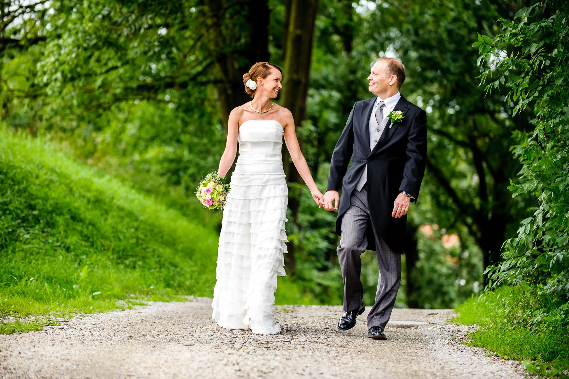 Mein Brautpaar wünschte sich kein ausgedehntes Shooting. Stattdessen spazierten wir entspannt über das weitläufige Gelände. Dabei halte ich mich bei der Reportage dezent im Hintergrund, beim Brautpaarshooting gebe ich kleine Hinweise – nehme aber auch gerne Ideen des Brautpaars auf. So entstanden natürliche Portraits, mal mit einem Augenzwinkern, mal in Bewegung. Für mich als Hochzeitsfotograf ist das die schönste Art zu arbeiten: authentisch, lebendig und mit Raum für die Persönlichkeit des Paares.