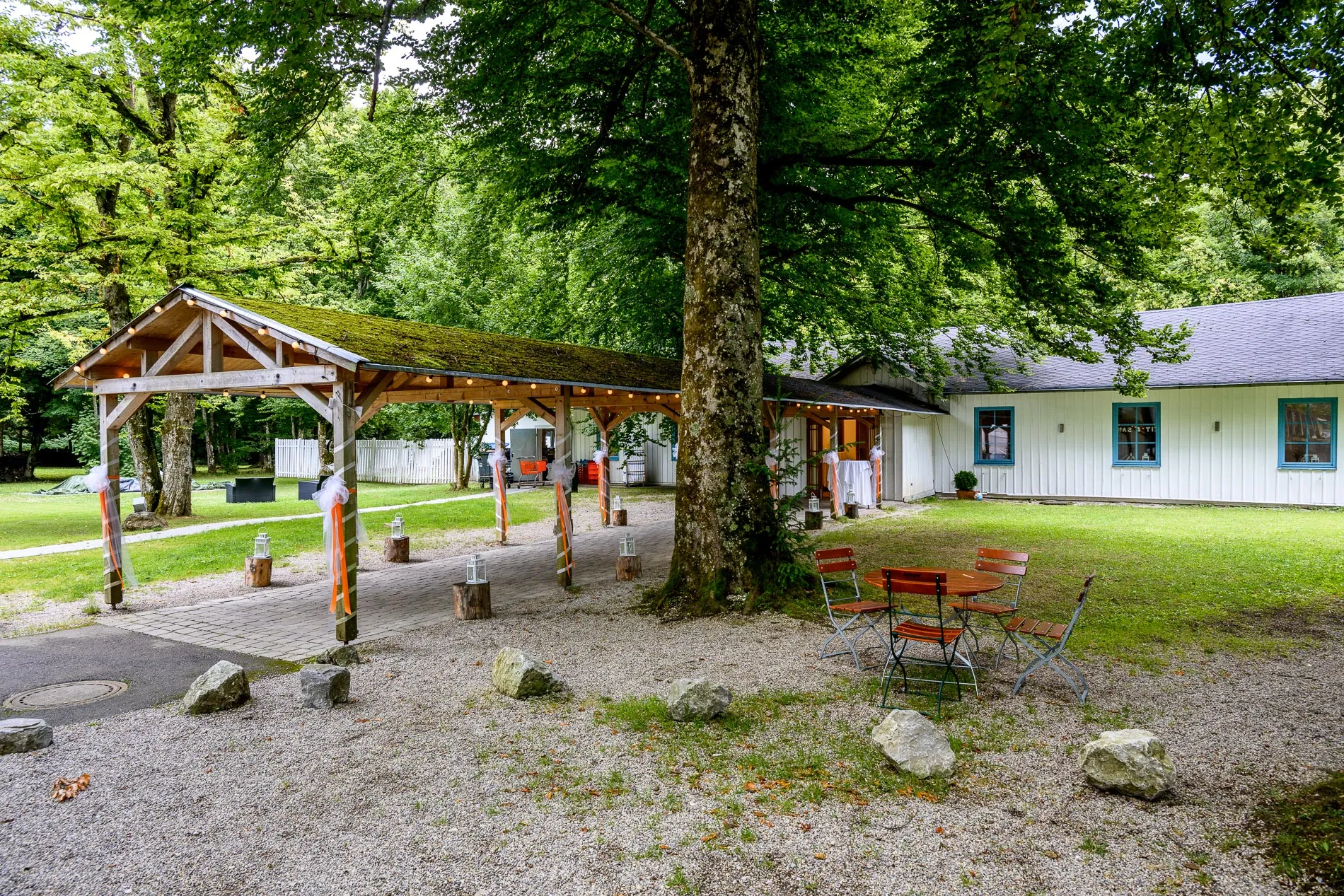 Das Waldhaus zur alten Tram liegt idyllisch am südlichen Rand des Grünwalder Forstes, nur wenige Kilometer von München entfernt. Wer hier heiratet, bekommt Natur, Ruhe und gleichzeitig die Nähe zur Stadt – eine Kombination, die nicht viele Locations bieten. Als Hochzeitsfotograf München habe ich hier bereits mehrere Feiern begleitet und weiß: die Mischung aus ländlicher Idylle und professioneller Gastronomie funktioniert erstaunlich gut.