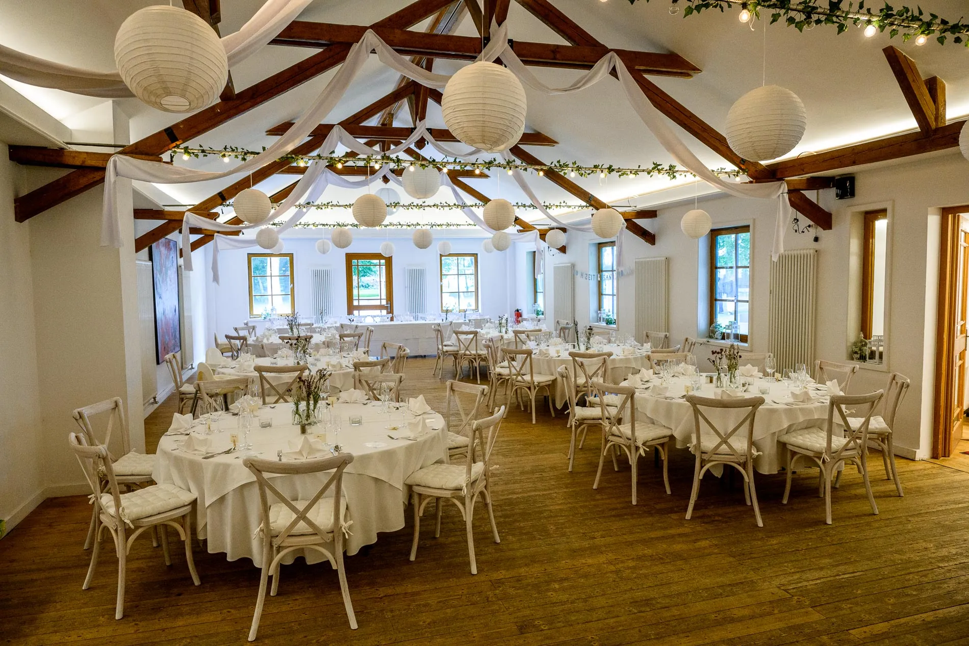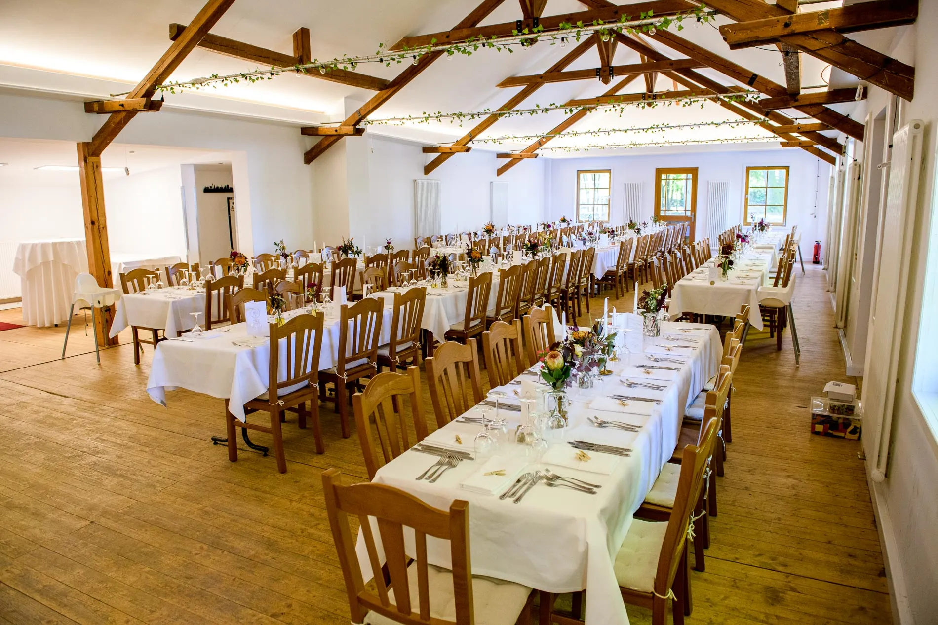 Der Feststadel – modernisiert, aber mit nostalgischem Charme, Platz für bis zu 180 Gäste und viel Raum für individuelle Dekoration.