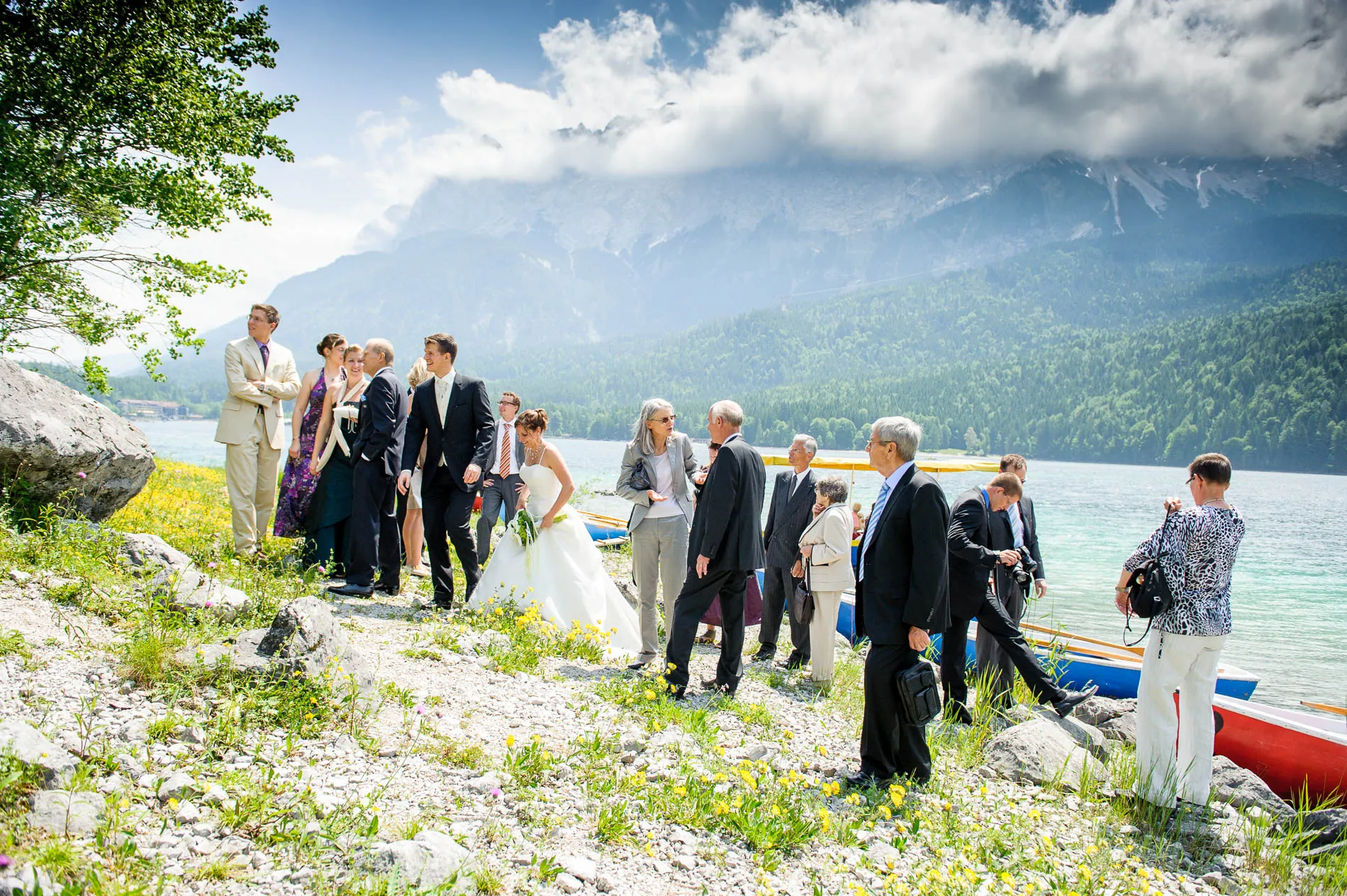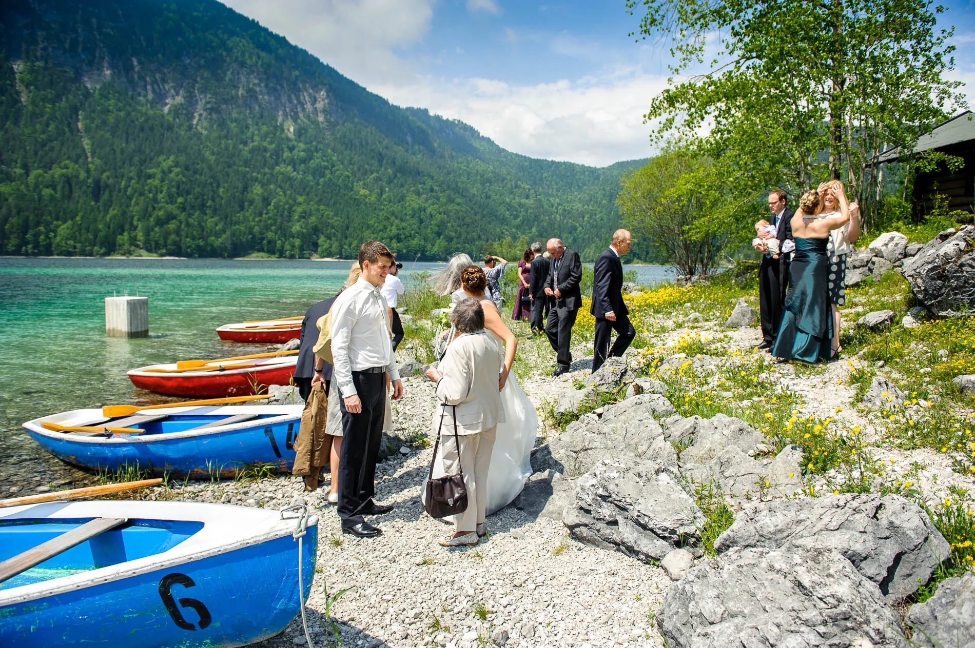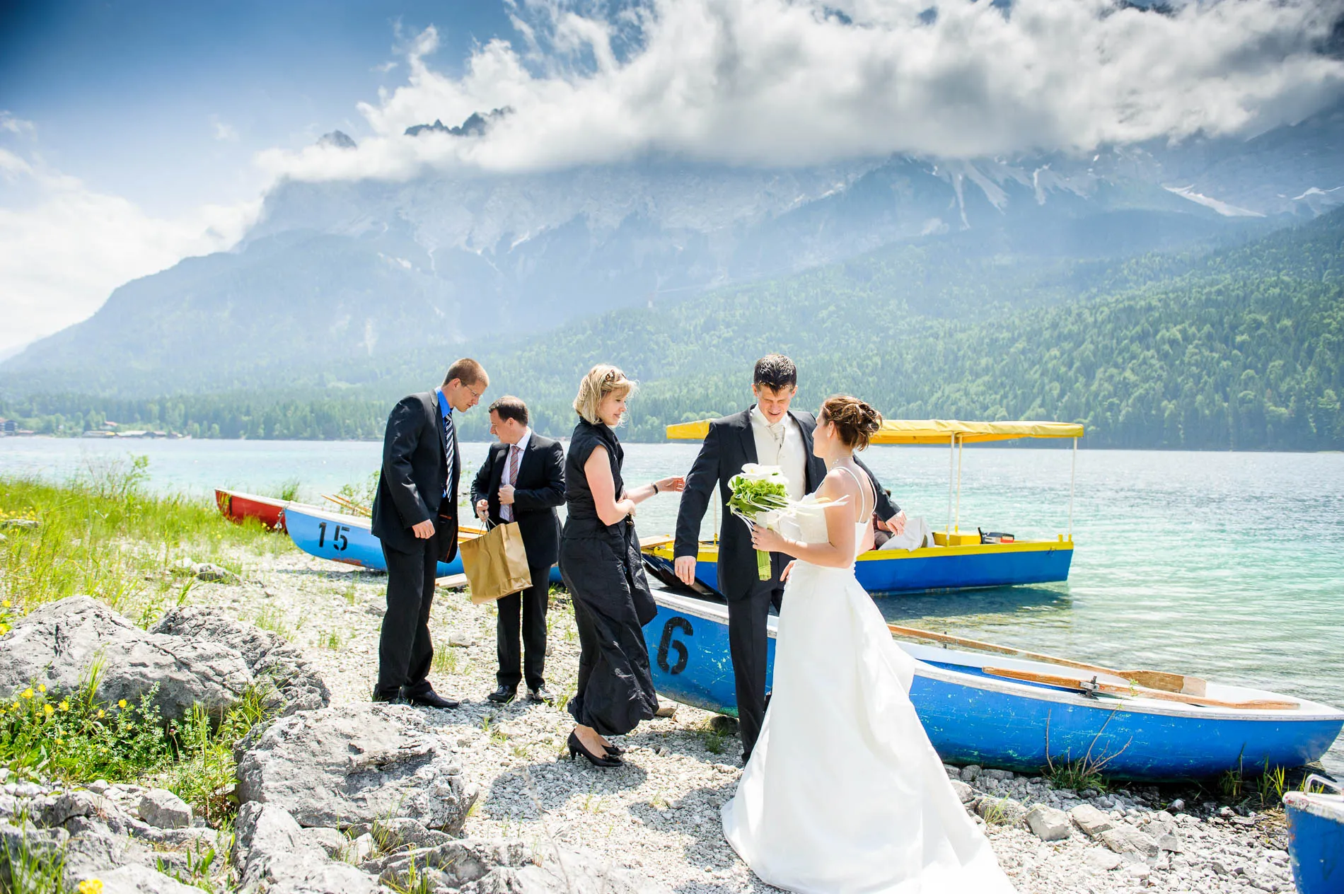 Der Eibsee ist mehr als nur eine Hochzeitslocation. Er ist ein Erlebnis, das Romantik, Natur und eine Prise Abenteuer vereint. Wer hier heiratet, nimmt nicht nur schöne Fotos mit nach Hause, sondern auch Geschichten, die man noch lange erzählen wird – sei es vom Rudern, vom Blumenspalier oder von der Torte, die fast zu perfekt war.
