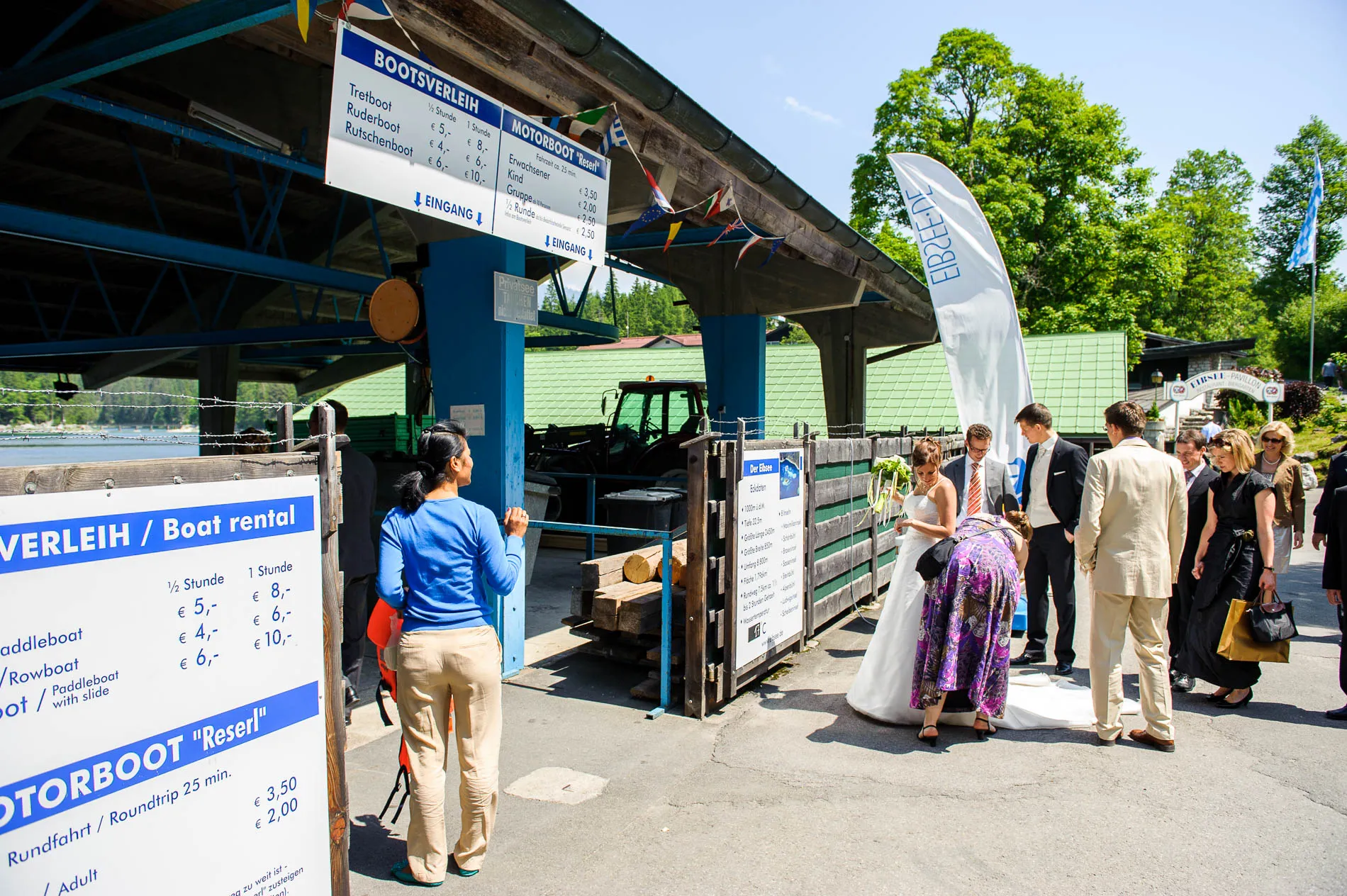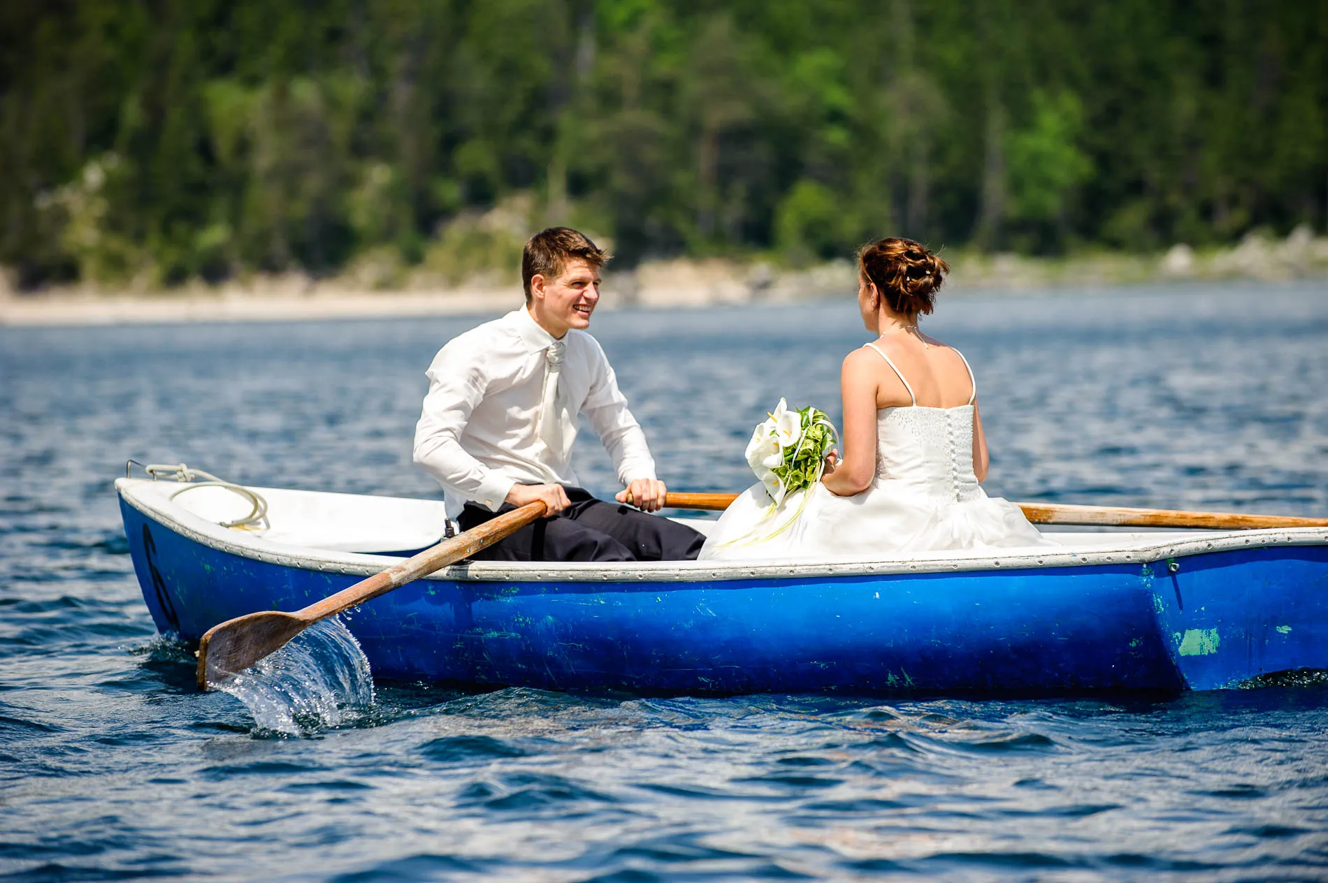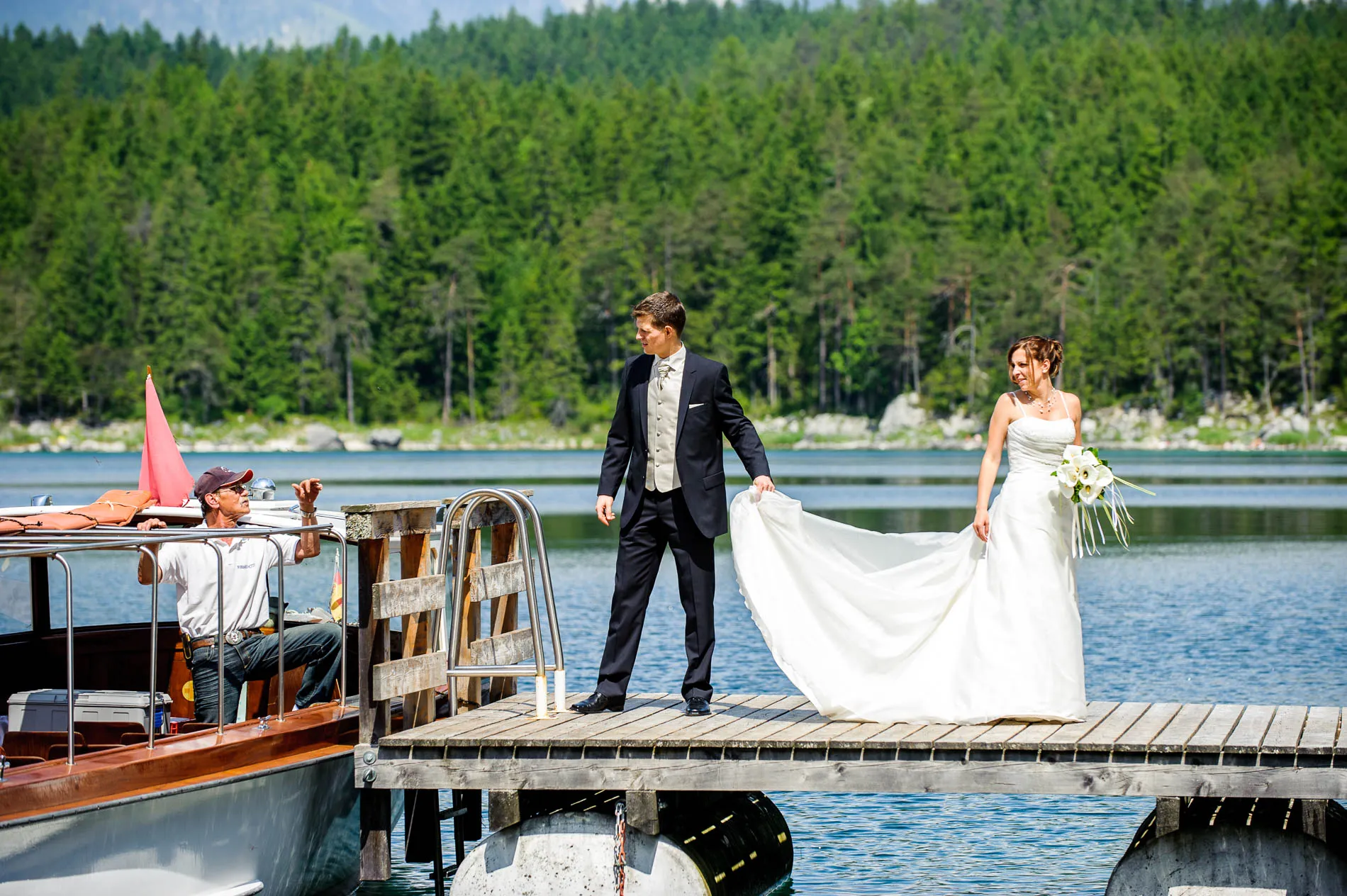 Der Eibsee ist mehr als nur eine Hochzeitslocation. Er ist ein Erlebnis, das Romantik, Natur und eine Prise Abenteuer vereint. Wer hier heiratet, nimmt nicht nur schöne Fotos mit nach Hause, sondern auch Geschichten, die man noch lange erzählen wird – sei es vom Rudern, vom Blumenspalier oder von der Torte, die fast zu perfekt war.