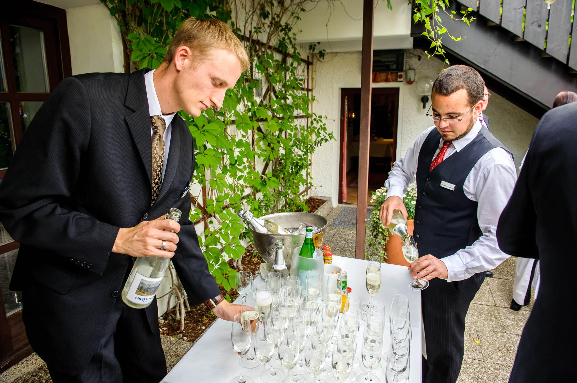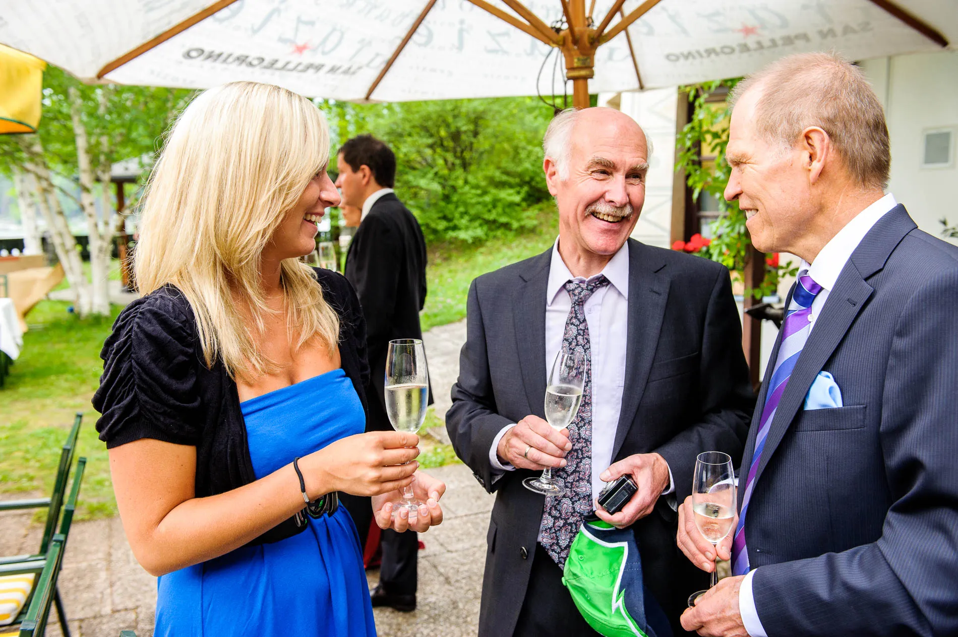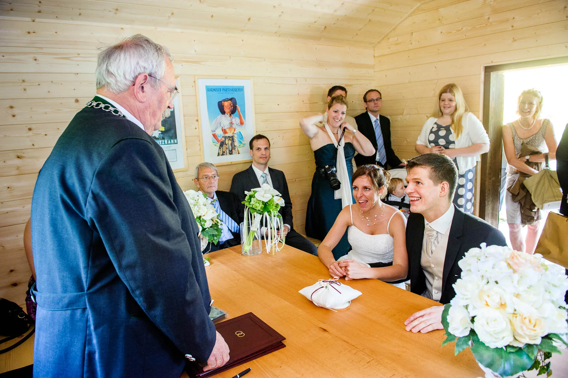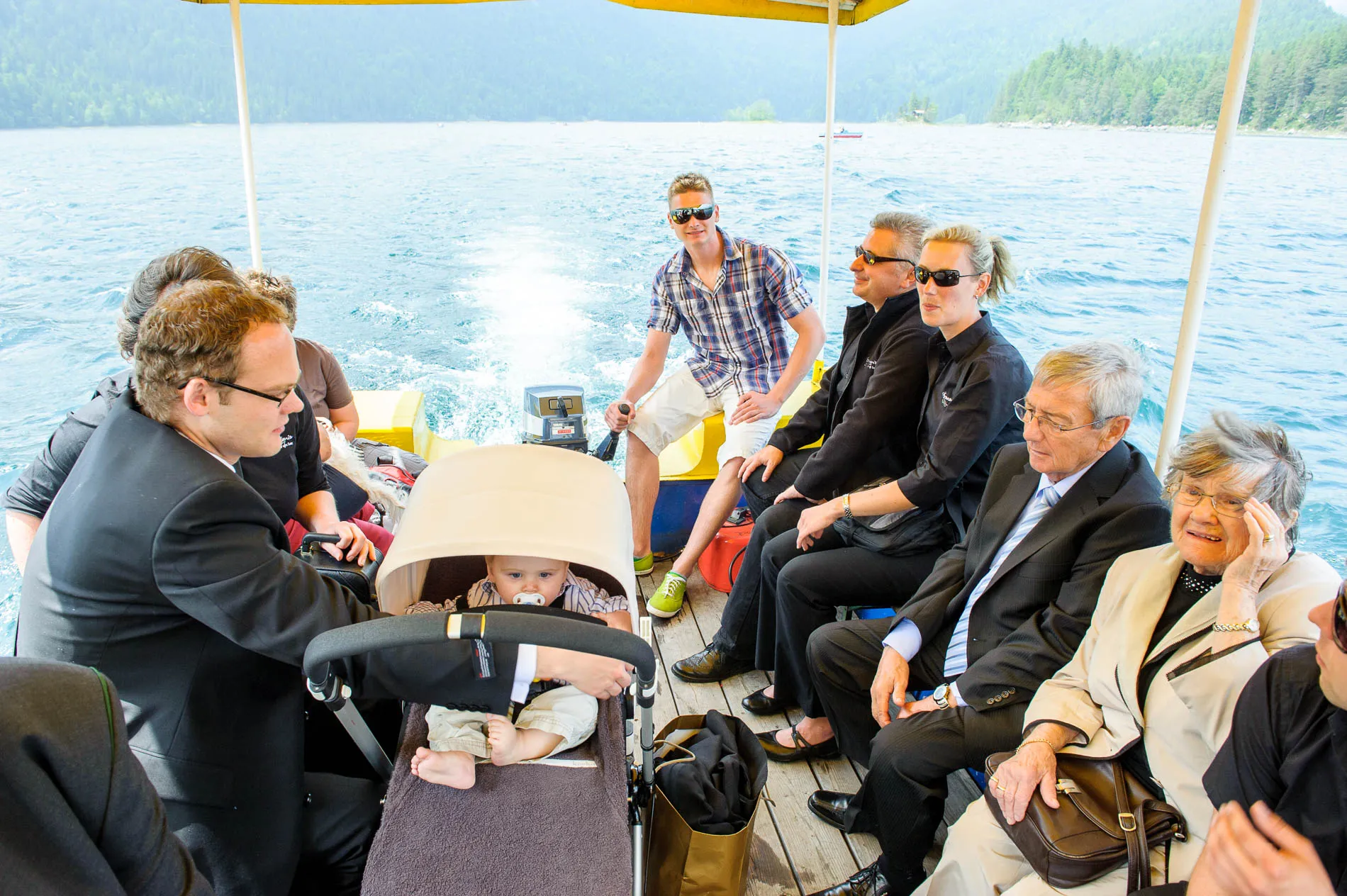 Das Brautpaar und einige Gäste entschieden sich für die romantische Variante: das Ruderboot. Ein charmantes Detail – zumindest für alle, die nicht selbst rudern mussten. Der Standesbeamte hingegen setzte auf Motorisierung. Man könnte sagen: ein Sinnbild für deutsche Bürokratie – effizient, aber weniger poetisch.