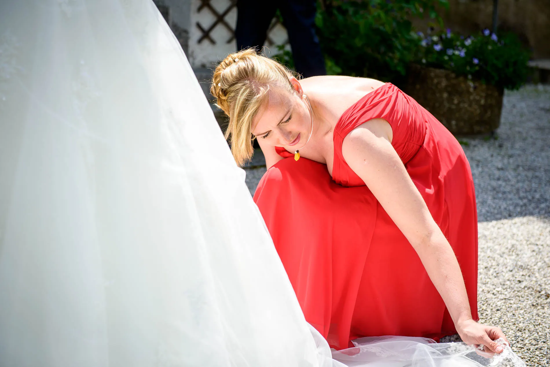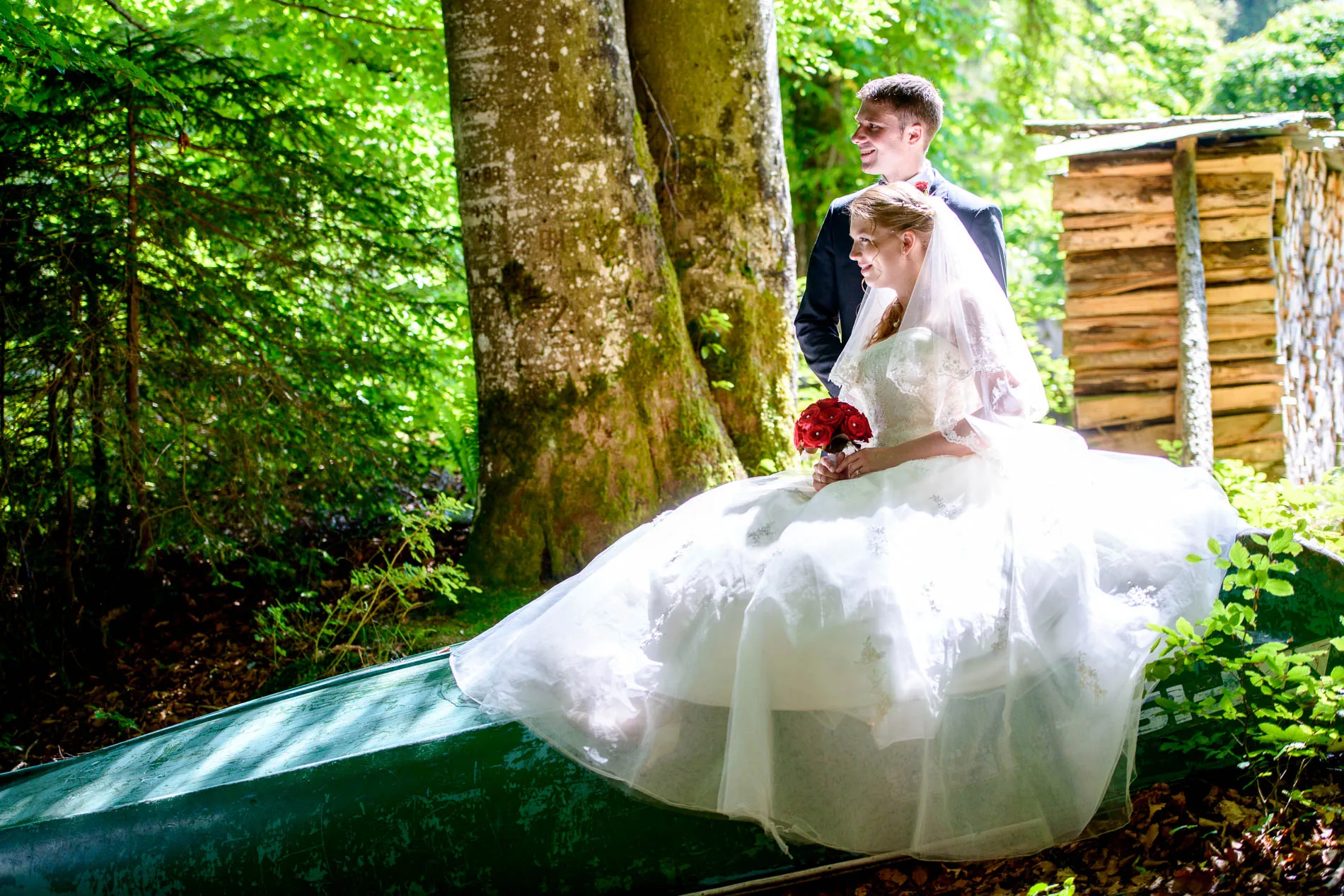 Für das Brautpaarshooting machten wir einen Spaziergang rund um den See. Dabei entstanden natürliche, ungestellte Aufnahmen – mal im Laufen, mal im Gespräch, mal mit einem leisen Lächeln, das nur die beiden verstanden. Und dann kam das Ruderboot ins Spiel. Natürlich durfte die Braut ans Ruder – was nicht nur für Gelächter bei den Gästen sorgte, sondern auch für einige meiner Lieblingsbilder des Tages. Ein Brautkleid im Boot wirkt übrigens erstaunlich souverän, solange niemand versucht, die Ruder mit dem Schleier zu verwechseln.