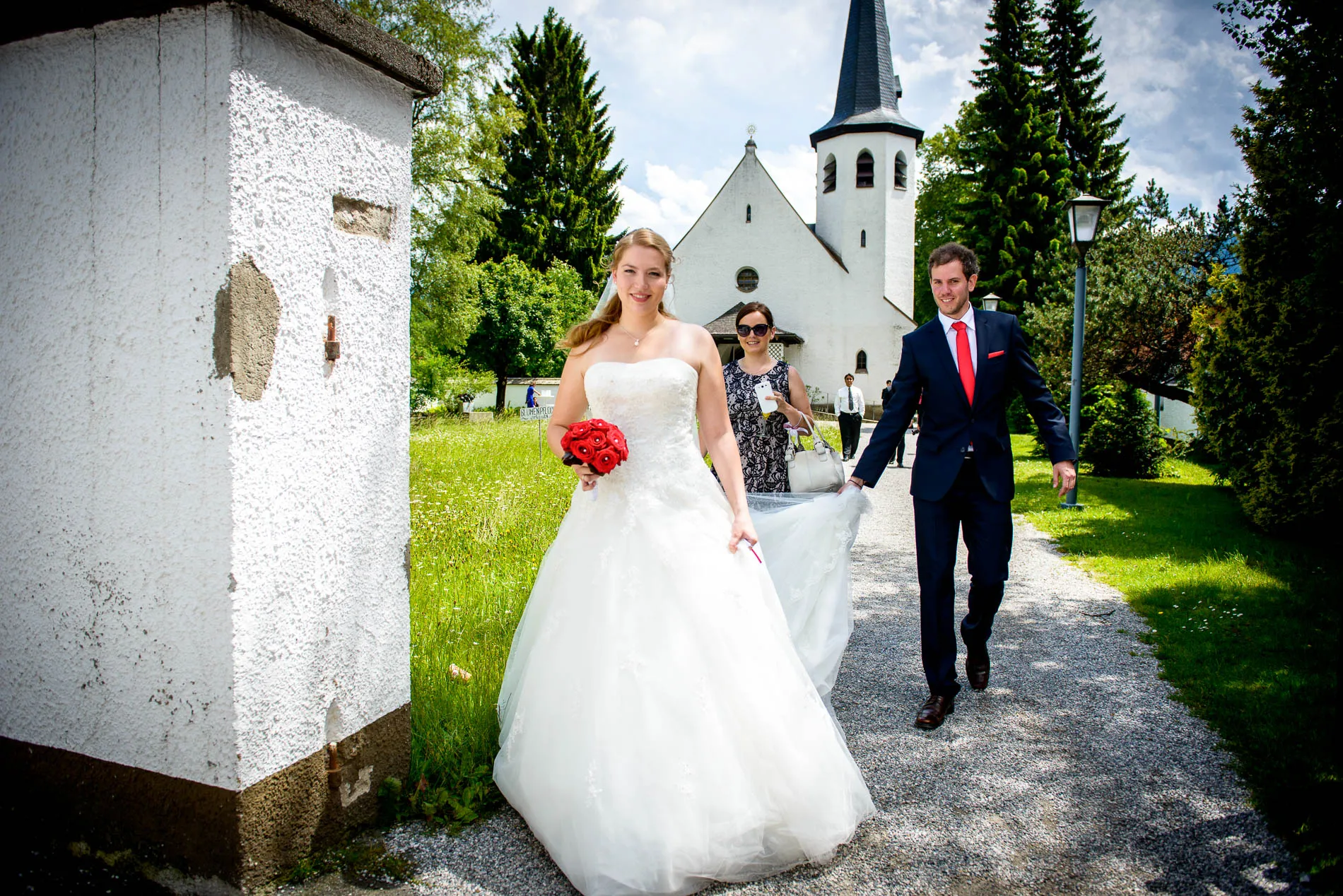 Die evangelische Johanneskirche in Garmisch–Partenkirchen ist nicht nur ein Ort der Stille, sondern auch ein architektonisches Schmuckstück mitten im Grünen. An diesem Tag wurde sie zum Schauplatz einer Hochzeit, die so viel bayerisches Alpenflair verströmte, dass selbst die Zugspitze ein wenig ehrfürchtig wirkte. Während der Bräutigam – wie es die Tradition will – bereits vor Ort wartete, ließ sich die Braut ein wenig bitten. Schließlich soll Spannung ja nicht nur in Krimis vorkommen. Gemeinsam zogen die beiden dann in die Kirche ein, begleitet von erwartungsvollen Blicken und einem Hauch von Nervosität, der sich schnell in Freude verwandelte.