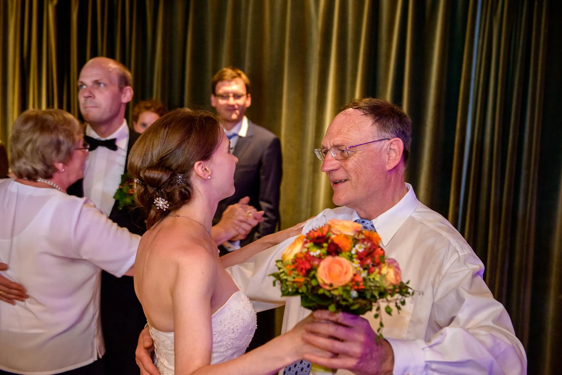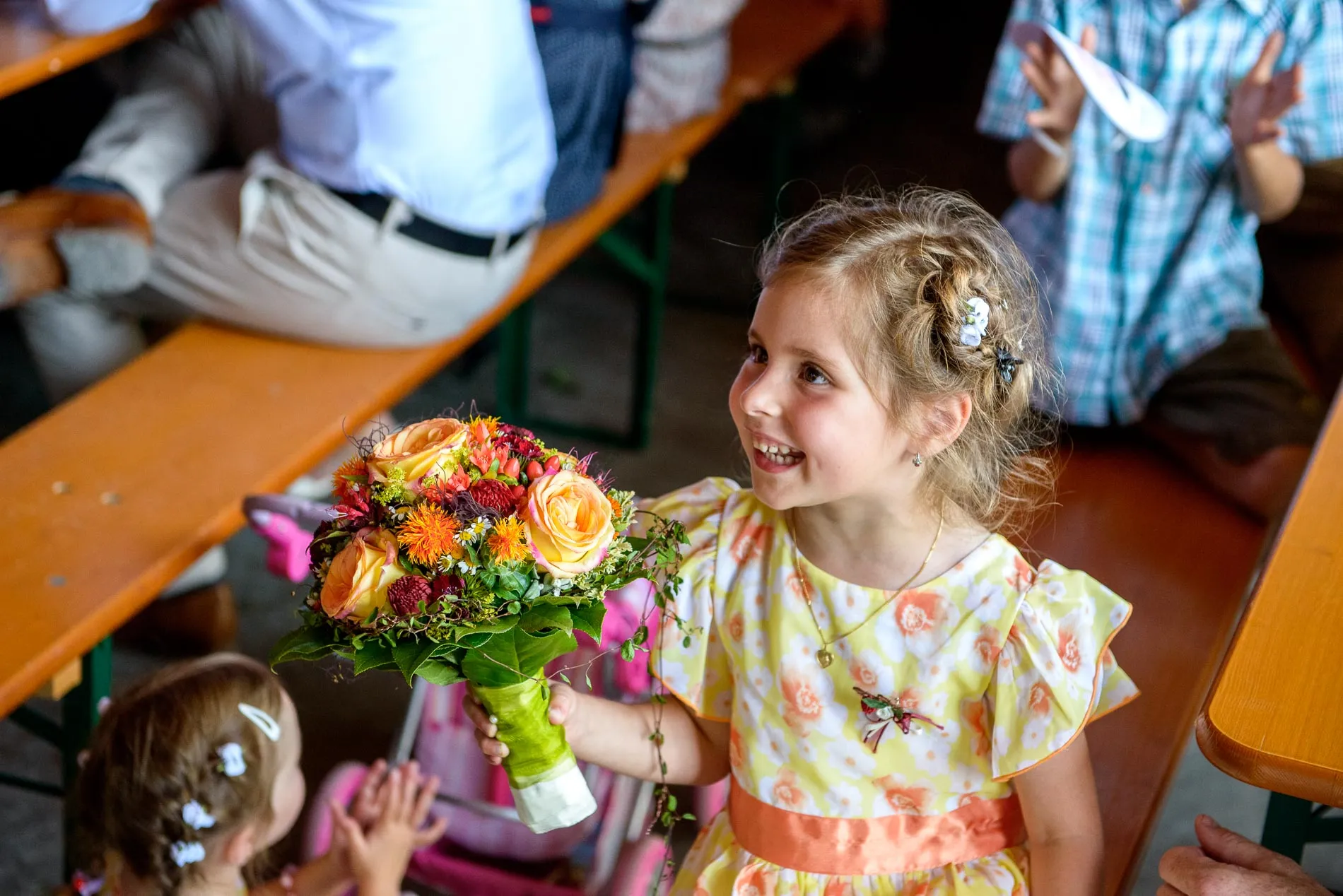 Was bleibt von diesem Tag? Neben den großen Momenten – Ja‑Wort, Brautwalzer, Hochzeitstorte – sind es die kleinen Geschichten: der Eisbeutel als Geschenk, die gelben Rosen, die Eltern vorne am Altar, das Tanzen auf den Bänken. Als Hochzeitsfotograf liebe ich genau diese Mischung aus Tradition, Überraschung und spontanen Szenen. Sie machen jede Reportage einzigartig und lebendig.