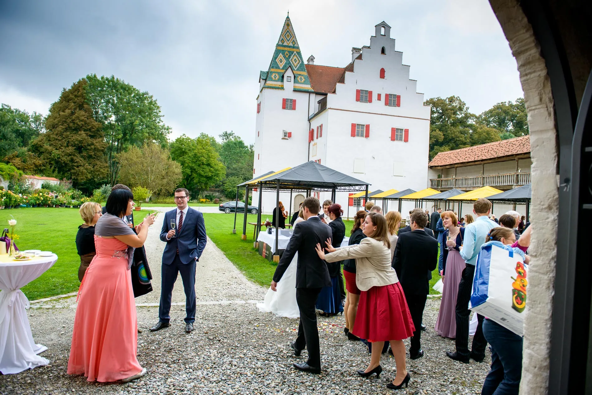 Das Schloss wurde im 16. Jahrhundert erbaut und diente ursprünglich als Jagdschloss der Wittelsbacher. Heute ist es eine der beliebtesten Hochzeitslocations in Oberbayern. Der Innenhof mit seinen Arkaden eignet sich perfekt für Sektempfänge, während der Festsaal mit seiner historischen Atmosphäre den idealen Rahmen für Reden, Tanz und Torte bietet.