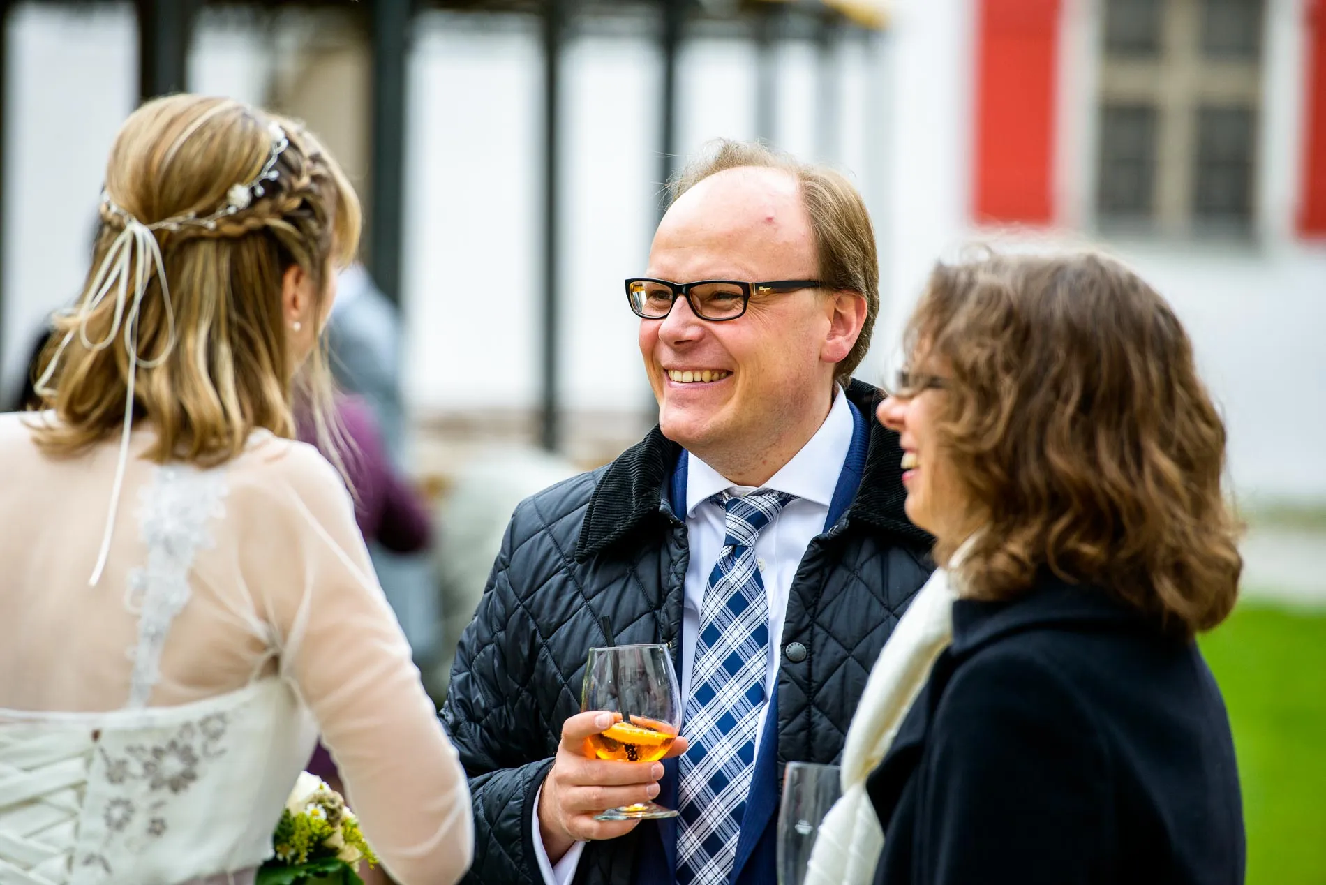 Nach der Trauung ging es zur Feier ins Jagdschloss Grünau. Dieses Renaissance‑Schloss liegt idyllisch mitten im Auwald, etwa sieben Kilometer außerhalb des Stadtzentrums von Neuburg, Richtung Ingolstadt. Wer hier ankommt, fühlt sich fast wie in einem Märchen – nur mit weniger sprechenden Tieren und mehr Champagner.