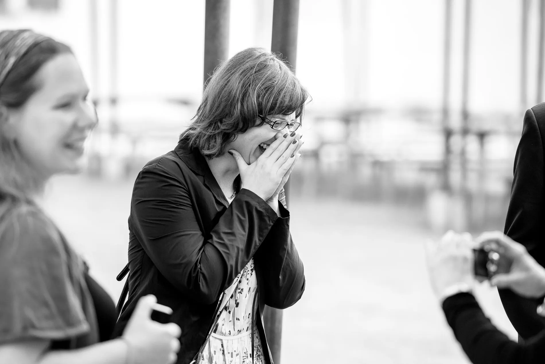 Beim Auszug aus der Kirche hielten sich die Kinder noch zurück – keine Blüten weit und breit. Dafür holten sie am Jagdschloss Grünau alles nach. Mit Begeisterung streuten sie Rosenblätter, als gäbe es einen Wettbewerb, wer die größte Wolke produziert. Das Brautpaar nahm die Glückwünsche im Innenhof entgegen, während die Gäste sich am Sekt erfreuten.
