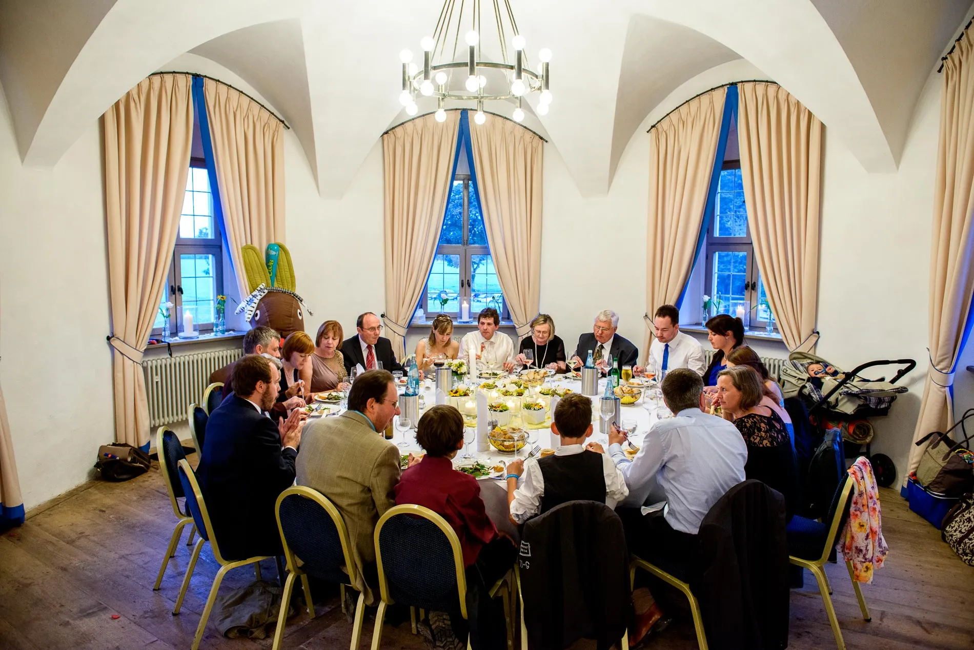 Nach dem Brautwalzer ging es weiter mit Tanz, weiteren Reden und natürlich dem Abendessen. Die Stimmung war ausgelassen, die Gäste bestens versorgt und das Brautpaar strahlte bis in die späten Stunden.
