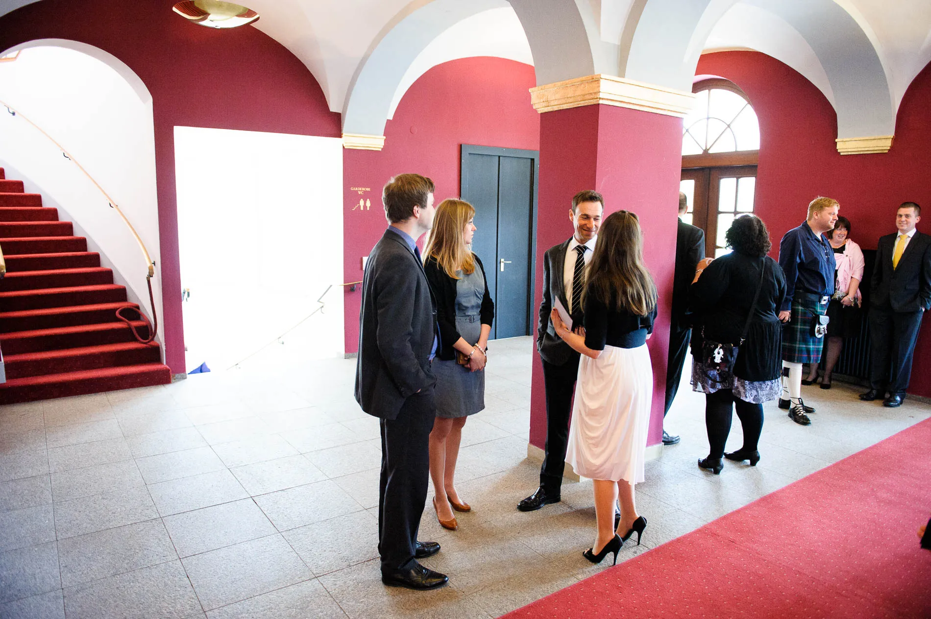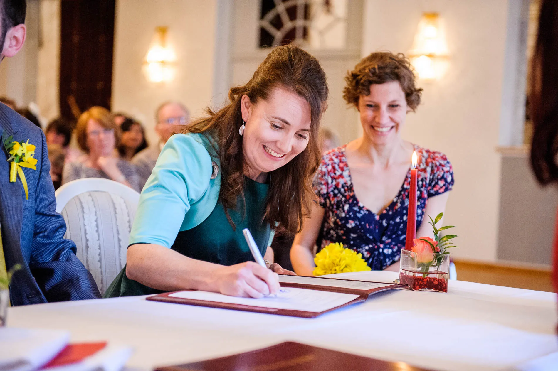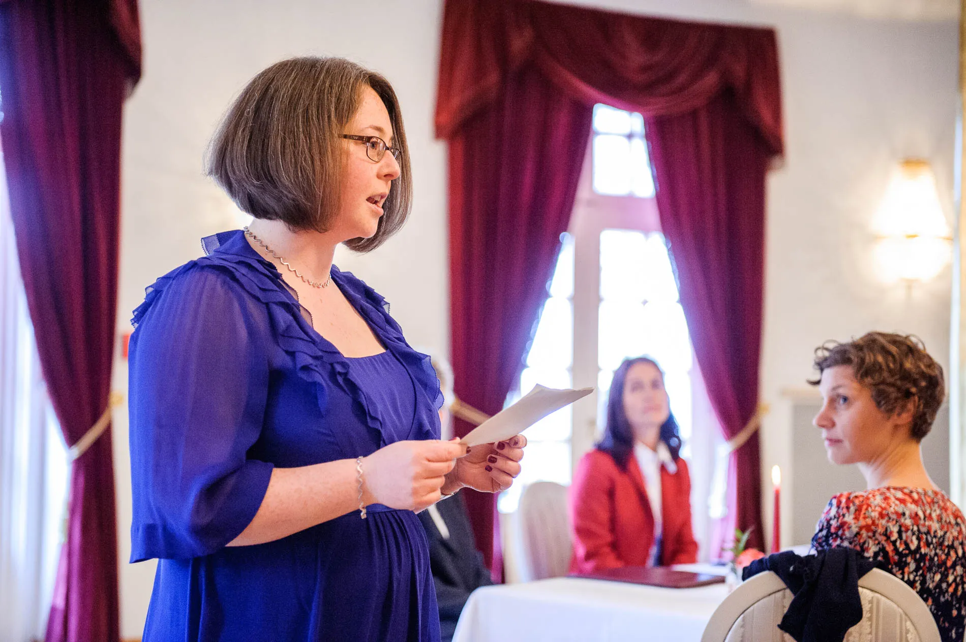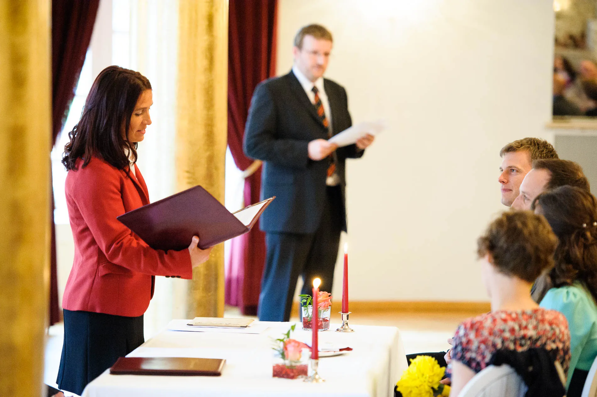 Normalerweise finden freie oder standesamtliche Trauungen im charmanten Salettl des Hauses statt. Da bei dieser Hochzeit jedoch die gesamte Gesellschaft anwesend war, wurde kurzerhand der große Festsaal genutzt. Eine Entscheidung, die sich als goldrichtig erwies: hohe Decken, viel Platz und eine Atmosphäre, die dem Anlass mehr als gerecht wurde.