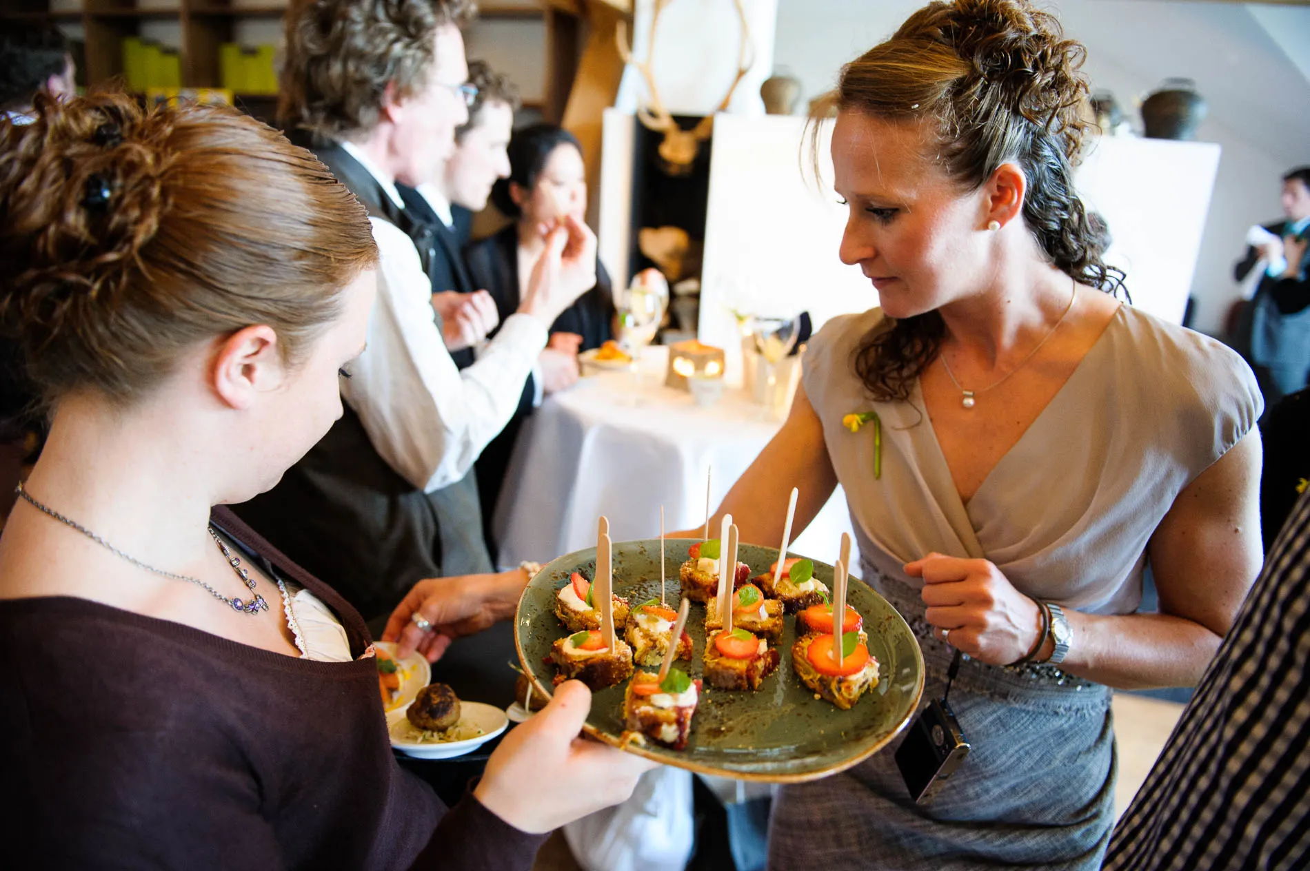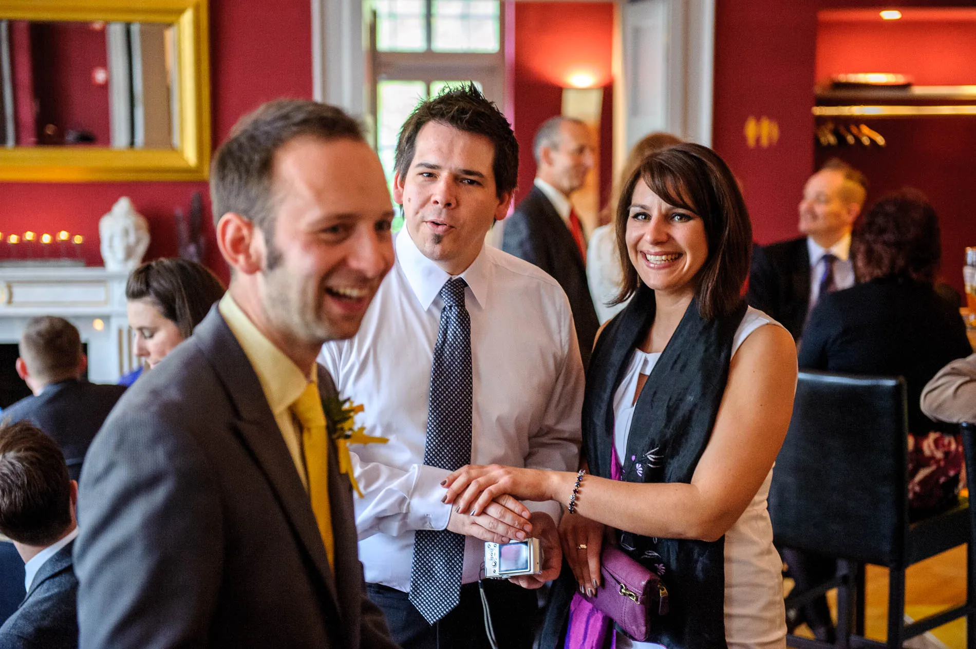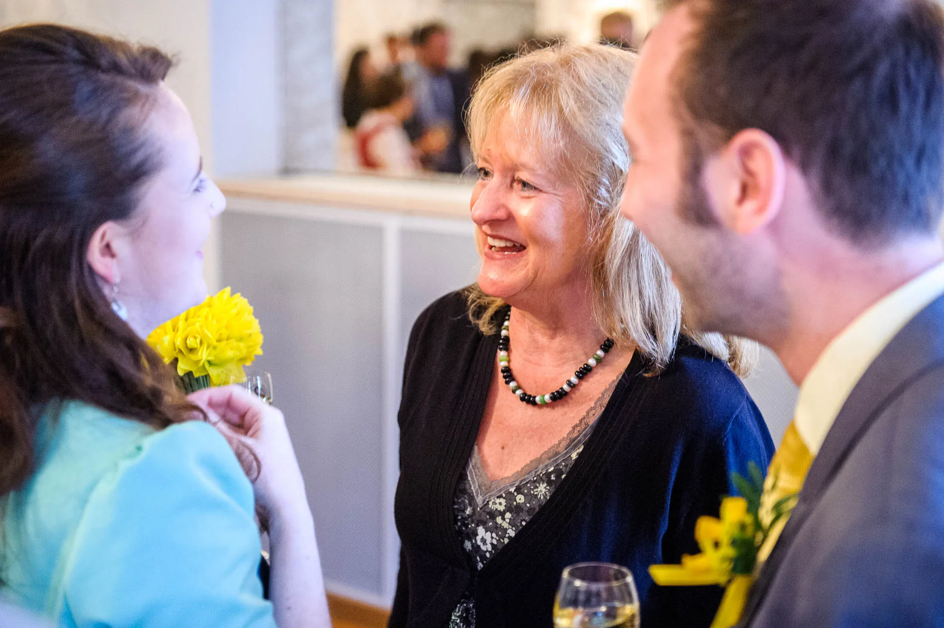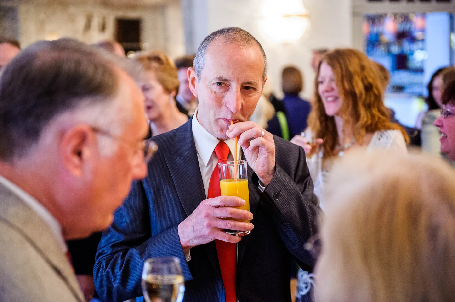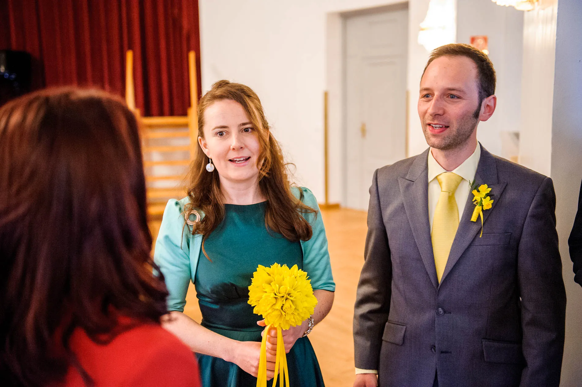 Die Ankunft des Brautpaars verzögerte sich ein wenig. Die Gäste überbrückten die Zeit mit Getränken. Die Kinder hielten sich an Apfelschorle, die Erwachsenen an Hugo. Man könnte sagen: gleiche Farbe, andere Wirkung.