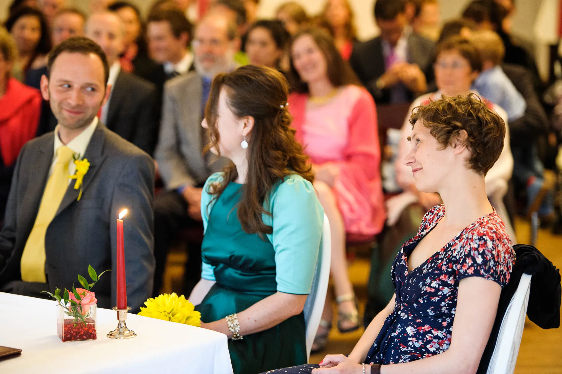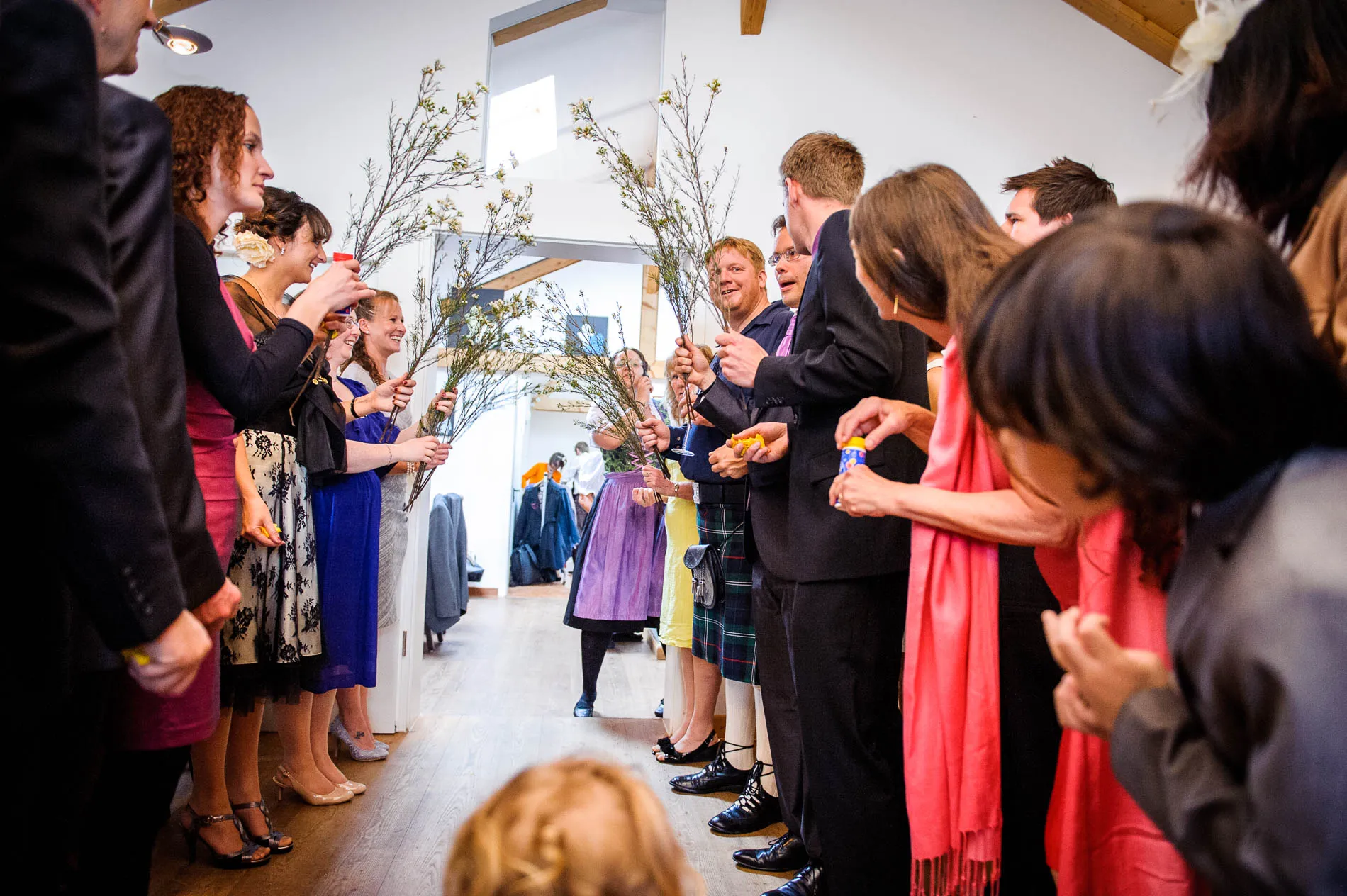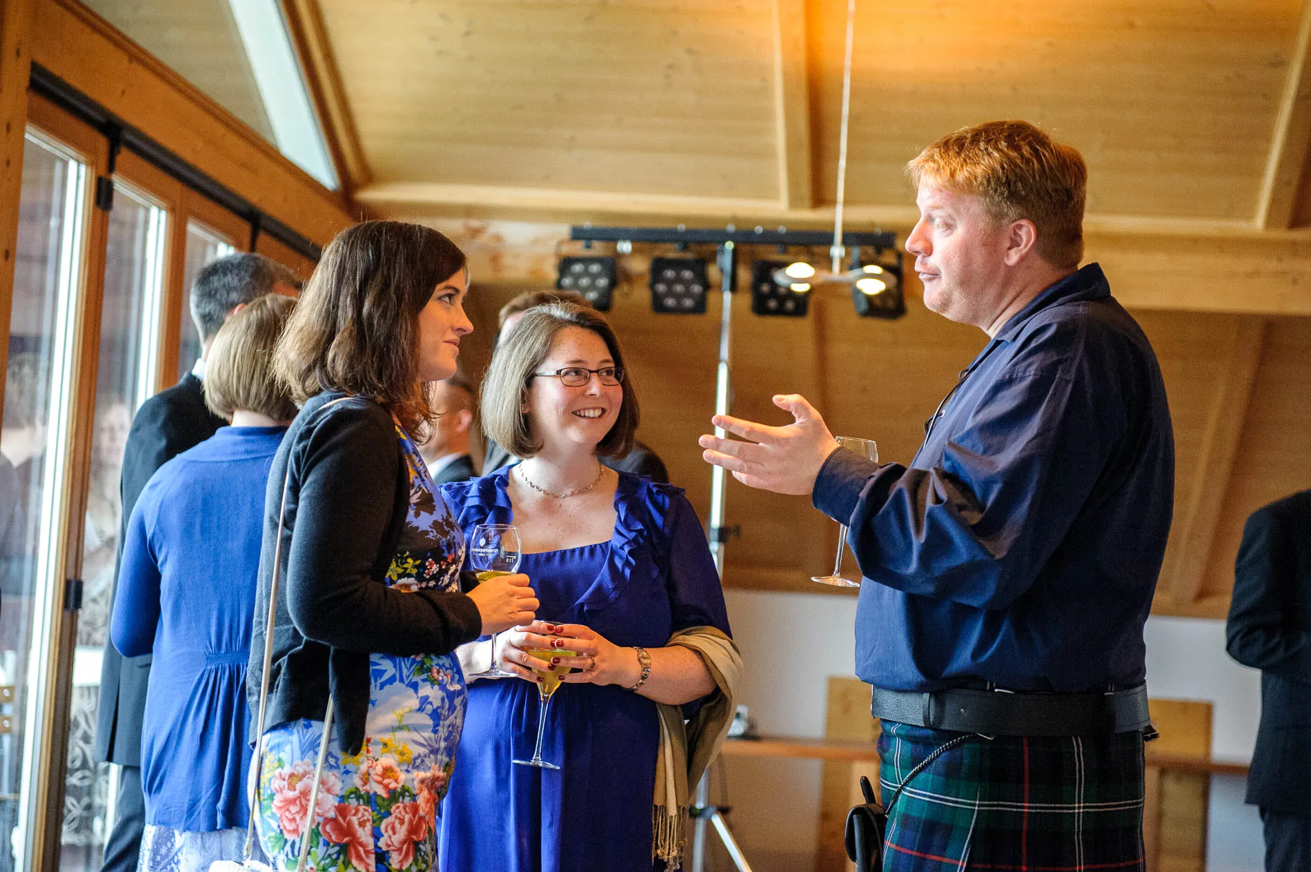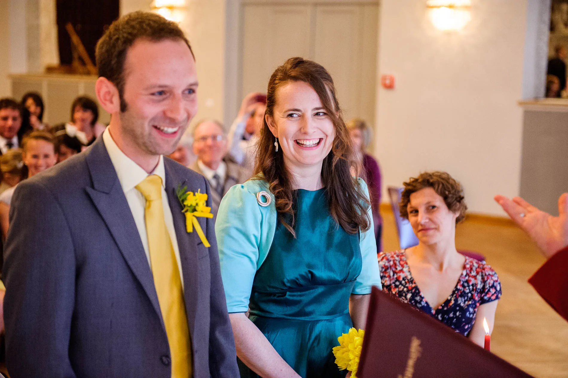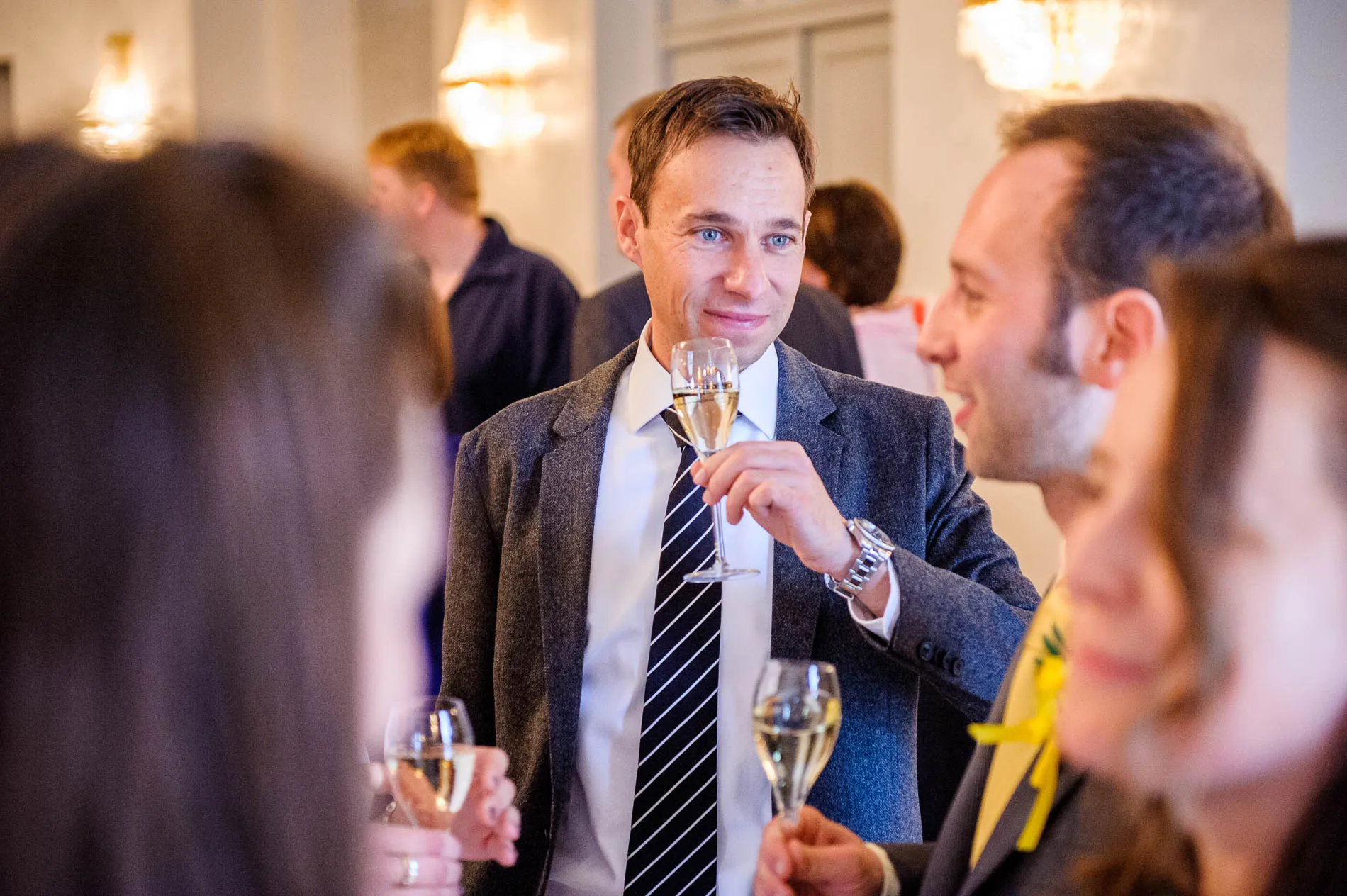 Die Ankunft des Brautpaars verzögerte sich ein wenig. Die Gäste überbrückten die Zeit mit Getränken. Die Kinder hielten sich an Apfelschorle, die Erwachsenen an Hugo. Man könnte sagen: gleiche Farbe, andere Wirkung.