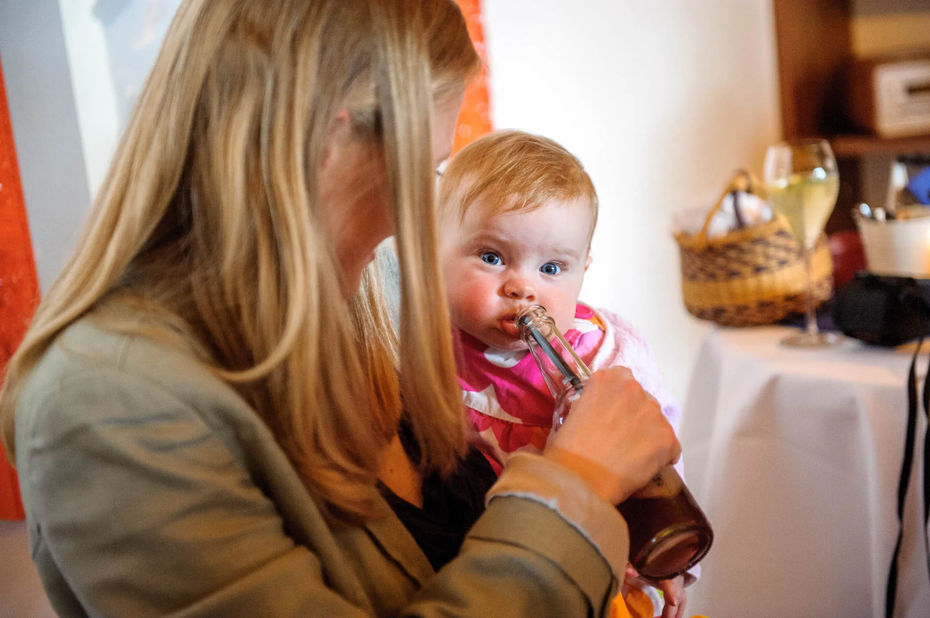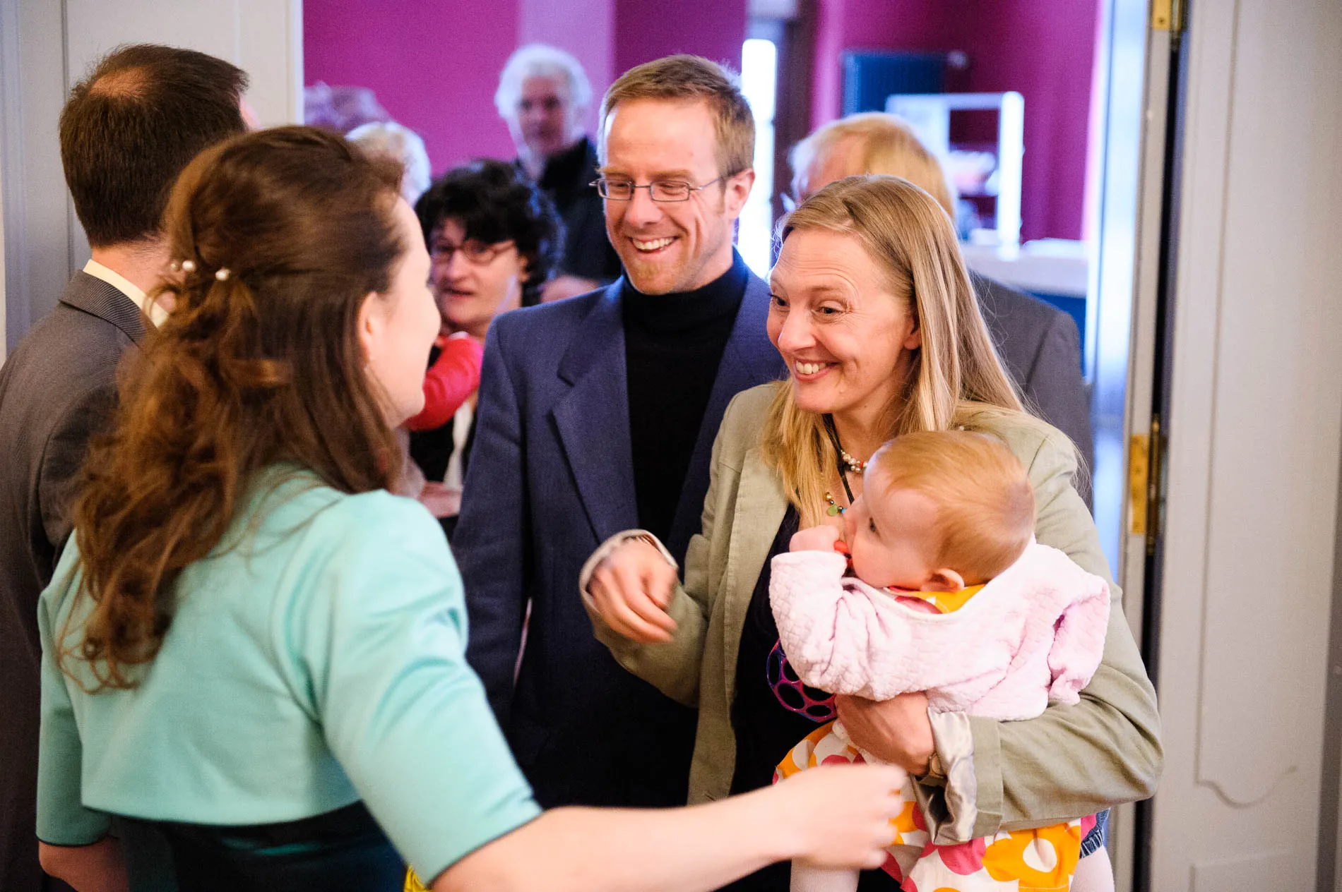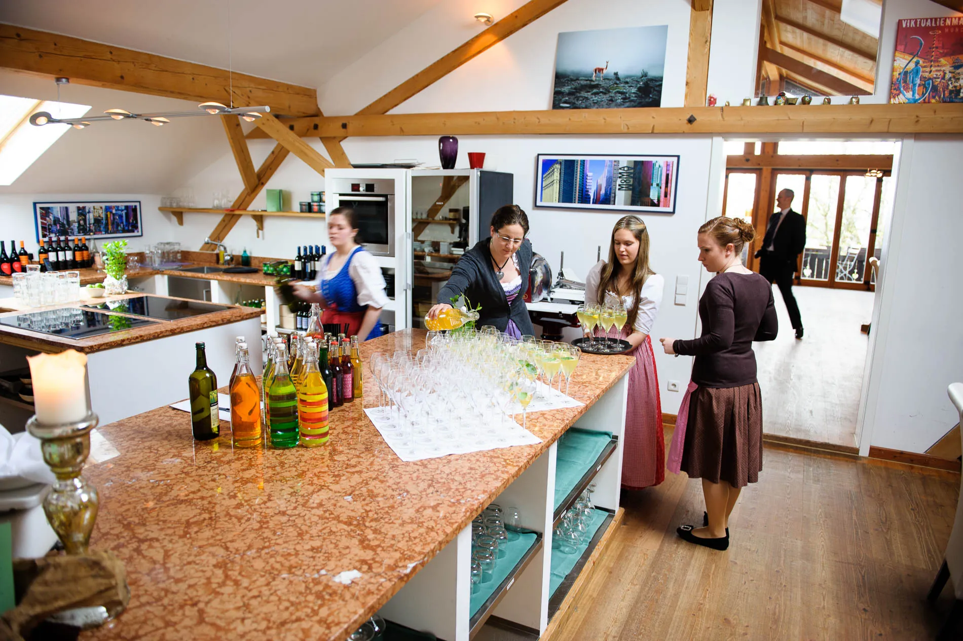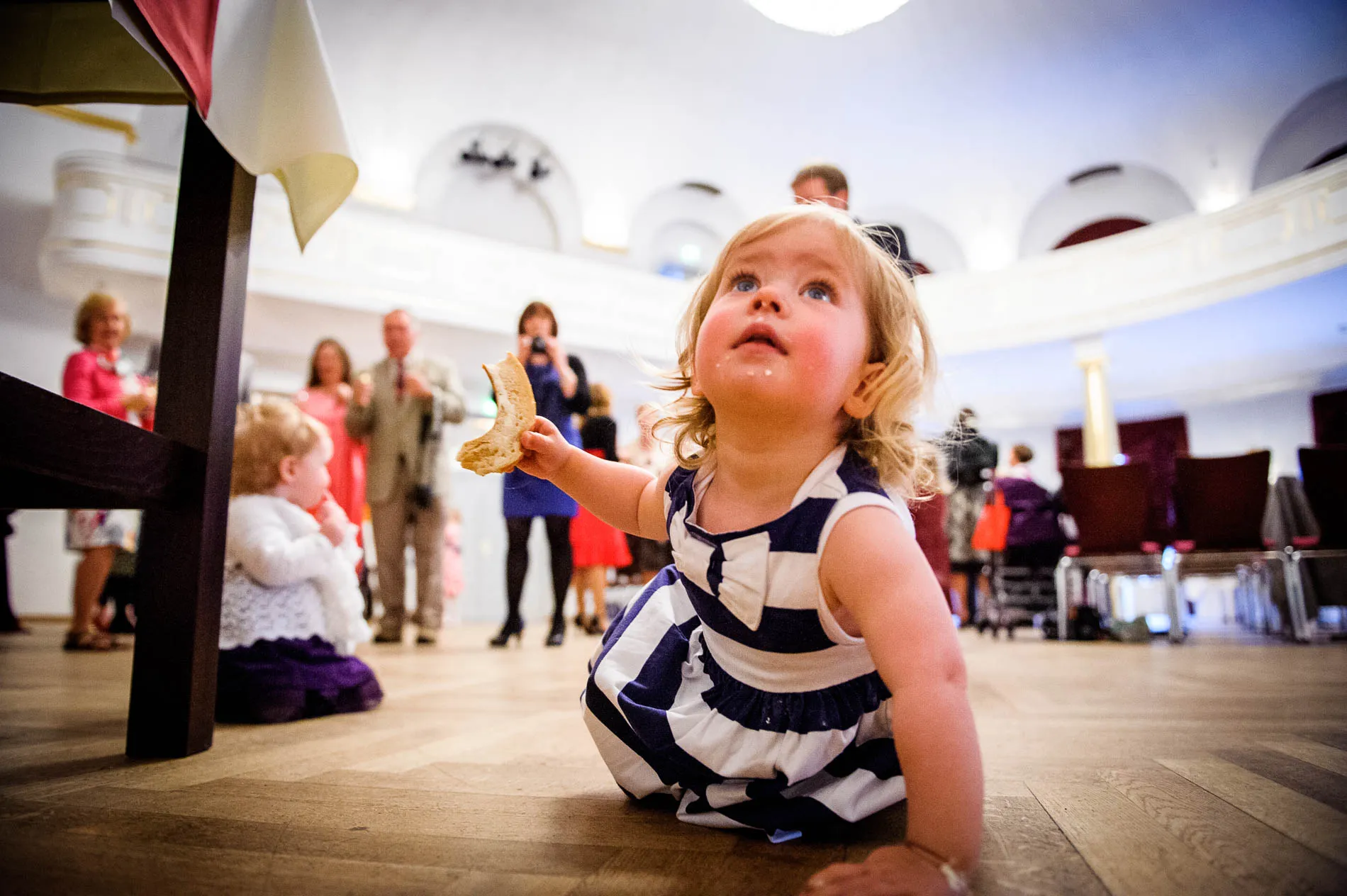 Nach der Trauung ging es für die Gäste an die Kaminbar. Dort warteten nicht nur Sektgläser, sondern auch Brezn in Herzform. Ein Detail, das Kinder besonders lieben – vor allem, wenn die halbe Breze im Gesicht klebt. Für mich als Fotograf sind das die kleinen Szenen, die später für Schmunzeln sorgen.