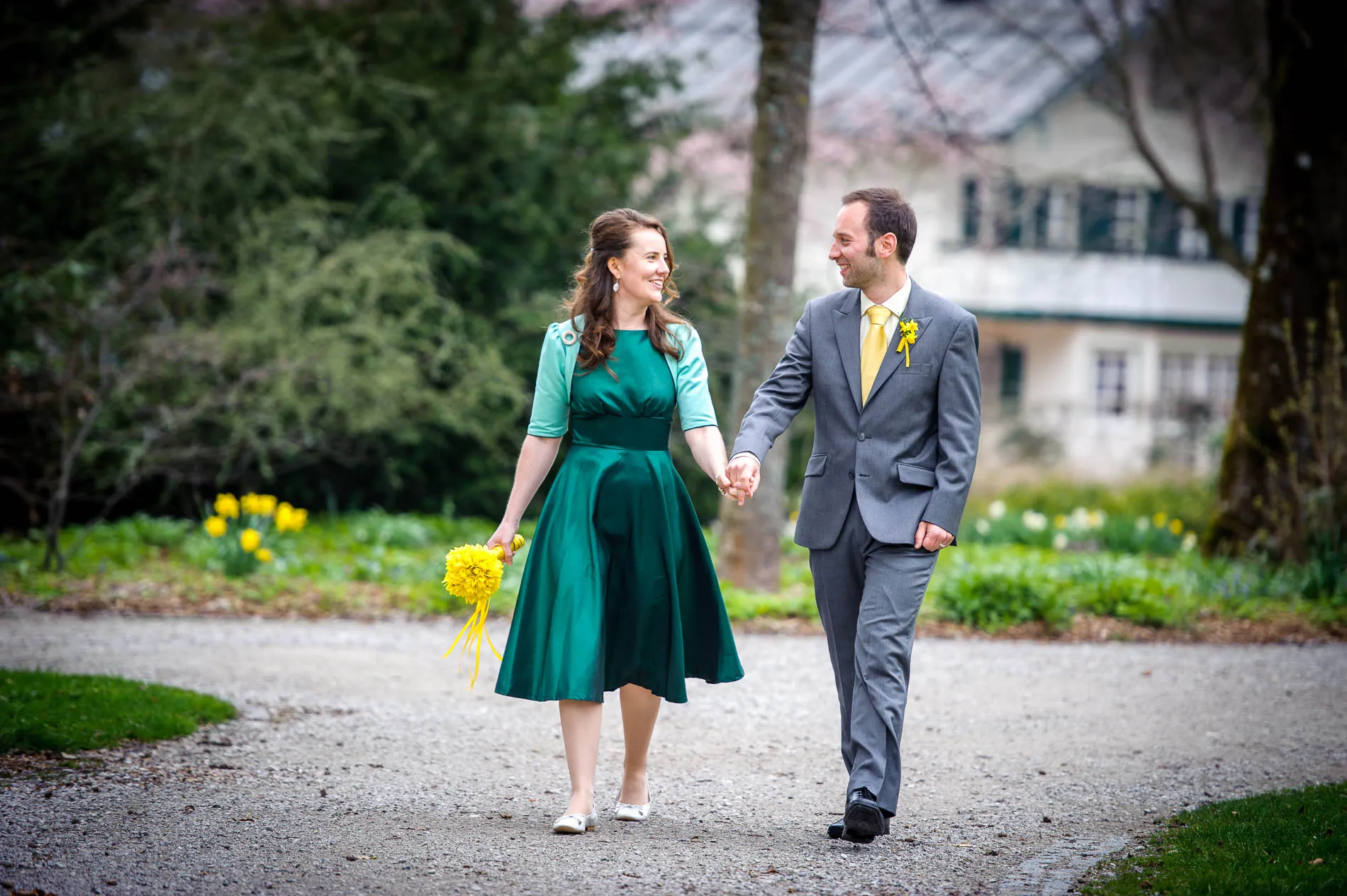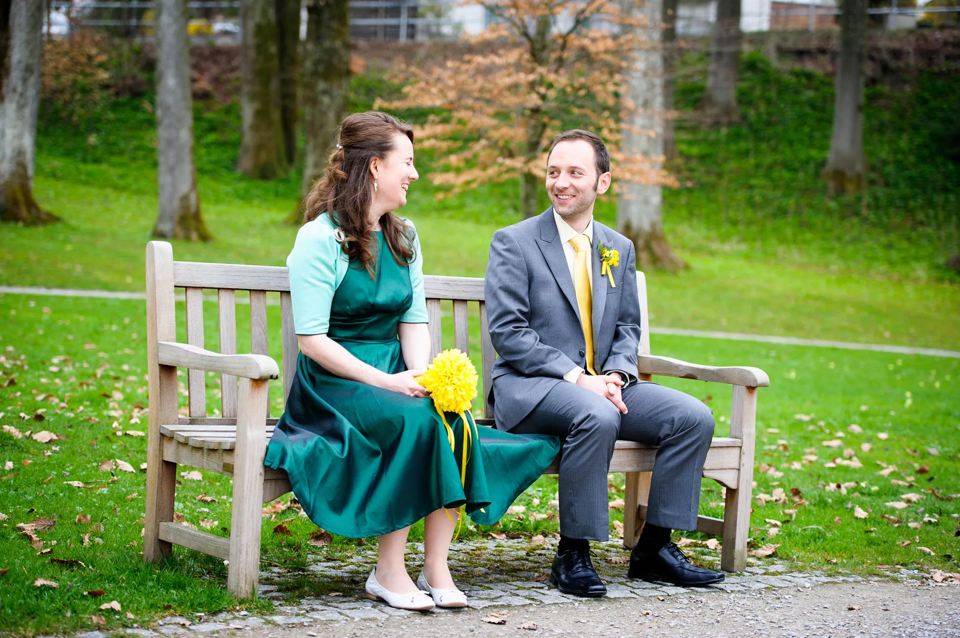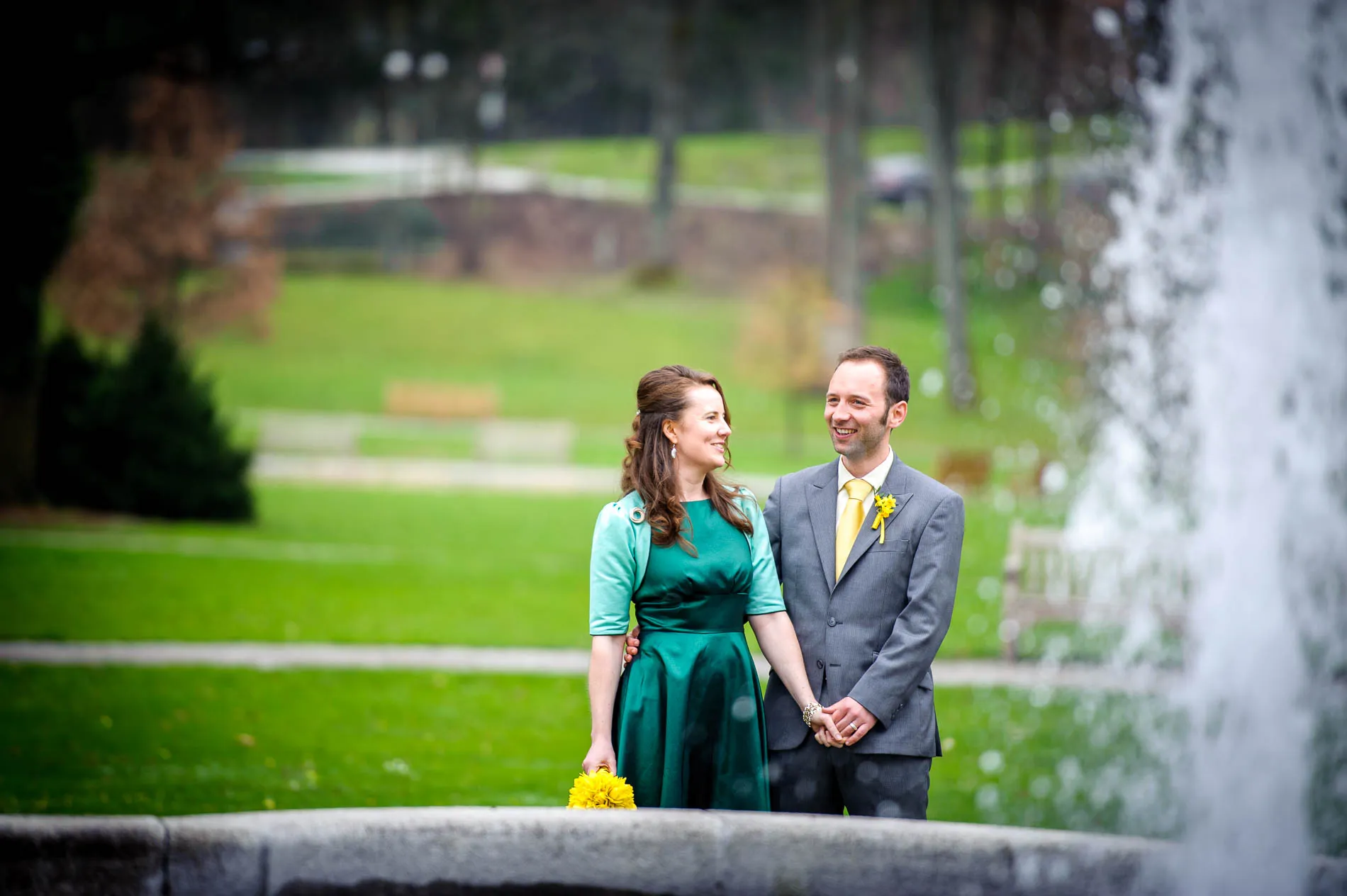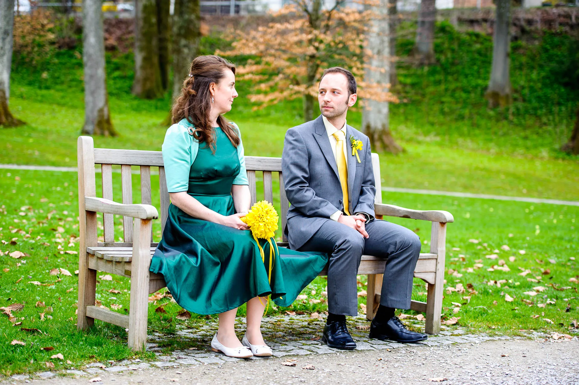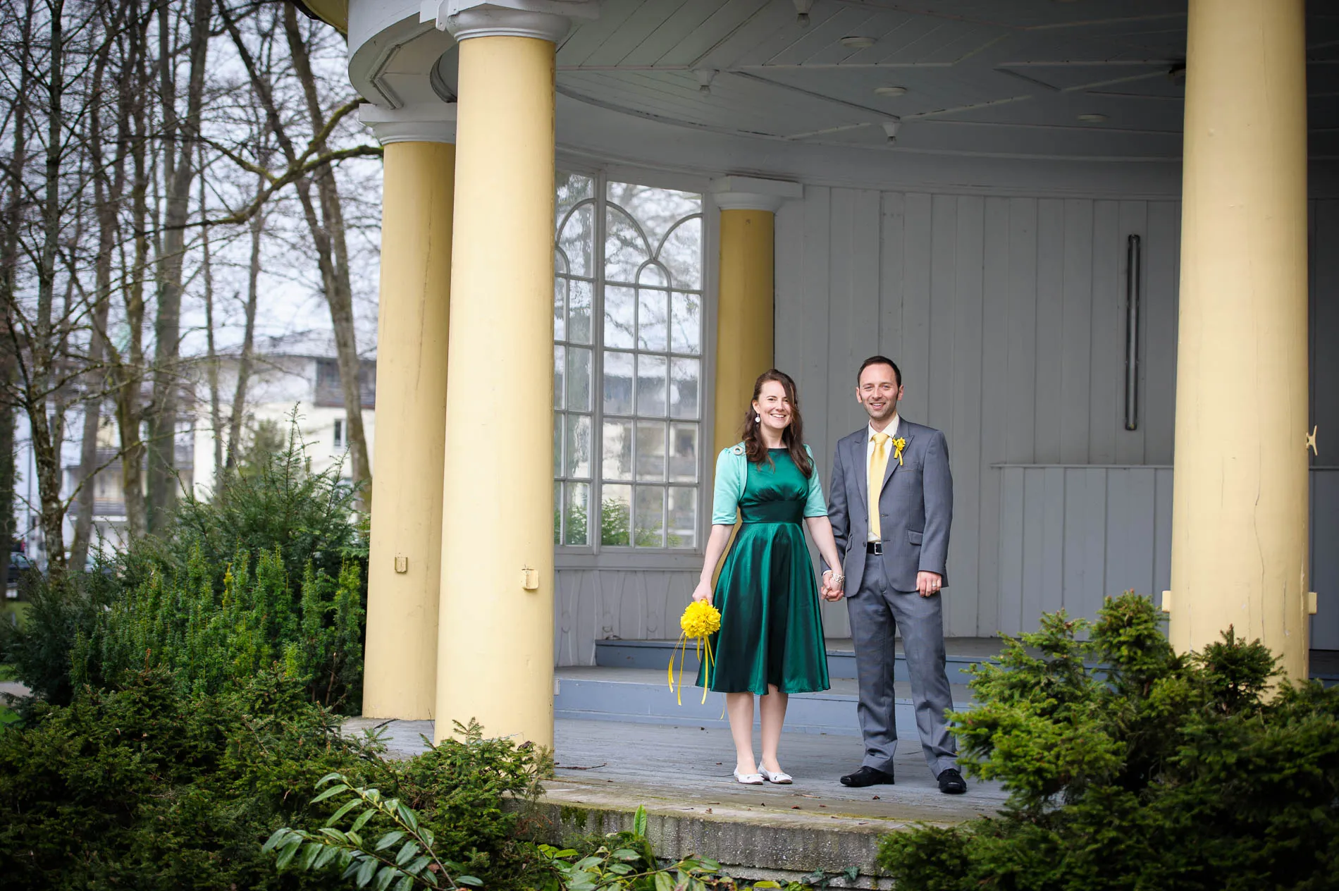 Während die Gäste also Häppchen und Brezn genossen, spazierte ich mit dem Brautpaar durch den Kurpark. Zwischen alten Bäumen und gepflegten Wegen entstanden Aufnahmen, die zeigen: Manchmal braucht es keine Sonne, um zu strahlen.