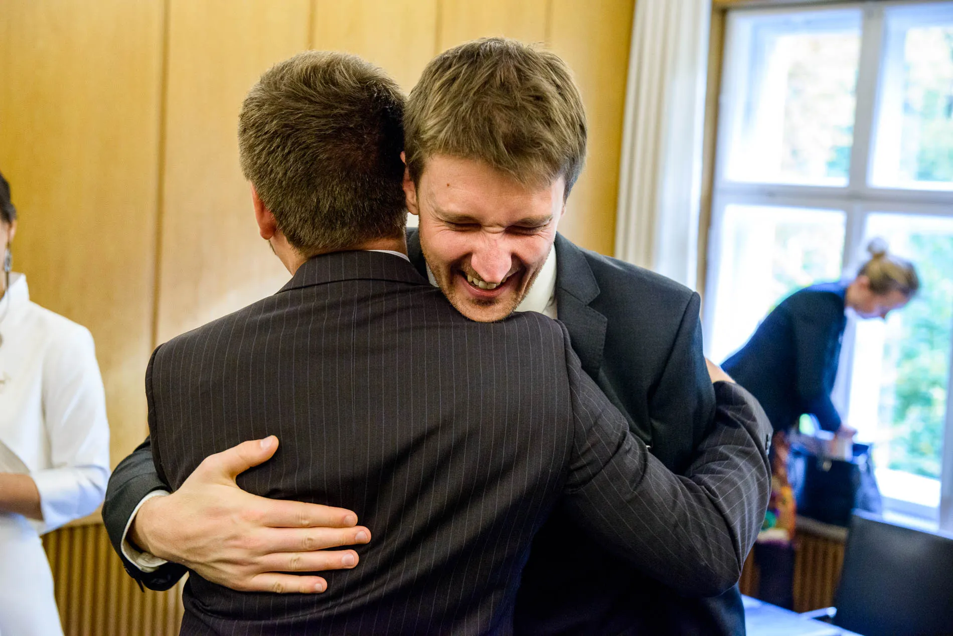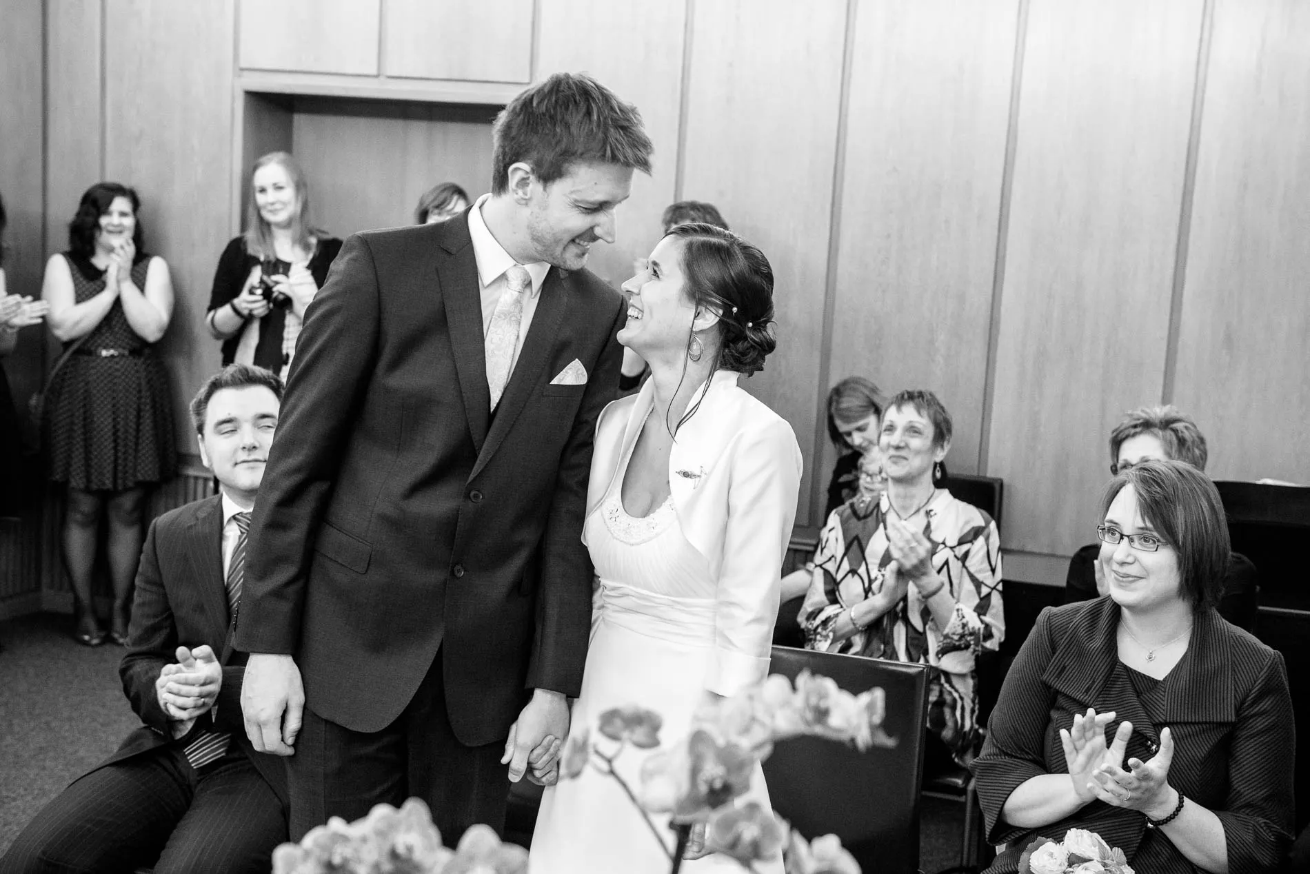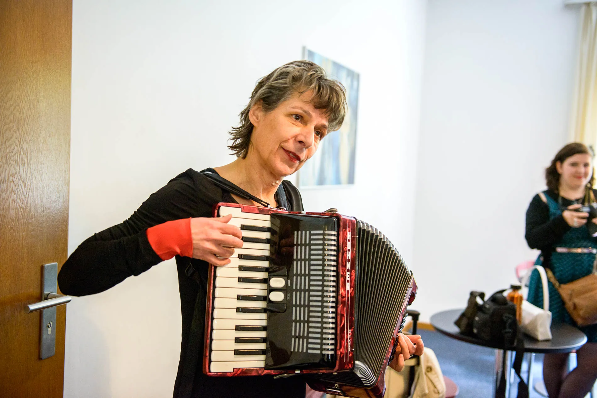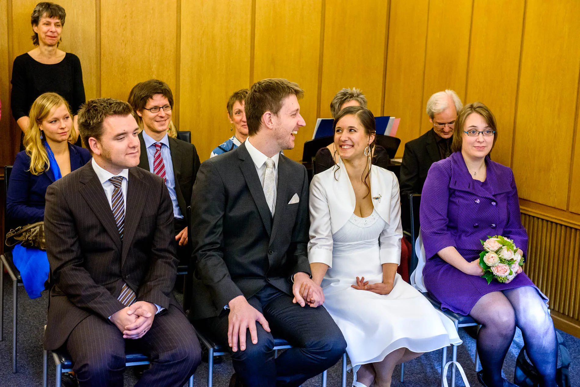 Nach dem Ja-Wort gab es einen kurzen Umtrunk im Standesamt. Ein weiblicher Gast packte das Akkordeon aus und sorgte für eine musikalische Überraschung. Solche Momente sind für mich als Fotograf Gold wert: spontan, lebendig und voller Emotionen. Das Brautpaar strahlte ohnehin den ganzen Tag – es war schlicht unmöglich, ein schlechtes Foto zu machen.