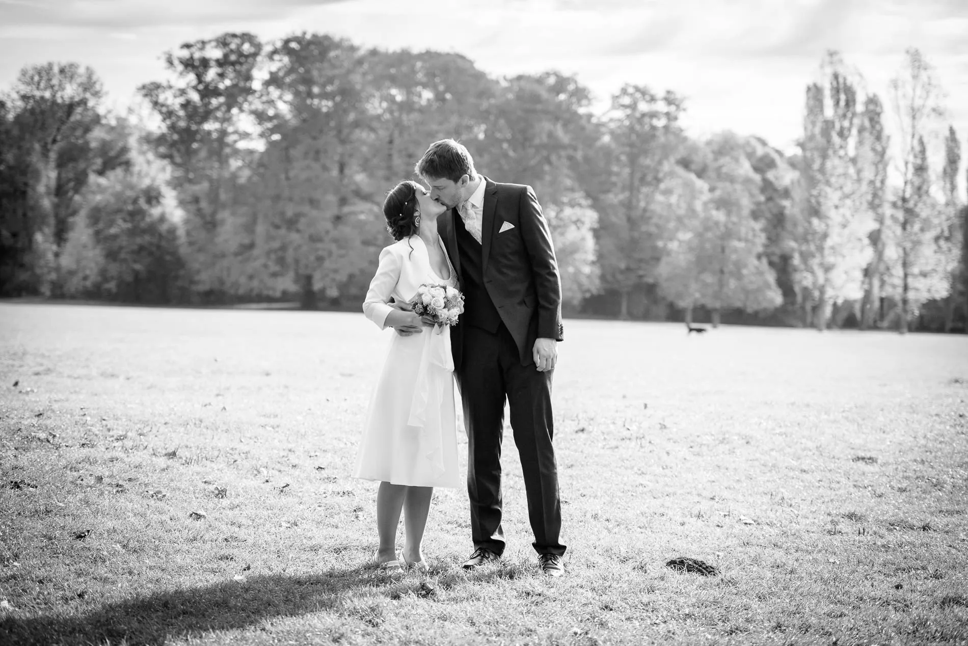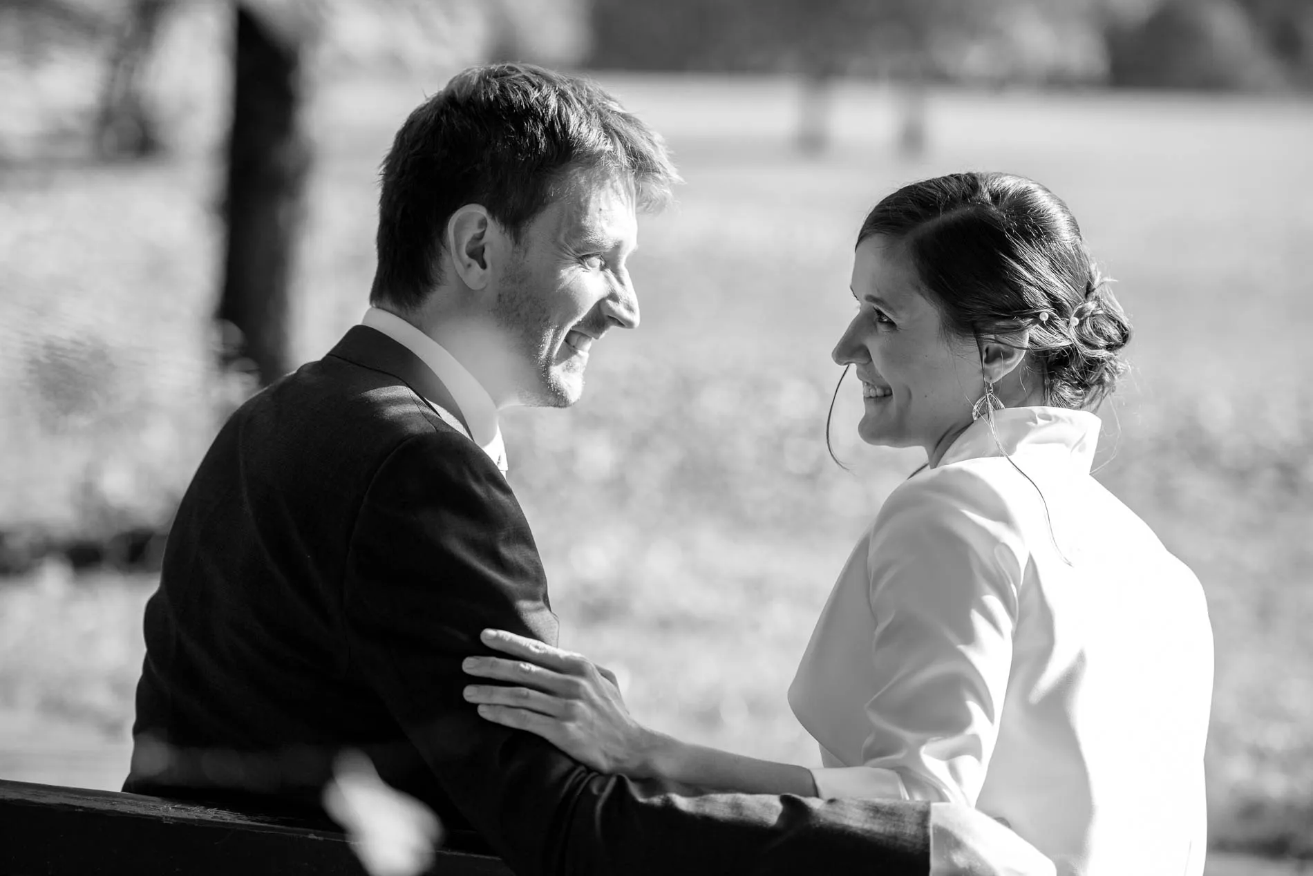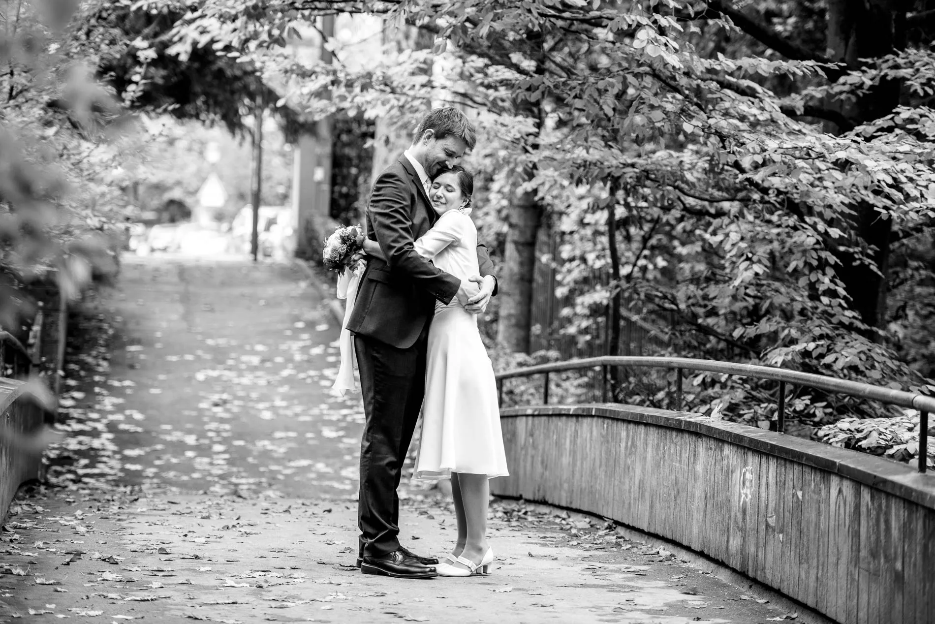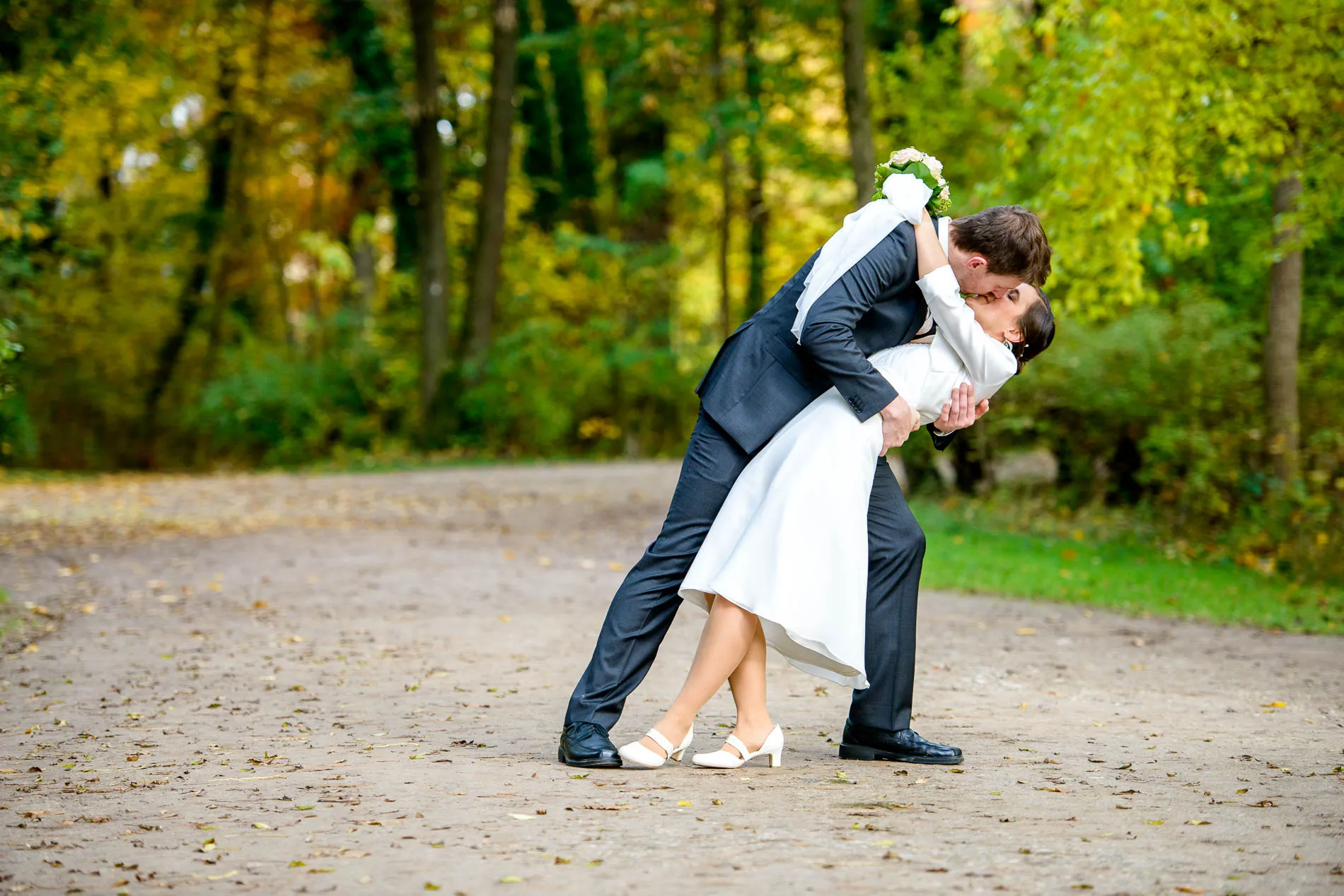 Das Standesamt selbst ist eine elegante Villa im Jugendstil, gelegen in der Mandlstraße mitten in Schwabing. Hohe Fenster, viel Licht und eine gewisse Grandezza verleihen der Zeremonie einen würdevollen Rahmen. Und das Beste: Nach der Trauung muss man nur wenige Schritte gehen, über die kleine Brücke am Schwabinger Bach, und schon öffnet sich der Englische Garten – eine Traumkulisse für Hochzeitsfotos. Besonders im Herbst, wenn das Laub golden leuchtet, entstehen dort Bilder, die fast schon von der Natur selbst inszeniert wirken.