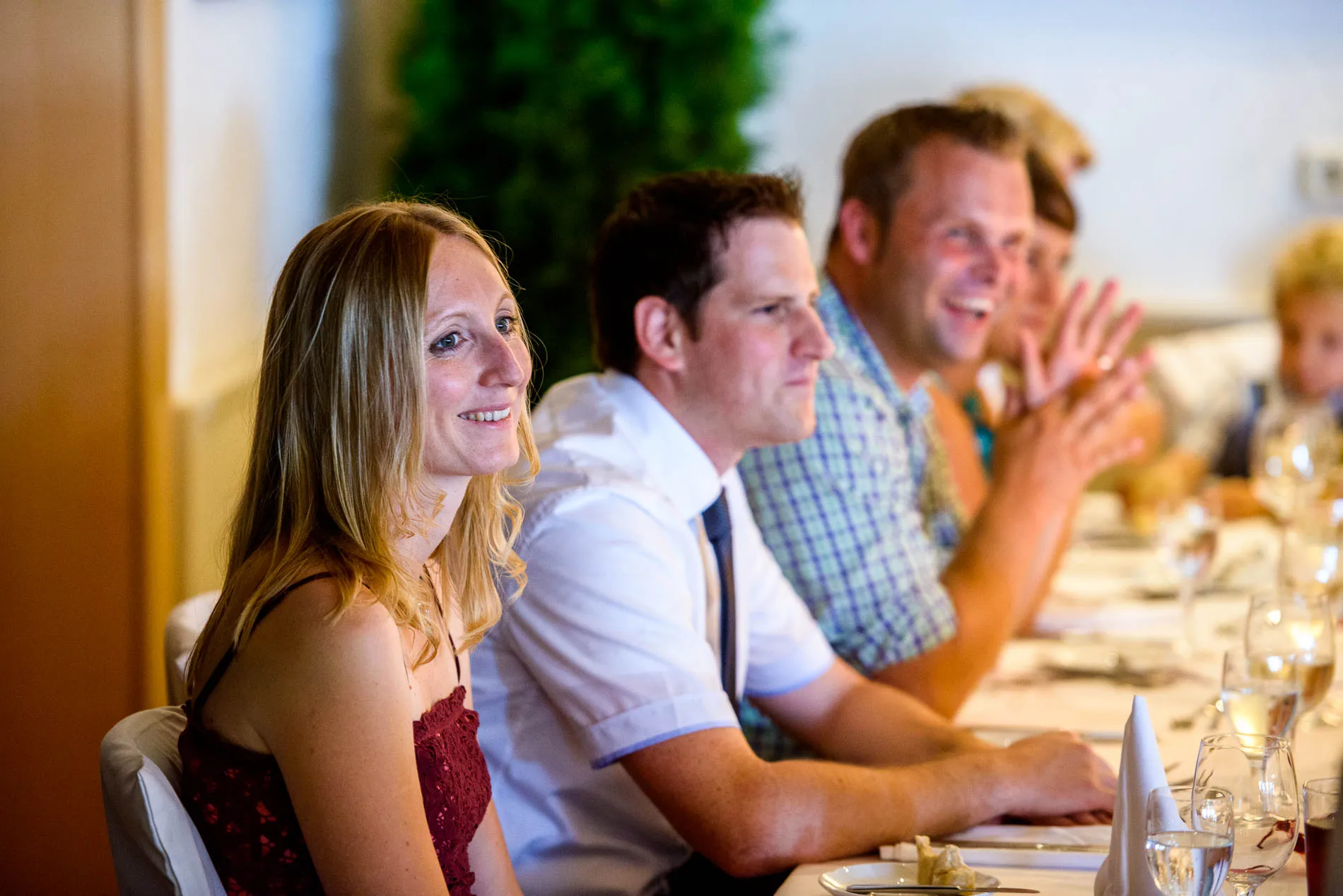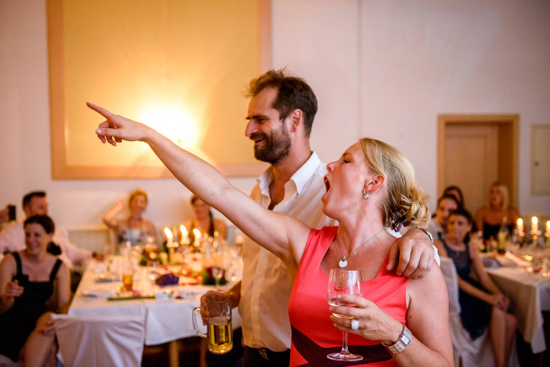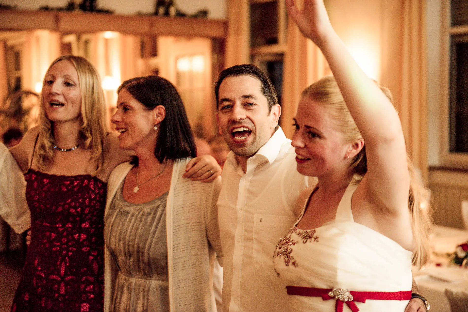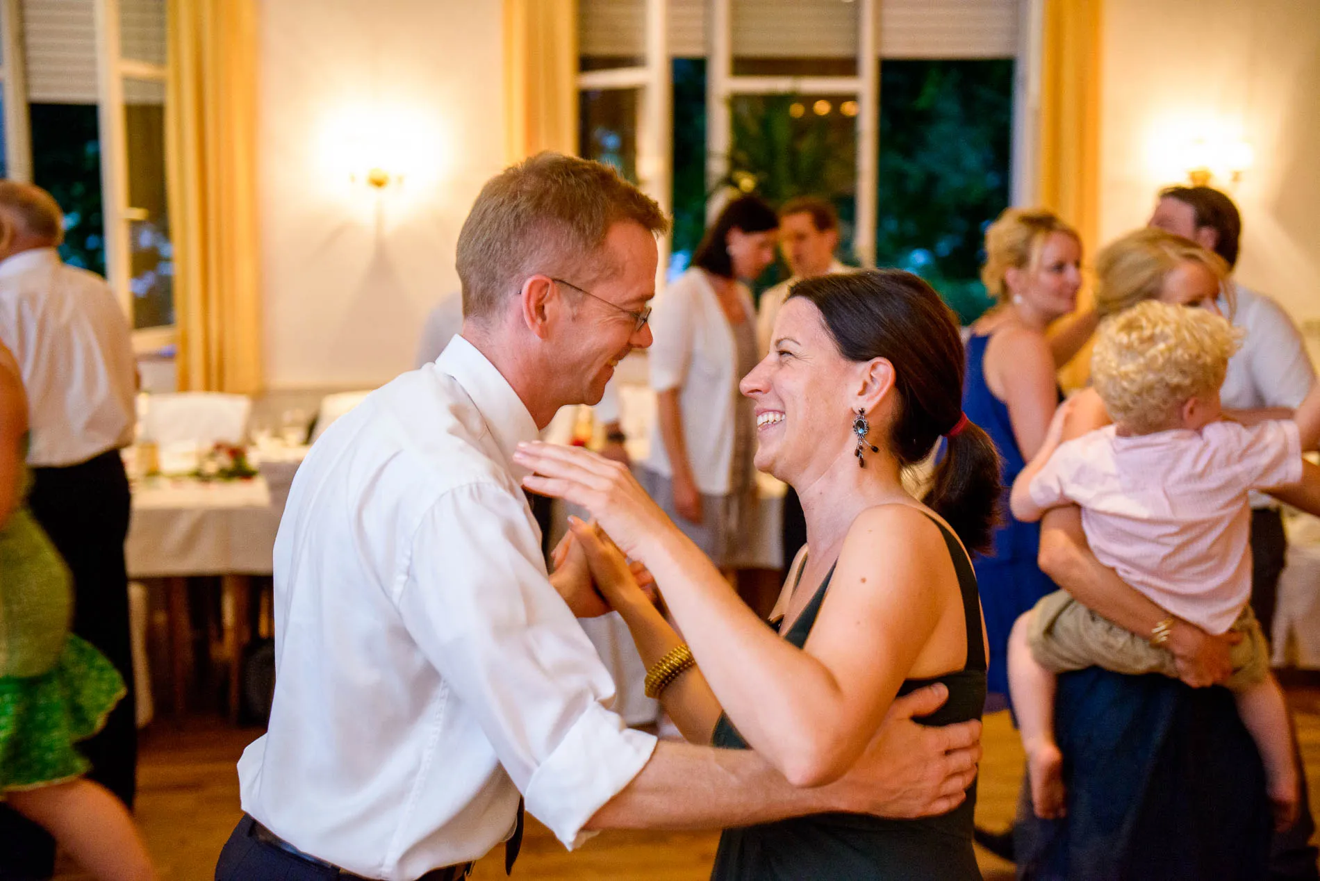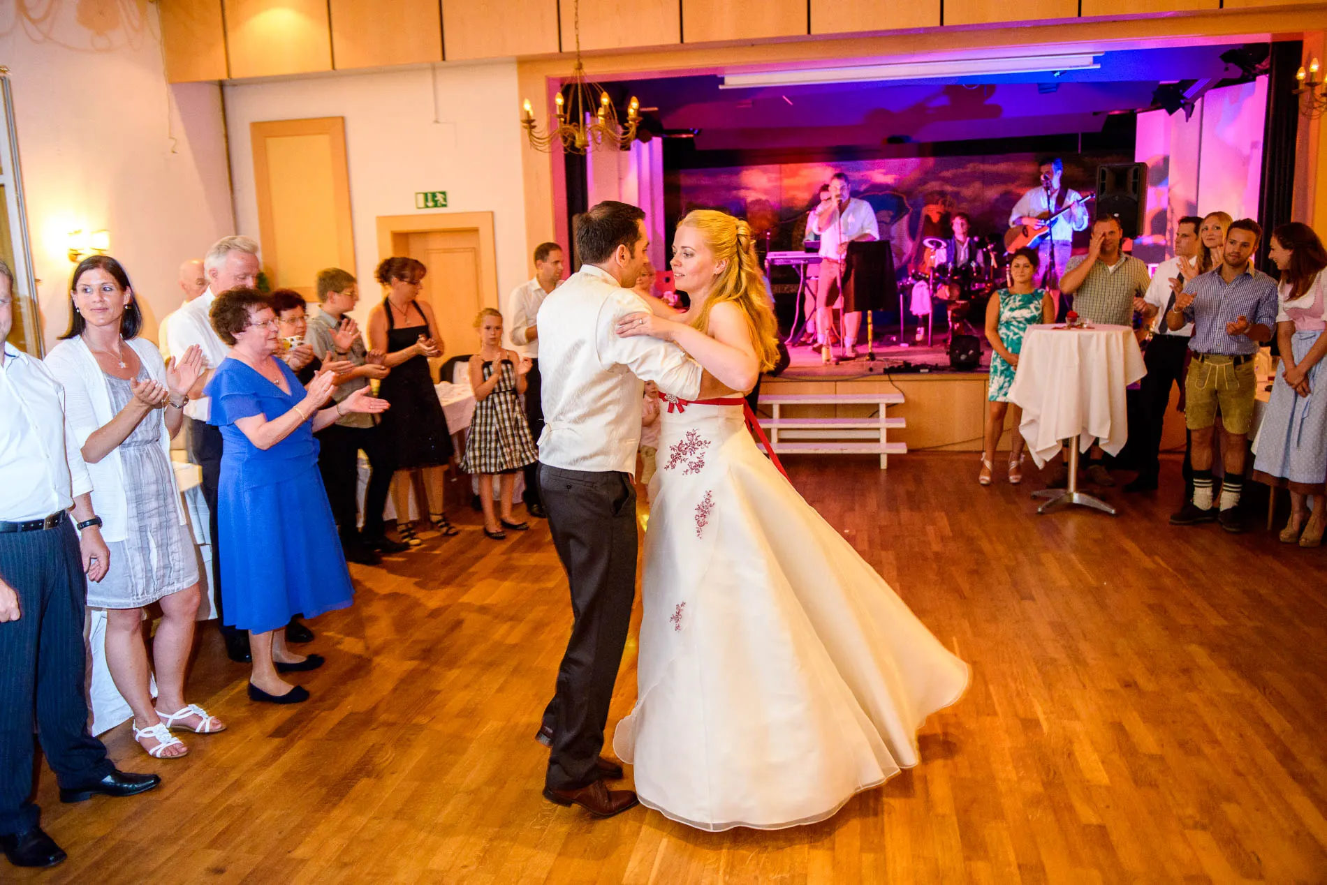 Zurück im Saal folgten die klassischen Programmpunkte: Reden von Gästen und vom Brautpaar selbst, die zwischen Humor und Emotion pendelten. Nach dem Essen eröffnete der Brautwalzer die Tanzfläche, und die Band verstand ihr Handwerk so gut, dass selbst Tanzmuffel plötzlich rhythmische Ambitionen entwickelten.