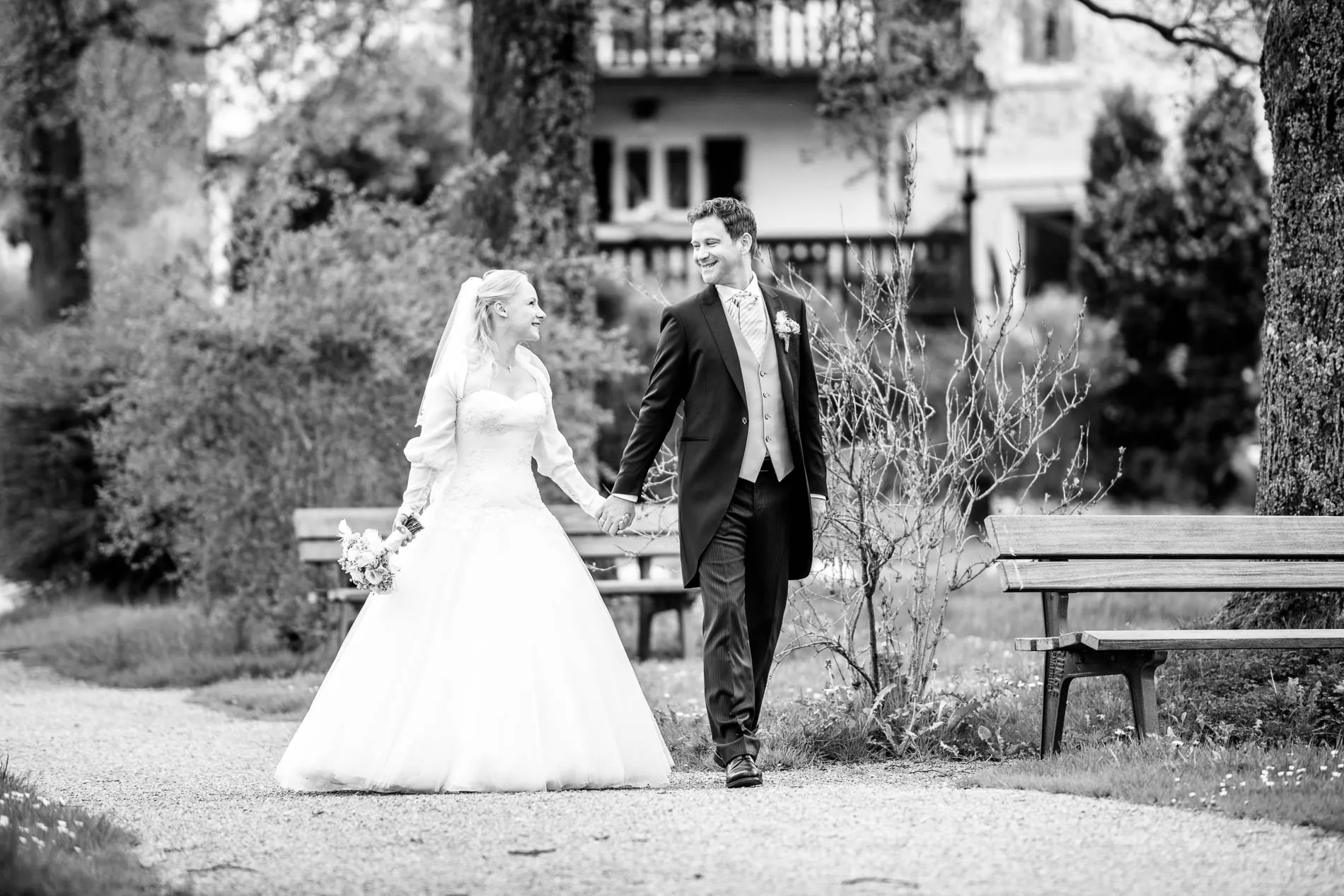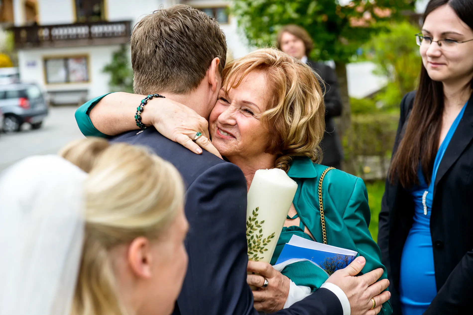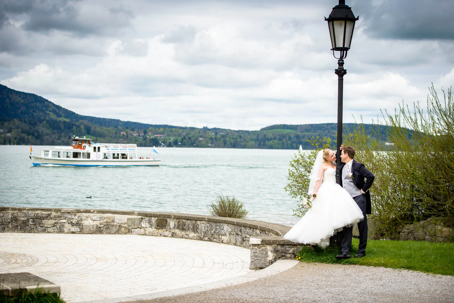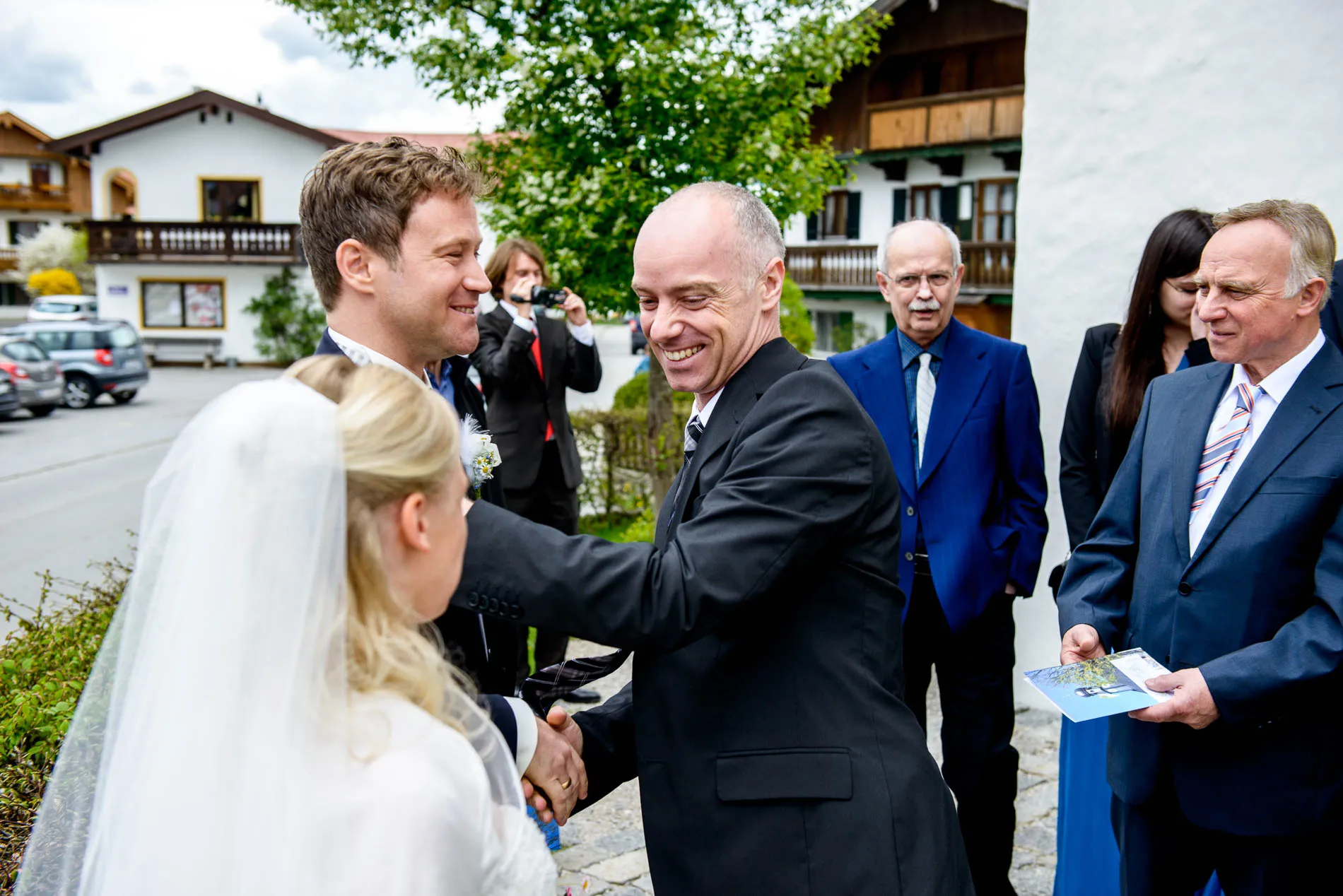 Diese Hochzeit am Tegernsee bleibt mir vor allem wegen der Mischung aus klassischer Eleganz und spontanen Improvisationen im Gedächtnis. Das Brautpaar nahm jede kleine Planänderung mit Humor – die Autofahrt statt der vorgesehenen Pferdekutsche war schnell akzeptiert. Gerade diese Kombination aus Bodenständigkeit und Abenteuerlust machte den Tag so besonders. Für mich als Hochzeitsfotograf war es ein Fest, all diese Momente einzufangen: vom stillen Blick beim Getting Ready bis zur Ankunft über den See. Und ehrlich gesagt: Ein Brautpaar, das mit so viel Gelassenheit und Freude durchs Programm geht, sorgt ganz automatisch für Bilder, die man nicht inszenieren könnte – selbst wenn man wollte.