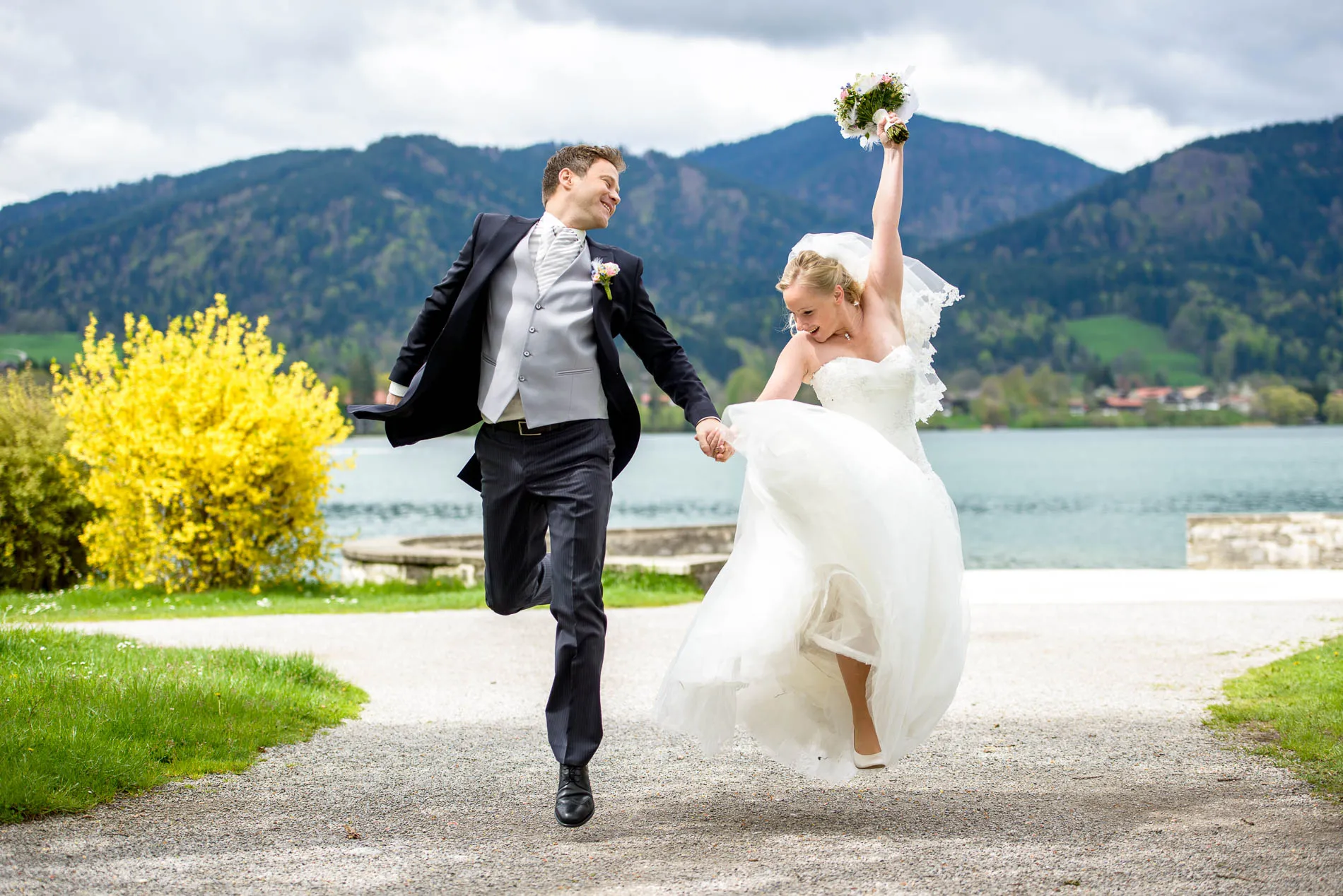 Ein Hochzeitstag am Tegernsee hat schon von Natur aus etwas Filmreifes. An diesem Morgen lag ein leichter Dunst über dem Wasser, die Sonne blinzelte vorsichtig durch die Wolken – als hätte sie selbst noch nicht entschieden, ob sie heute zur Feier erscheinen möchte. Für mich als Hochzeitsfotograf München war sofort klar: Das wird ein Tag, an dem Improvisation und Eleganz Hand in Hand gehen.