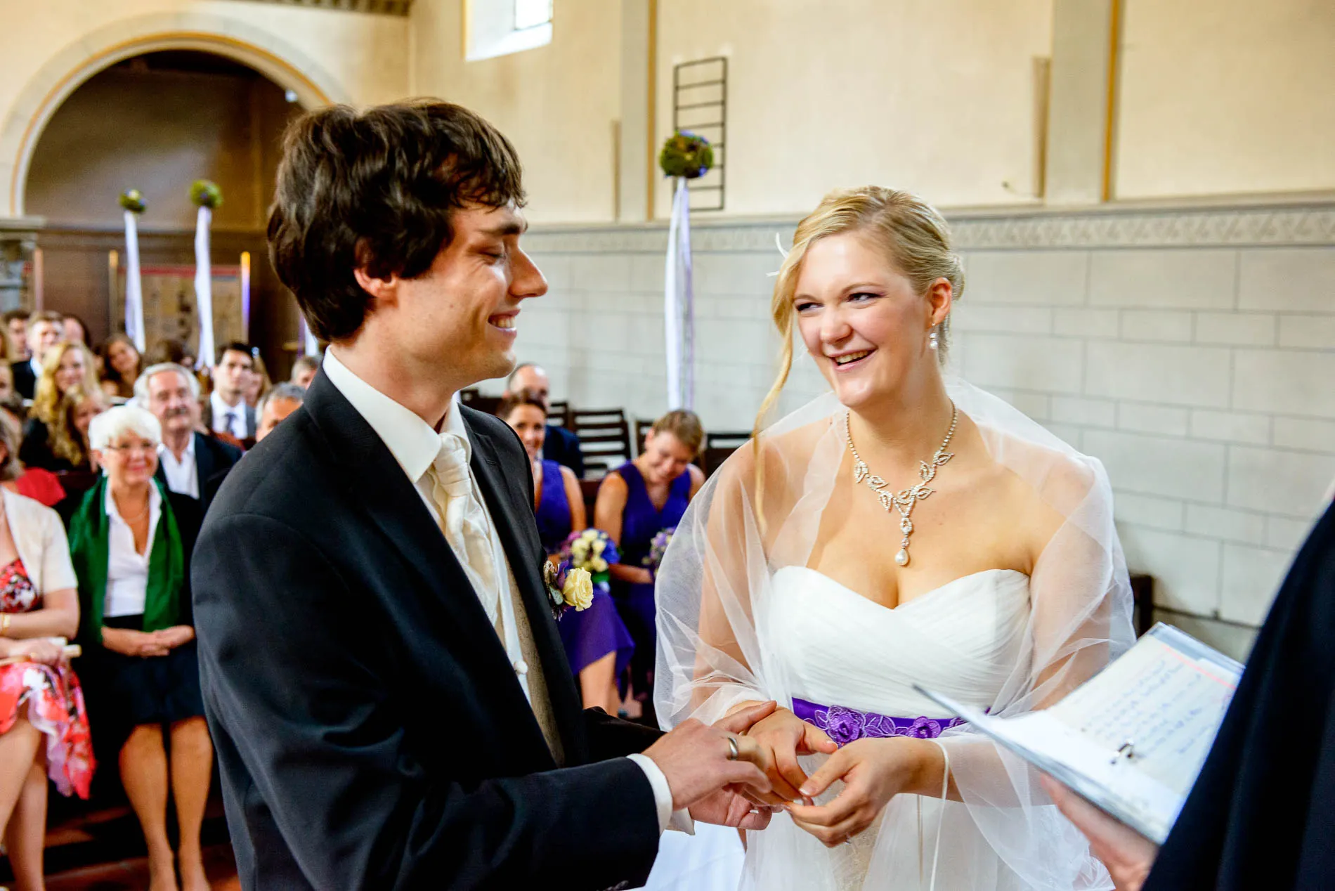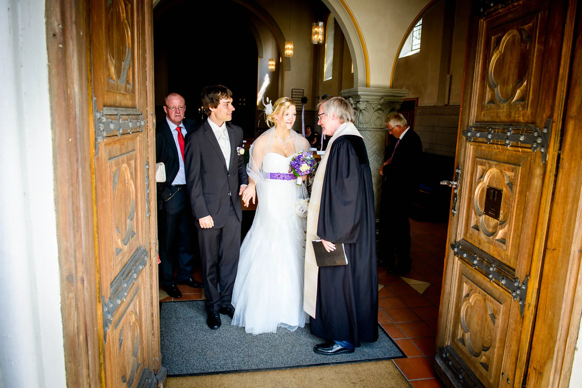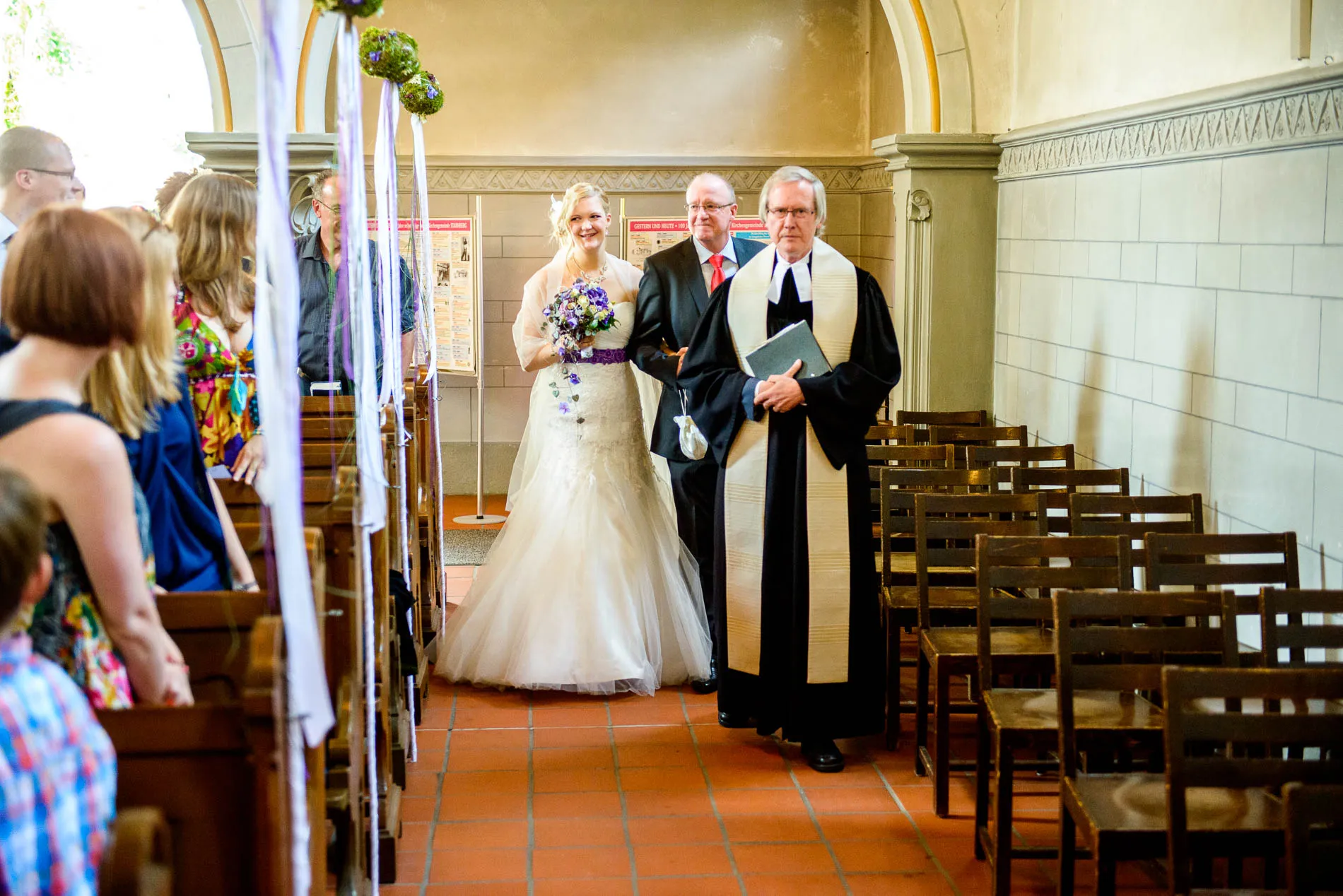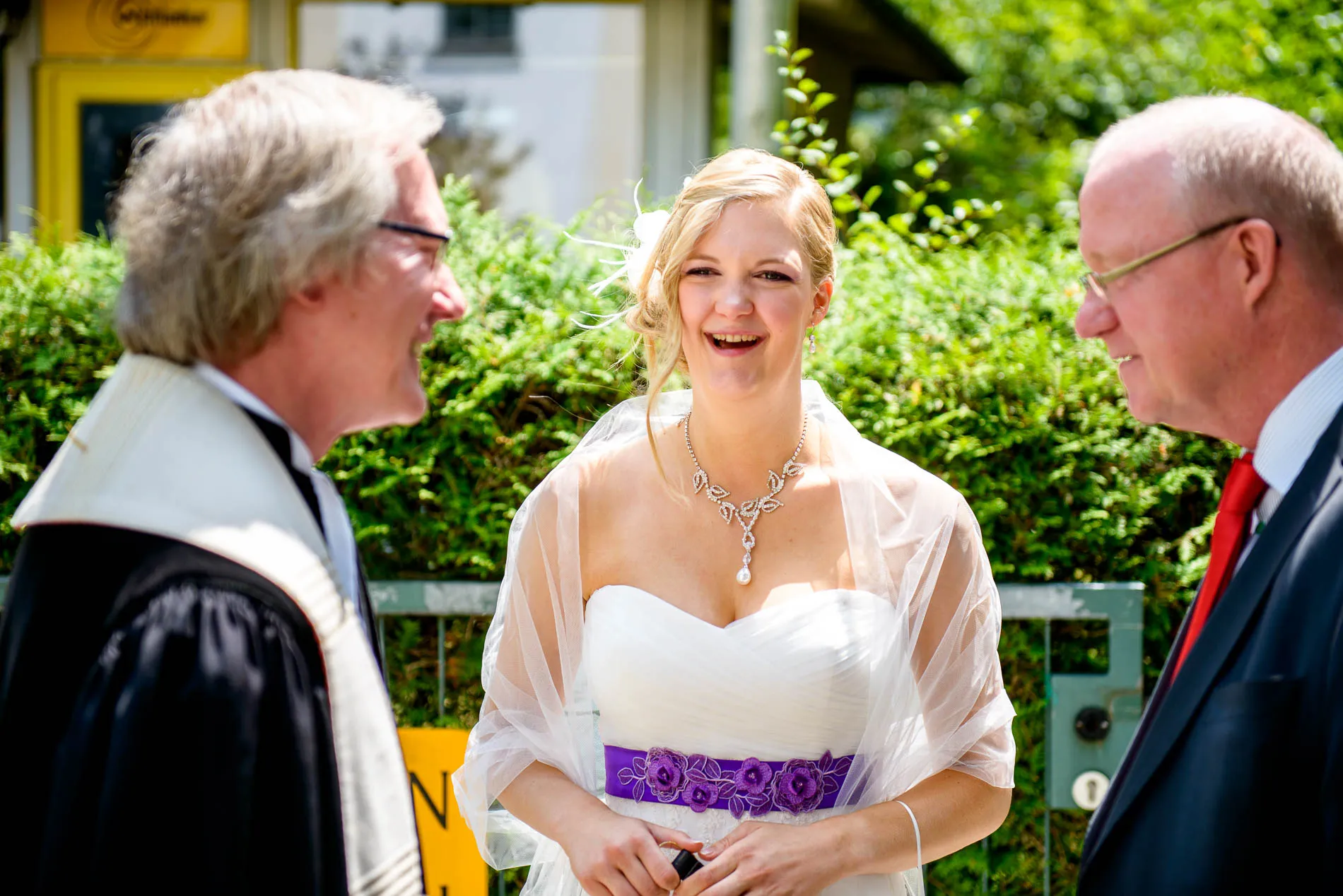 Die Hochzeit begann am frühen Nachmittag in der evangelischen Friedenskirche Starnberg. Ein Ort, der nicht nur durch seine Architektur beeindruckt, sondern auch durch seine helle, freundliche Atmosphäre. Die Braut wurde traditionell vom Vater hereingeführt, während der Bräutigam am Altar wartete – ein Moment, der selbst nach hunderten Hochzeiten noch immer eine gewisse Magie versprüht.