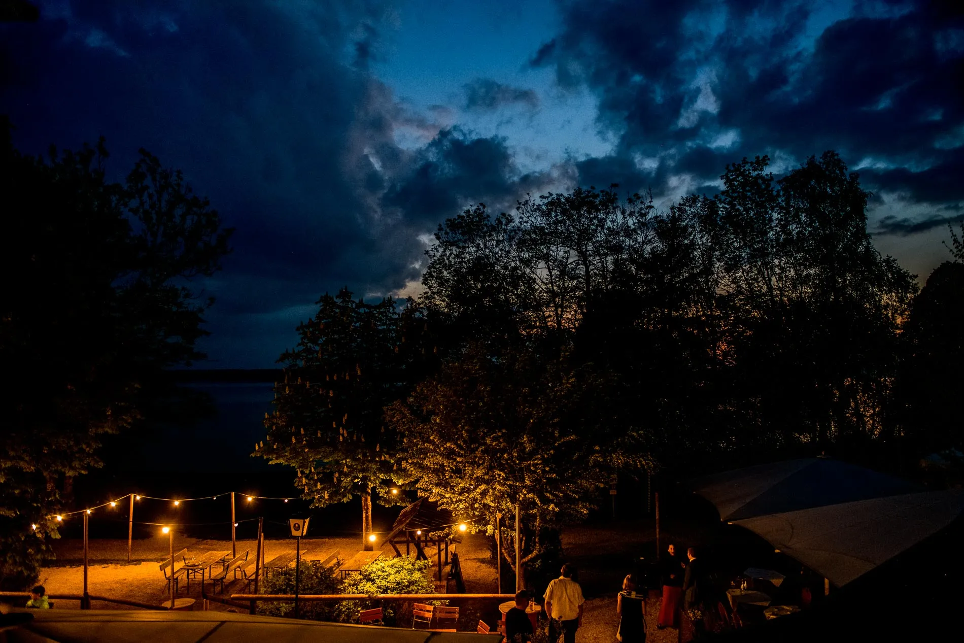 Bei einer meiner Hochzeitsreportagen dort fand die freie Trauung in einem großzügigen Partyzelt direkt neben der Terrasse statt. Praktisch, denn so war man wetterunabhängig – und gleichzeitig mit Blick auf den See. Die Kombination aus festlicher Dekoration und der Nähe zum Wasser verlieh der Zeremonie eine besondere Atmosphäre, die sowohl für die Gäste als auch für die Fotos unvergesslich blieb.