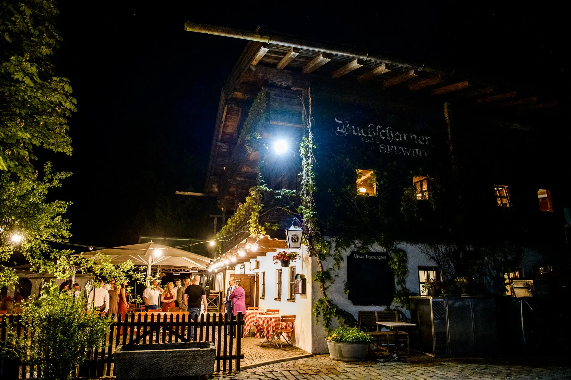 Der Buchscharner Seewirt ist nicht nur eine Location, sondern auch ein Restaurant mit durchgehend warmer Küche. Geboten wird klassische bayerische Küche, ergänzt durch saisonale Spezialitäten. Für Hochzeiten können Menüs oder Buffets individuell abgestimmt werden – von traditionell bis modern. Die Mischung aus Gasthaus-Gemütlichkeit und festlichem Rahmen sorgt dafür, dass sich Gäste sofort wohlfühlen.