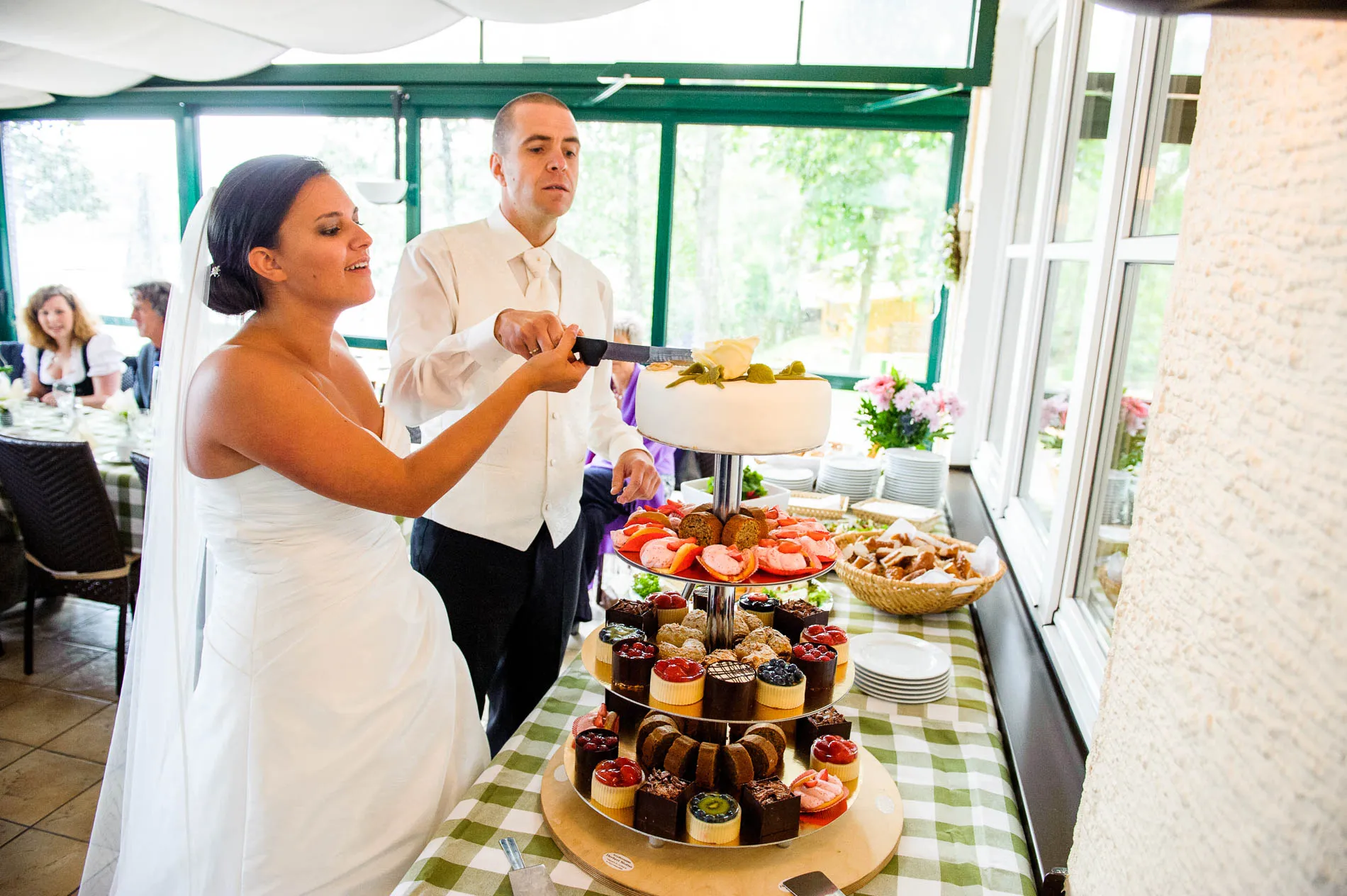 Im Wintergarten des Restaurants wartete die Hochzeitstorte – kunstvoll, süß und fast zu schade zum Anschneiden. Fast. Dazu gab es Kaffee, Kuchen und für die herzhaften Gemüter ein Käsebuffet mit Obatzda. Eine kulinarische Mischung, die so typisch bayerisch ist wie der Staffelsee selbst: bodenständig, charmant und mit einer gewissen Gelassenheit serviert.