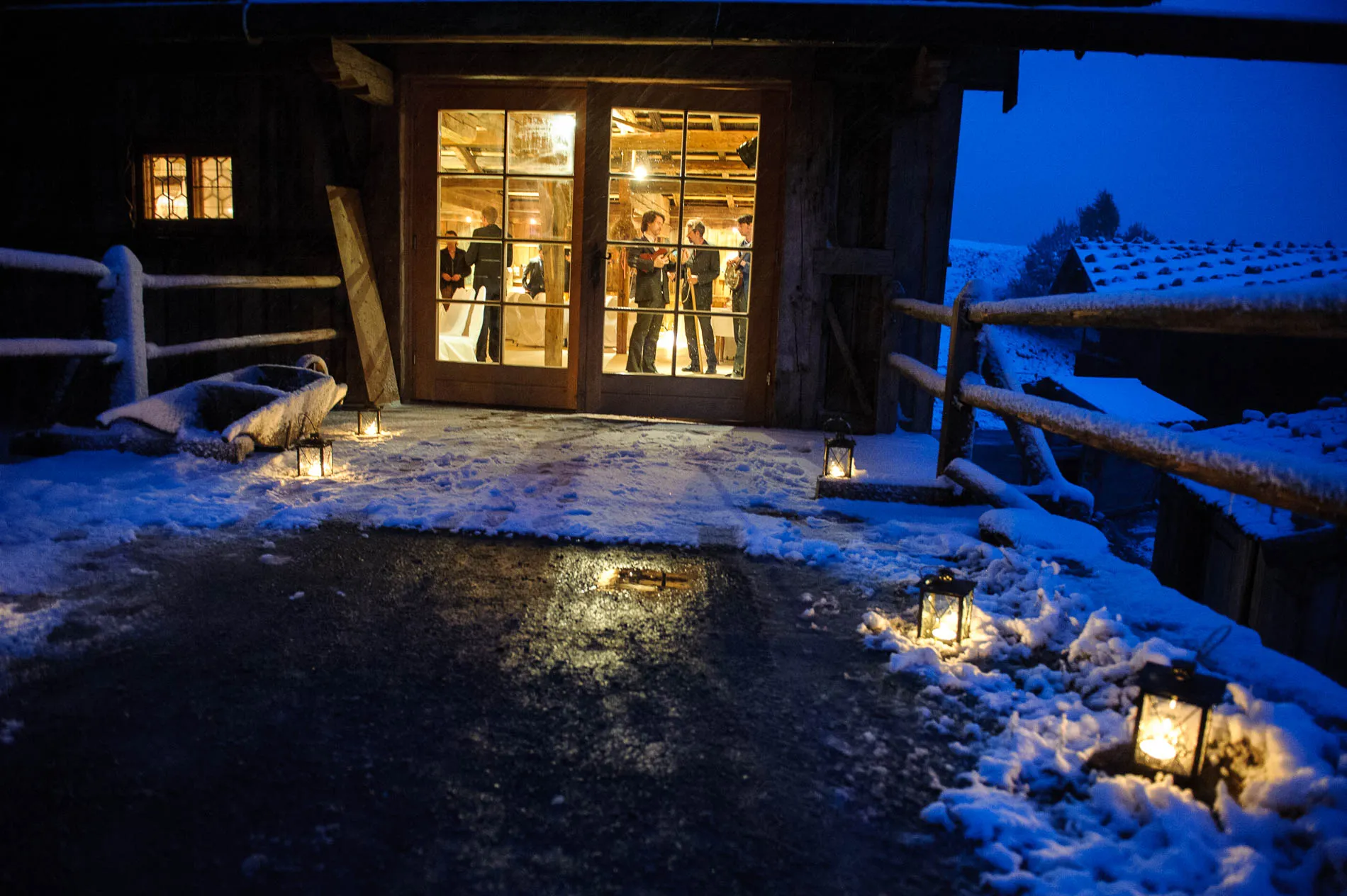 Als Hochzeitsfotograf durfte ich hier bereits mehrere Hochzeiten begleiten – und jedes Mal war es ein Erlebnis. Besonders in Erinnerung geblieben ist mir eine Feier Ende Oktober: Während die Gäste noch den Sektempfang genossen, begann es sanft zu schneien. Plötzlich lag eine fast vorweihnachtliche Stimmung über dem Dorf – als hätte jemand die Kulisse für ein Wintermärchen bestellt.