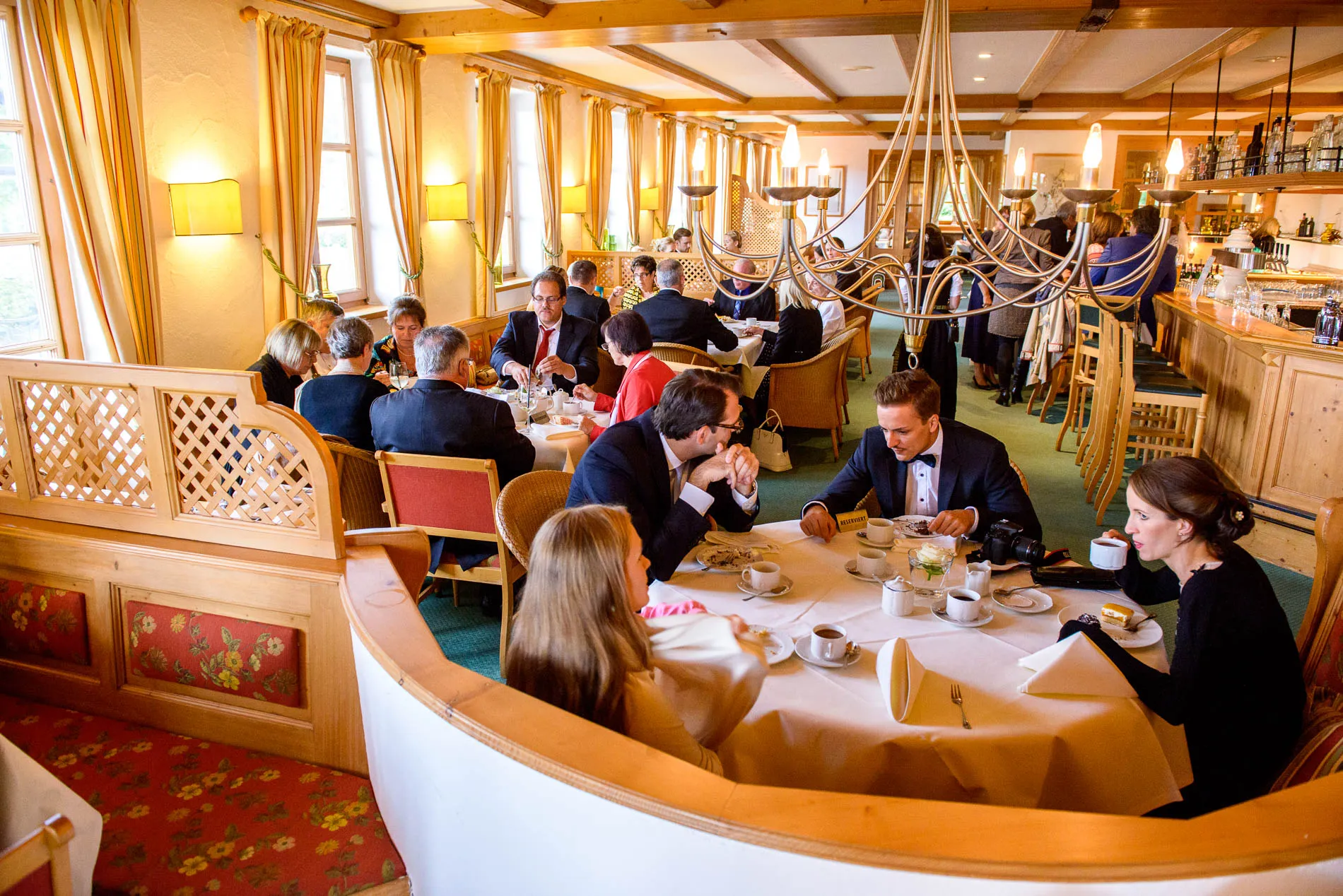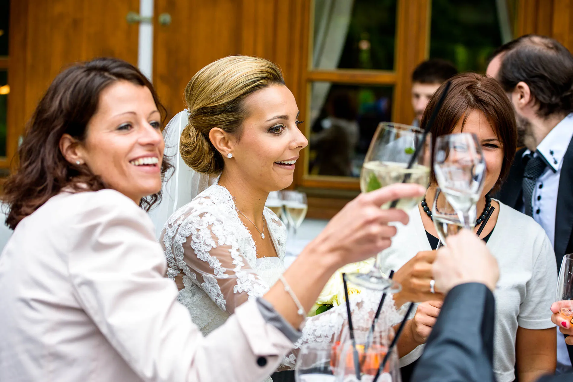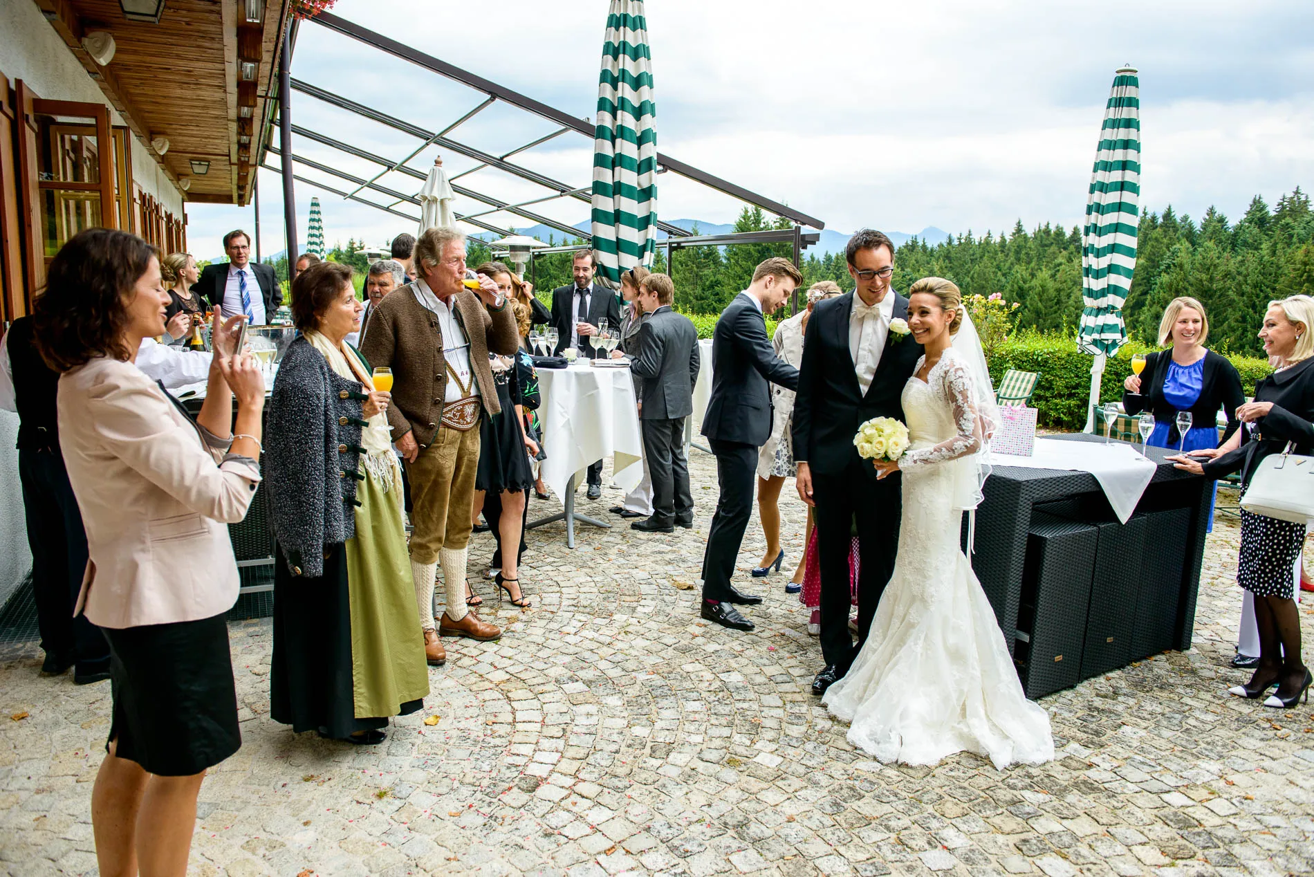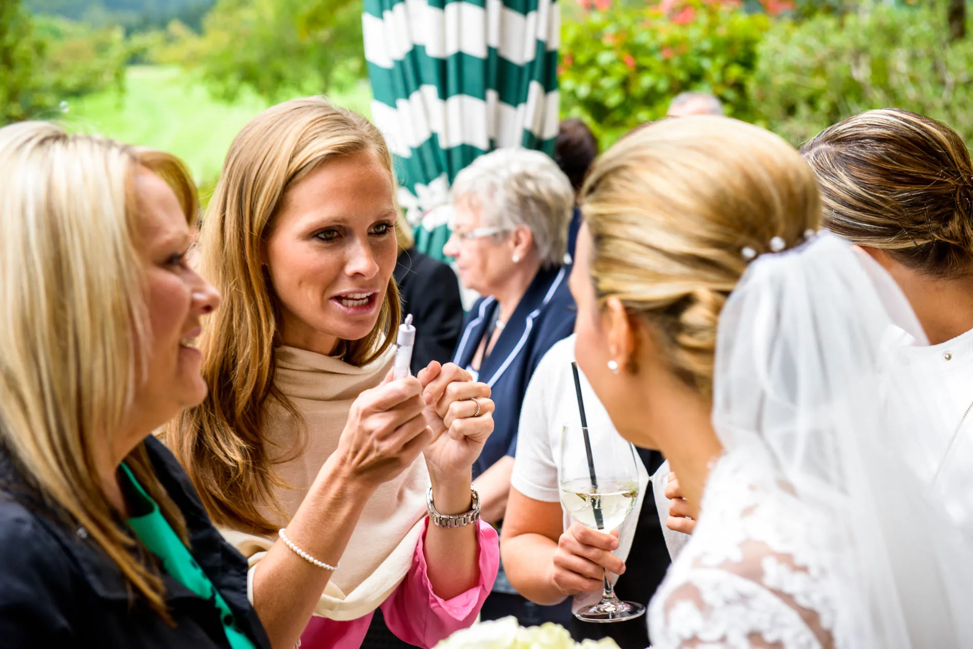Nur wenige Kilometer entfernt erwartete die Gäste der Margarethenhof in Marienstein. Das Golfresort liegt idyllisch eingebettet in eine hügelige Landschaft, die an diesem Tag zwar nicht von der Sonne verwöhnt wurde, aber dennoch ihren Charme versprühte. Auf der Terrasse wurde angestoßen, gratuliert und gelacht. Die Kinder übernahmen zunächst den „Seifenblasenjob“ – mit großem Eifer und wenig Koordination. Später mischten sich auch die Erwachsenen ein, was zu einigen amüsanten Szenen führte.