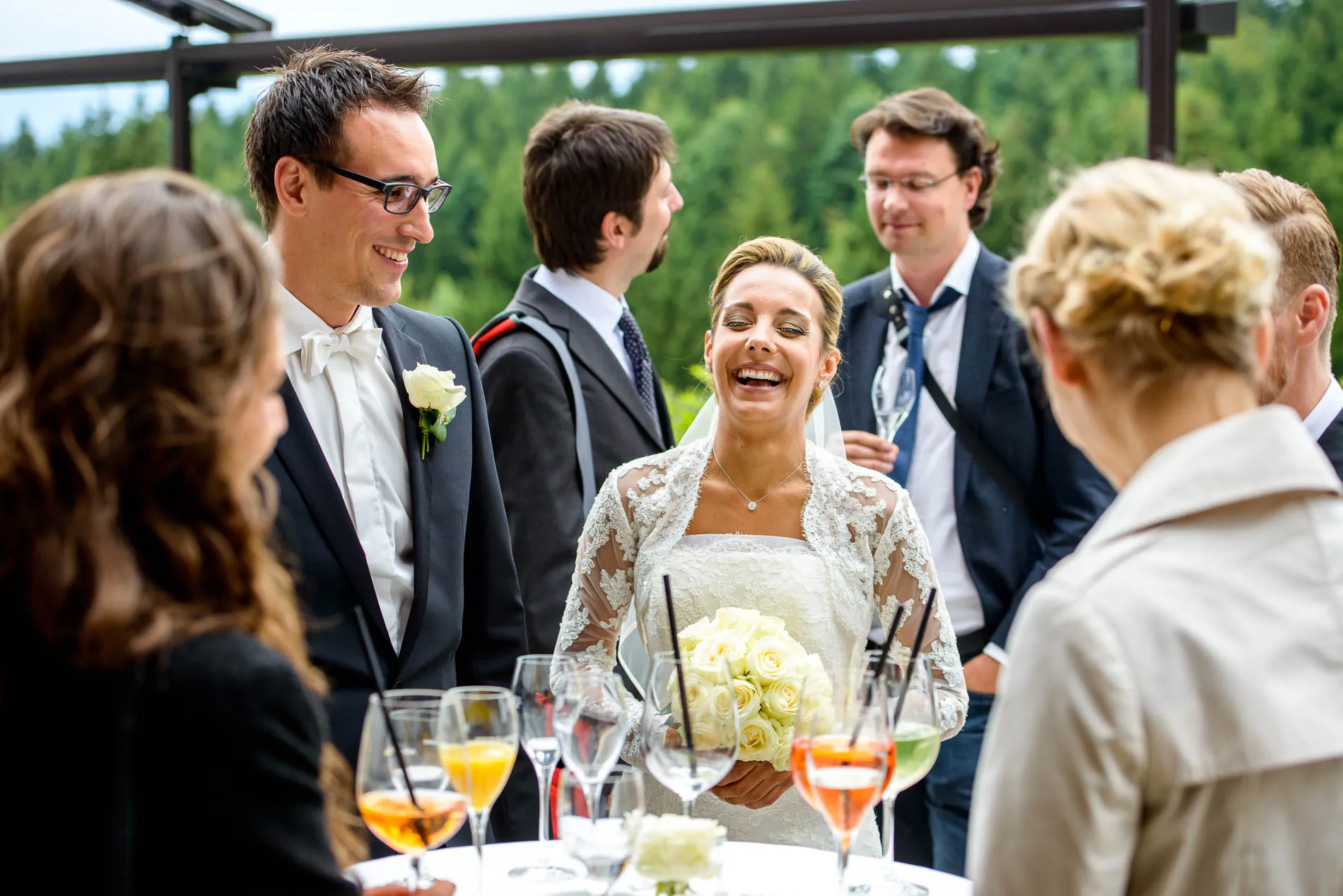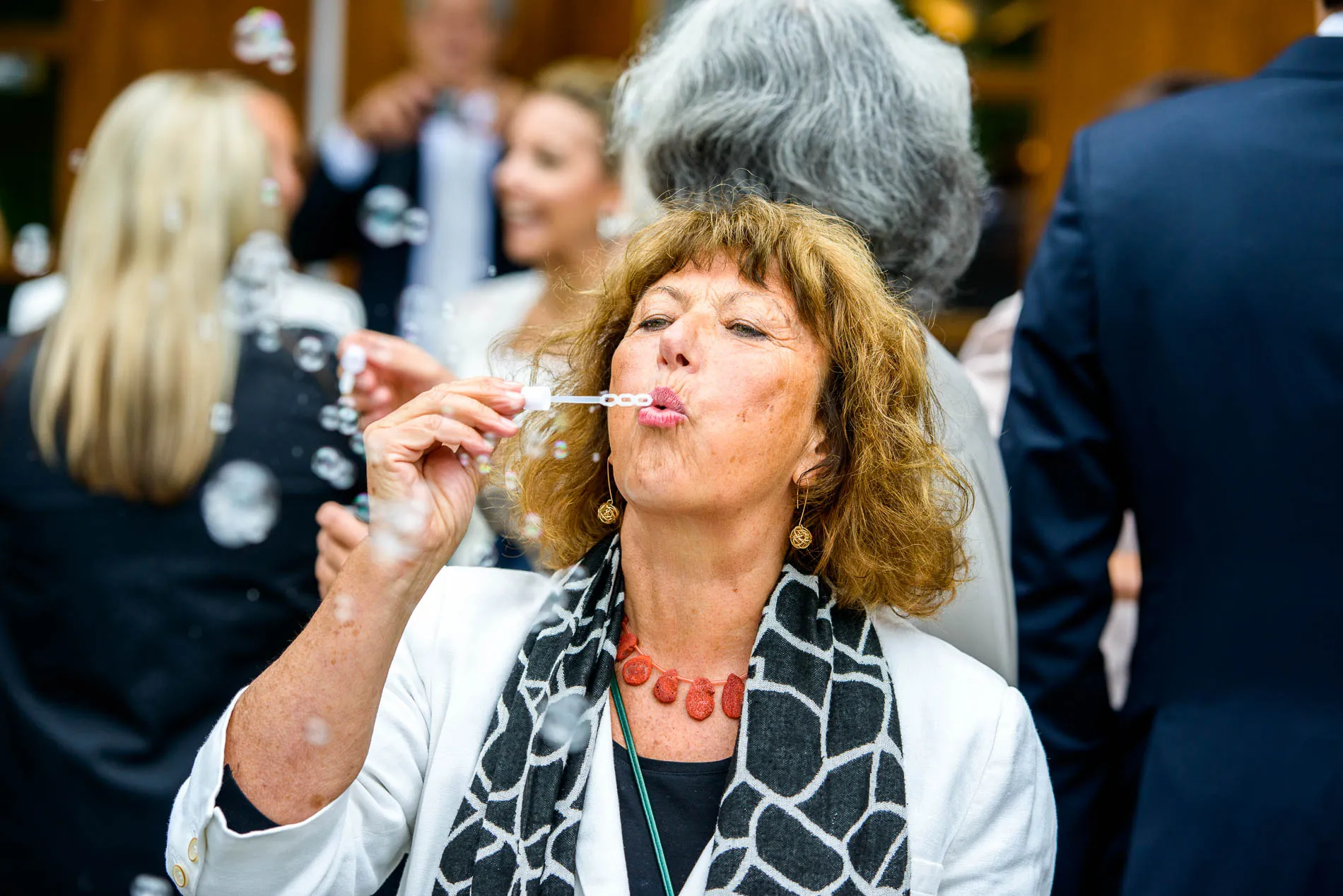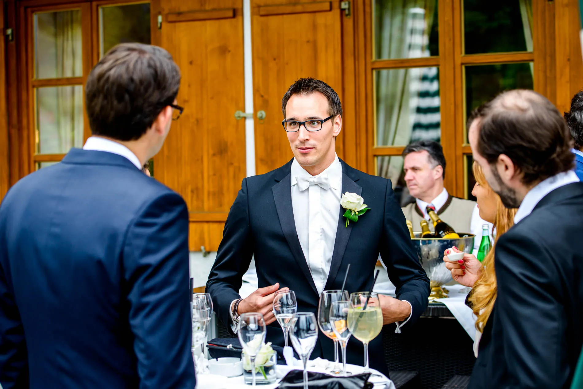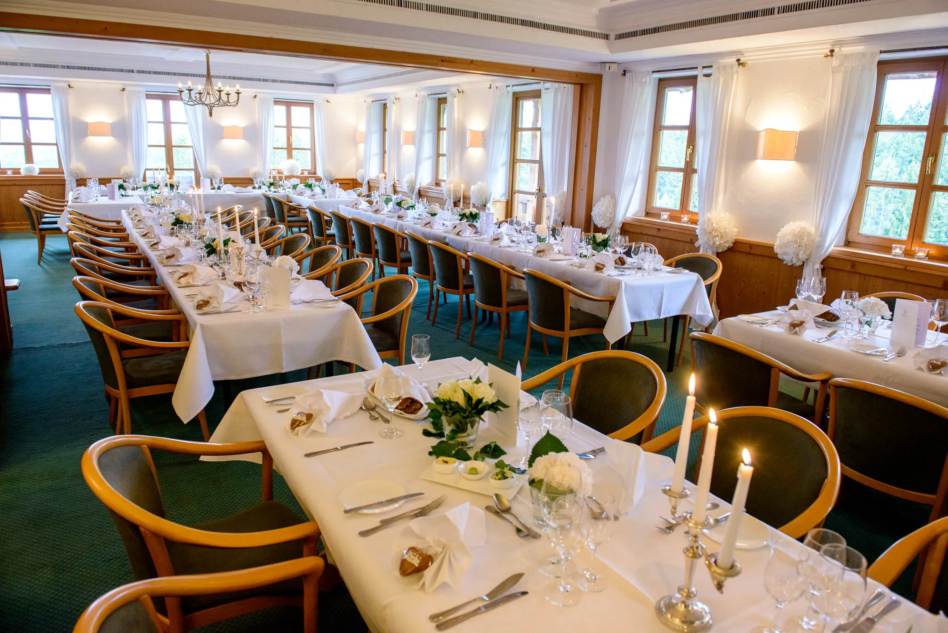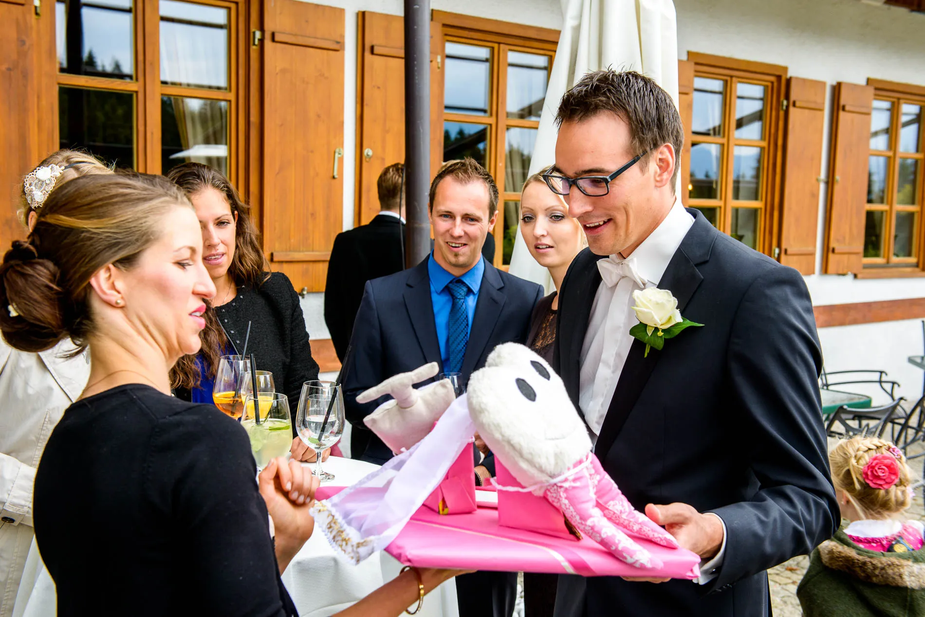 Nur wenige Kilometer entfernt erwartete die Gäste der Margarethenhof in Marienstein. Das Golfresort liegt idyllisch eingebettet in eine hügelige Landschaft, die an diesem Tag zwar nicht von der Sonne verwöhnt wurde, aber dennoch ihren Charme versprühte. Auf der Terrasse wurde angestoßen, gratuliert und gelacht. Die Kinder übernahmen zunächst den „Seifenblasenjob“ – mit großem Eifer und wenig Koordination. Später mischten sich auch die Erwachsenen ein, was zu einigen amüsanten Szenen führte.