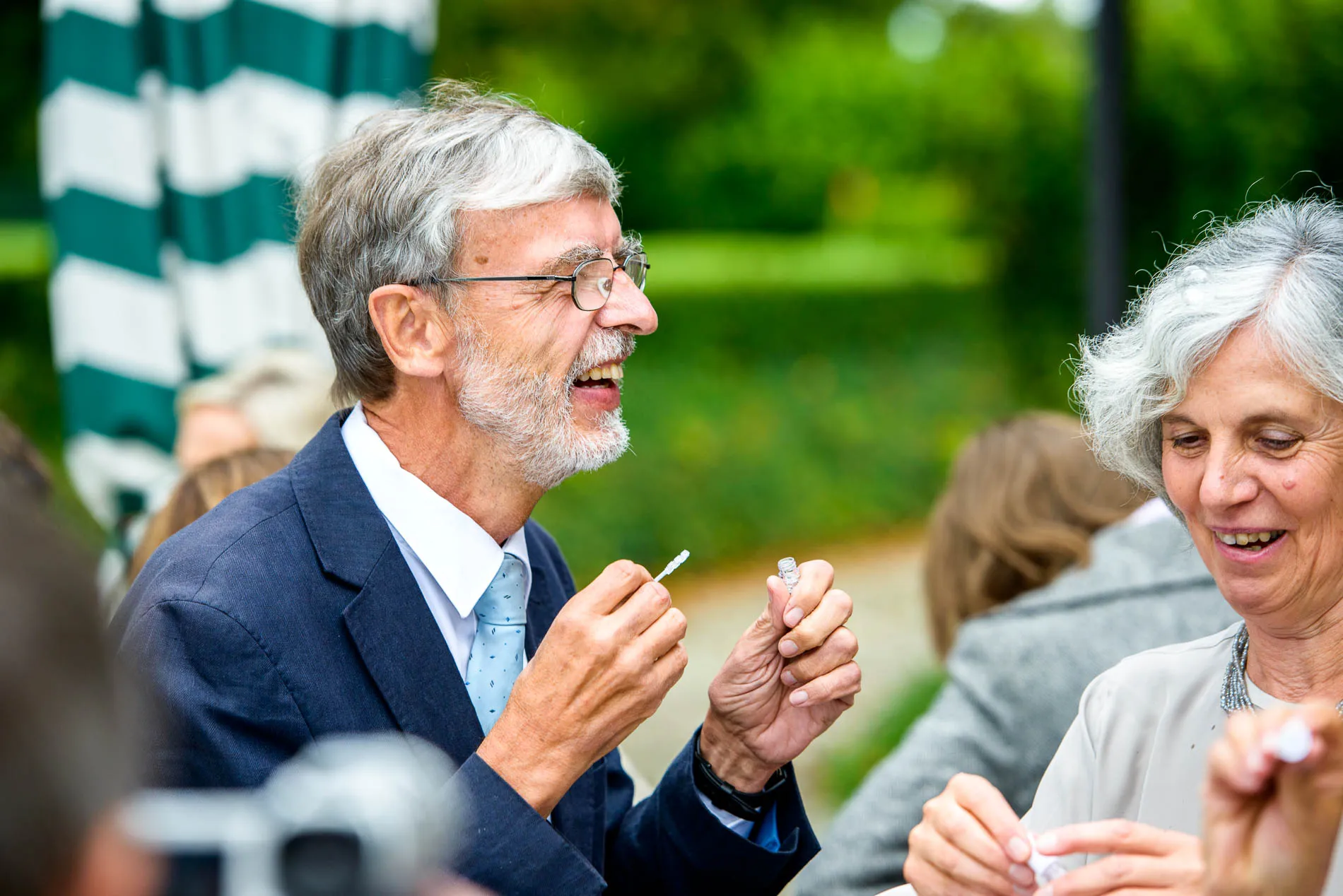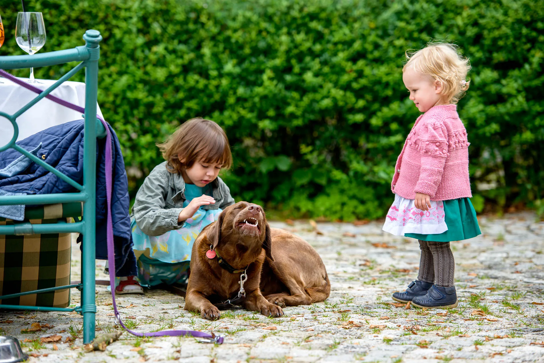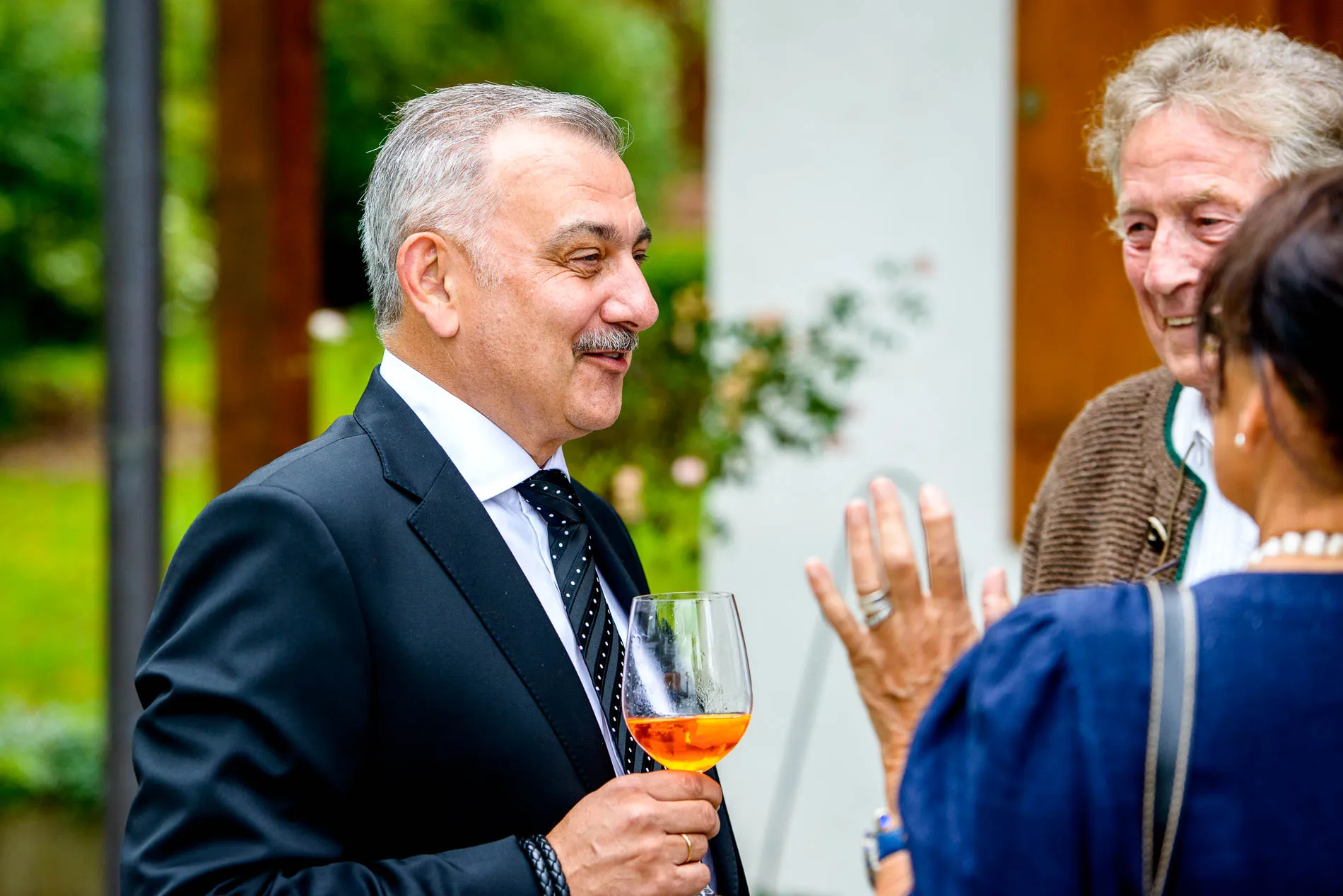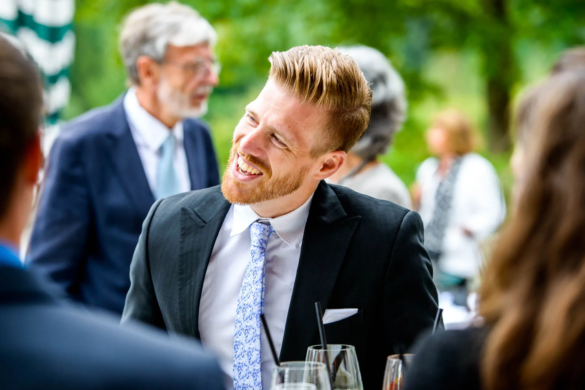 Nur wenige Kilometer entfernt erwartete die Gäste der Margarethenhof in Marienstein. Das Golfresort liegt idyllisch eingebettet in eine hügelige Landschaft, die an diesem Tag zwar nicht von der Sonne verwöhnt wurde, aber dennoch ihren Charme versprühte. Auf der Terrasse wurde angestoßen, gratuliert und gelacht. Die Kinder übernahmen zunächst den „Seifenblasenjob“ – mit großem Eifer und wenig Koordination. Später mischten sich auch die Erwachsenen ein, was zu einigen amüsanten Szenen führte.