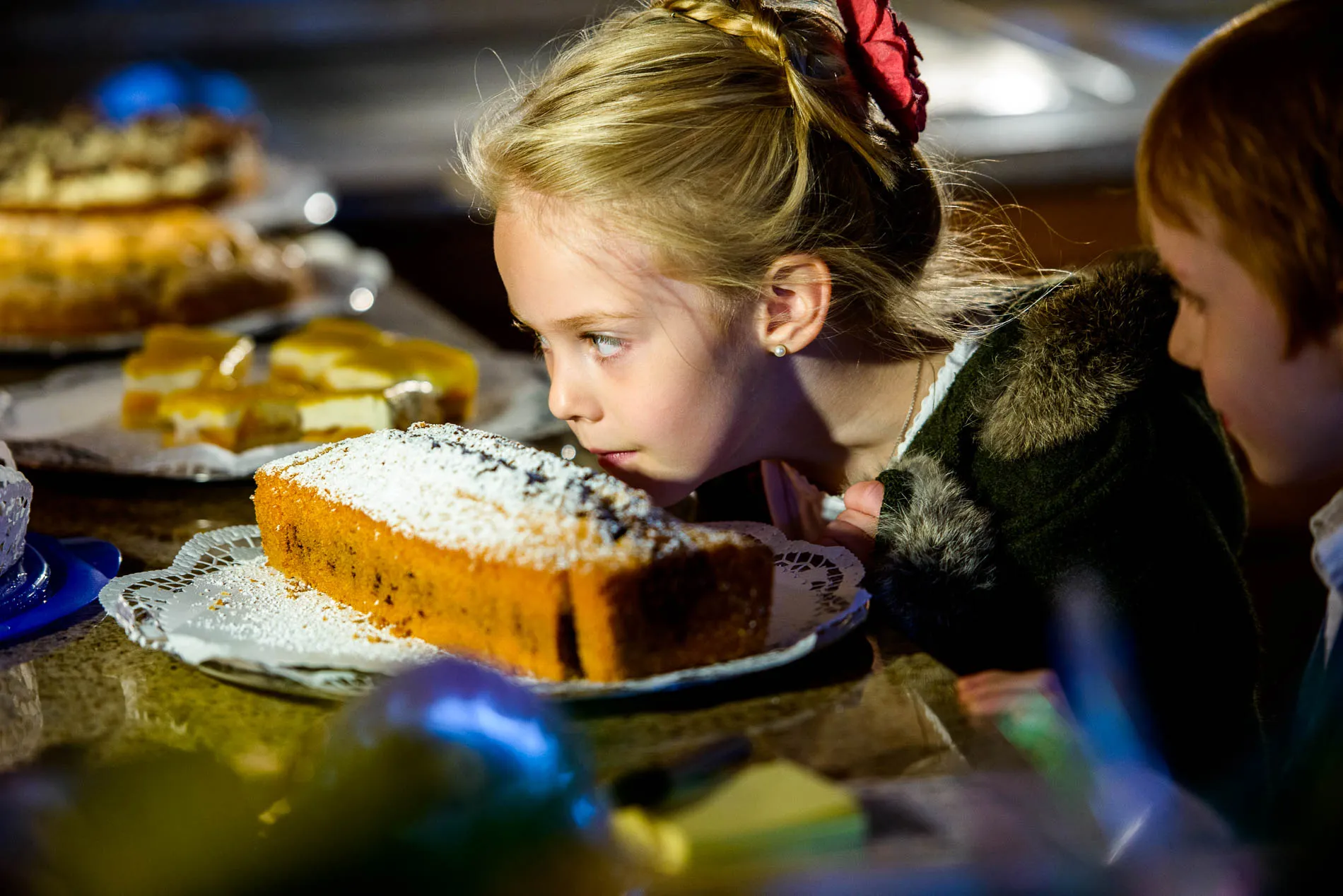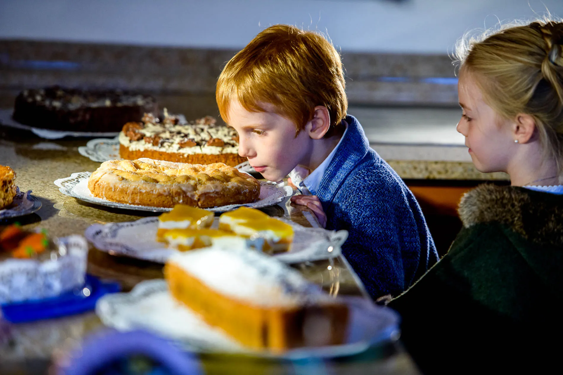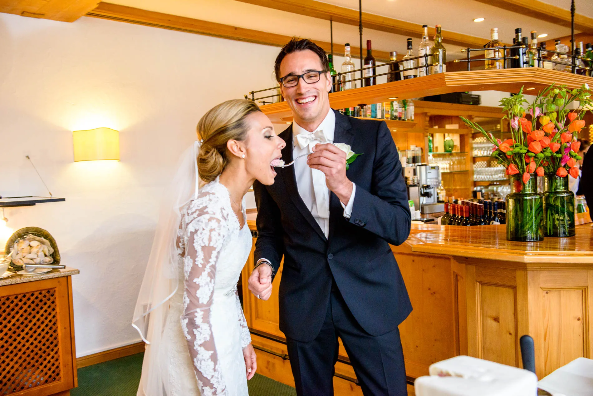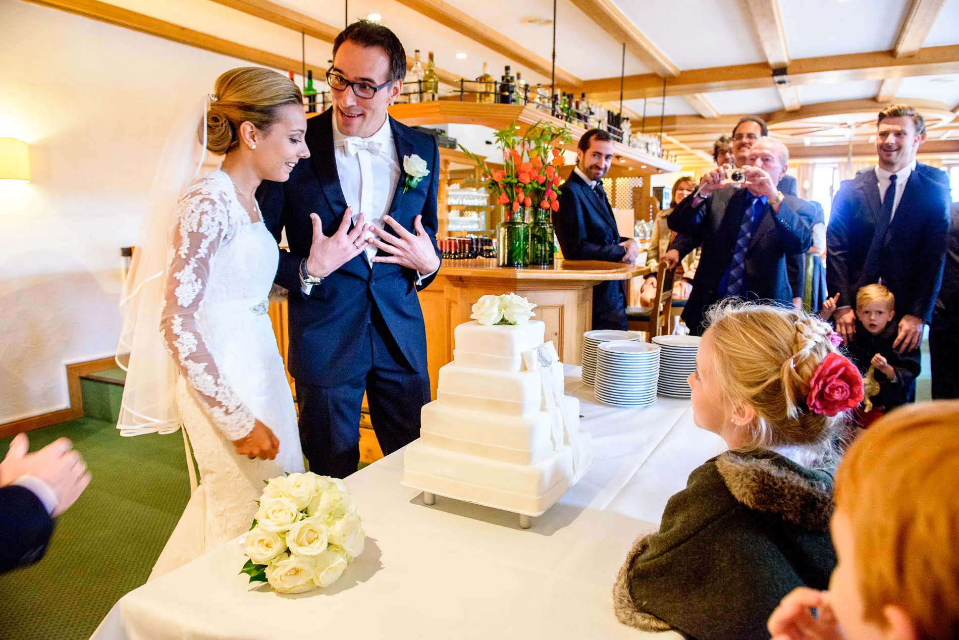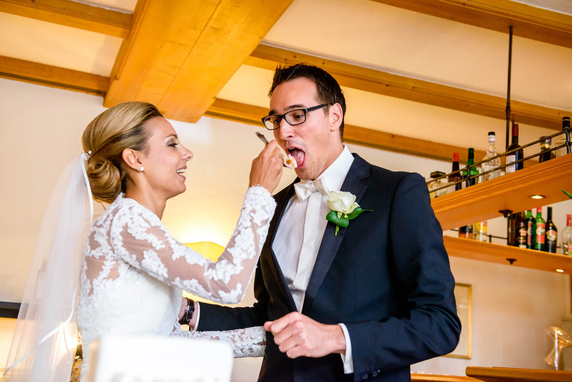 Wie so oft waren die Kinder die ersten, die das Kuchenbuffet entdeckten. Mit erstaunlicher Spürnase suchten sie sich schon vorab ihre Favoriten aus. Nach dem großen Gruppenfoto – für das ich kurzerhand den Balkon als improvisierte Drohnenperspektive nutzte – folgte der Anschnitt der Hochzeitstorte. Mit viel Freude, gegenseitigem Füttern und einer Portion Selbstironie wurde dieser Programmpunkt zu einem Highlight des Tages.