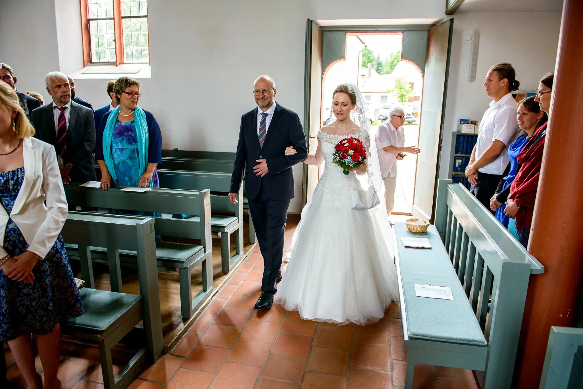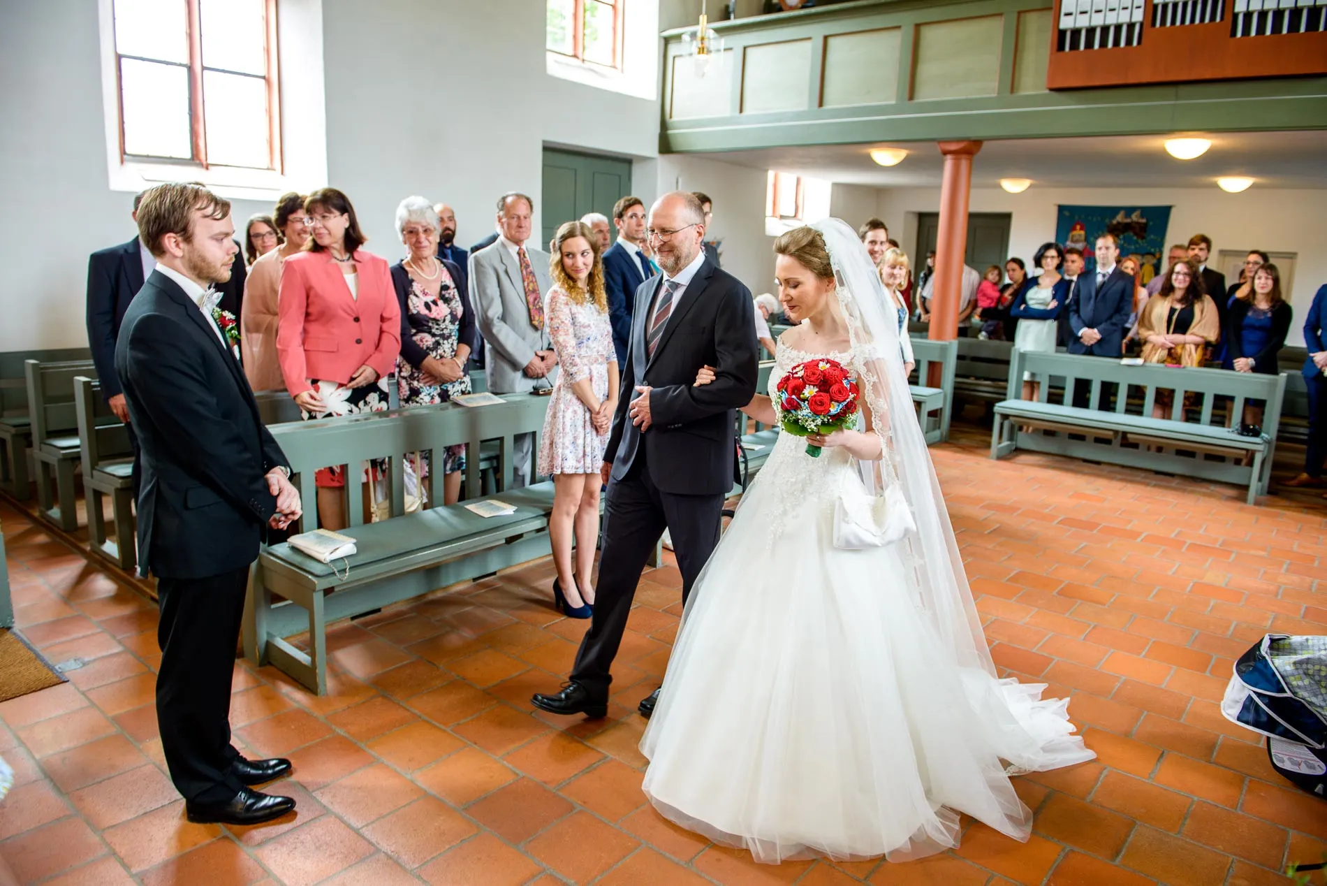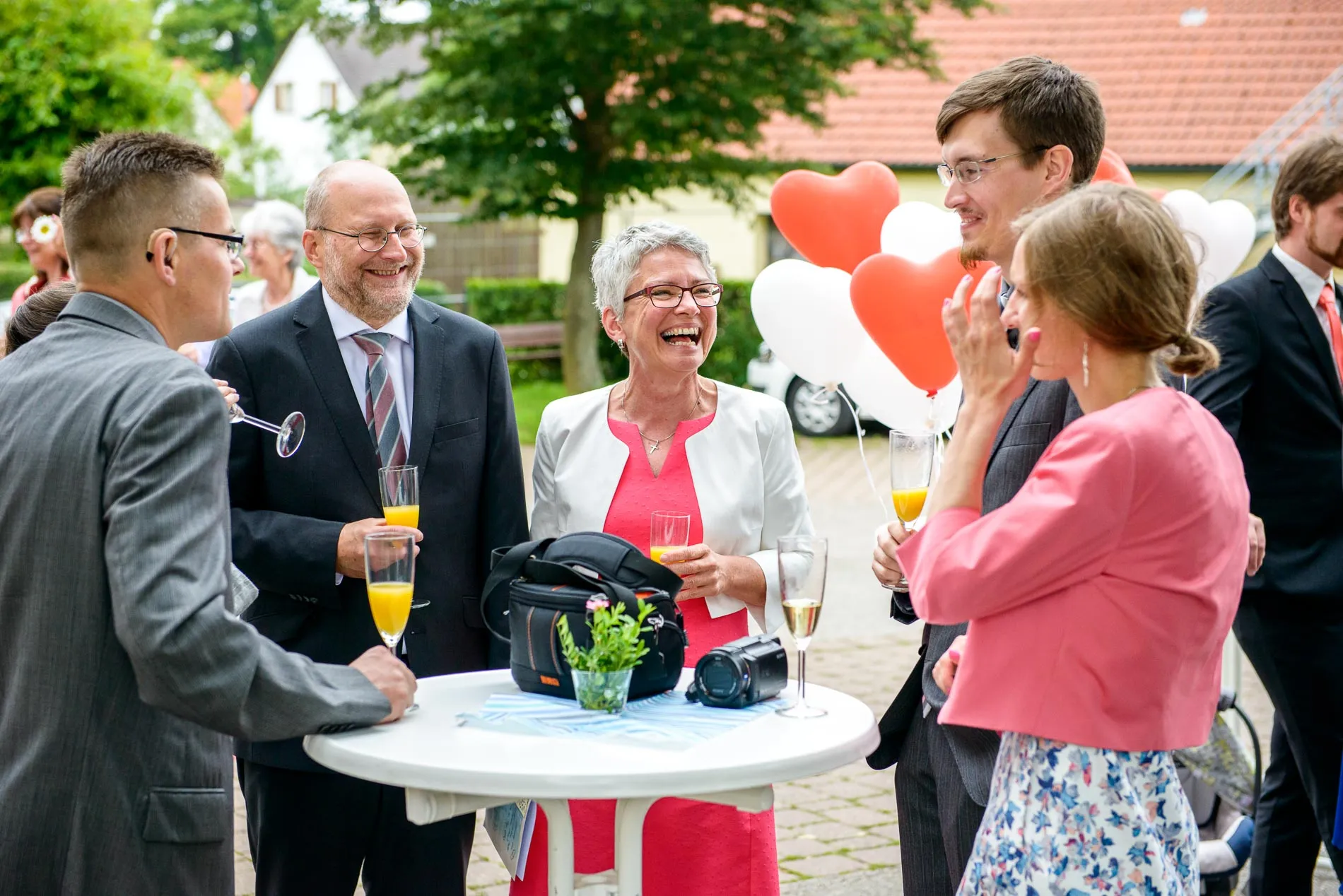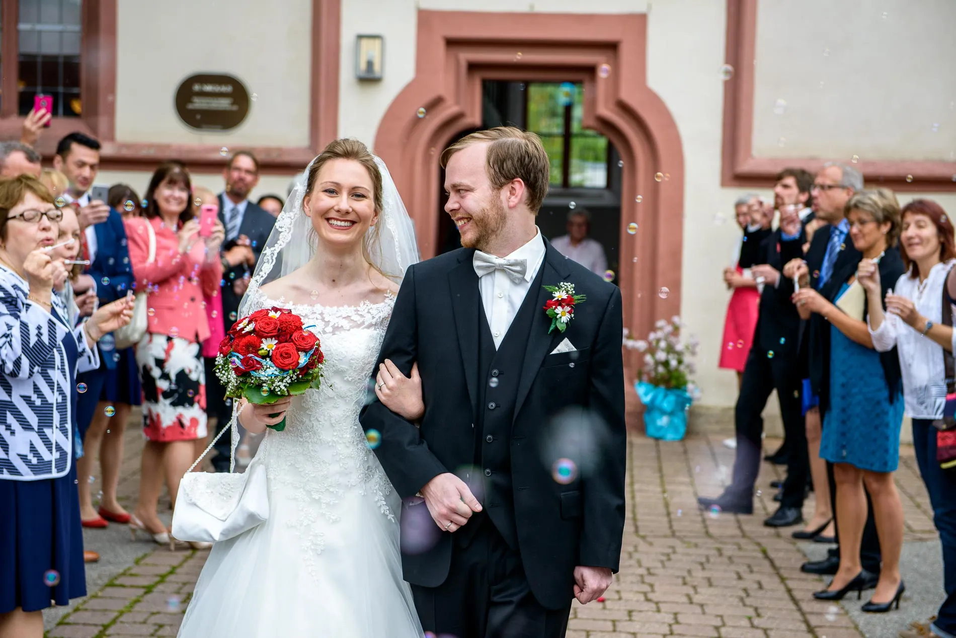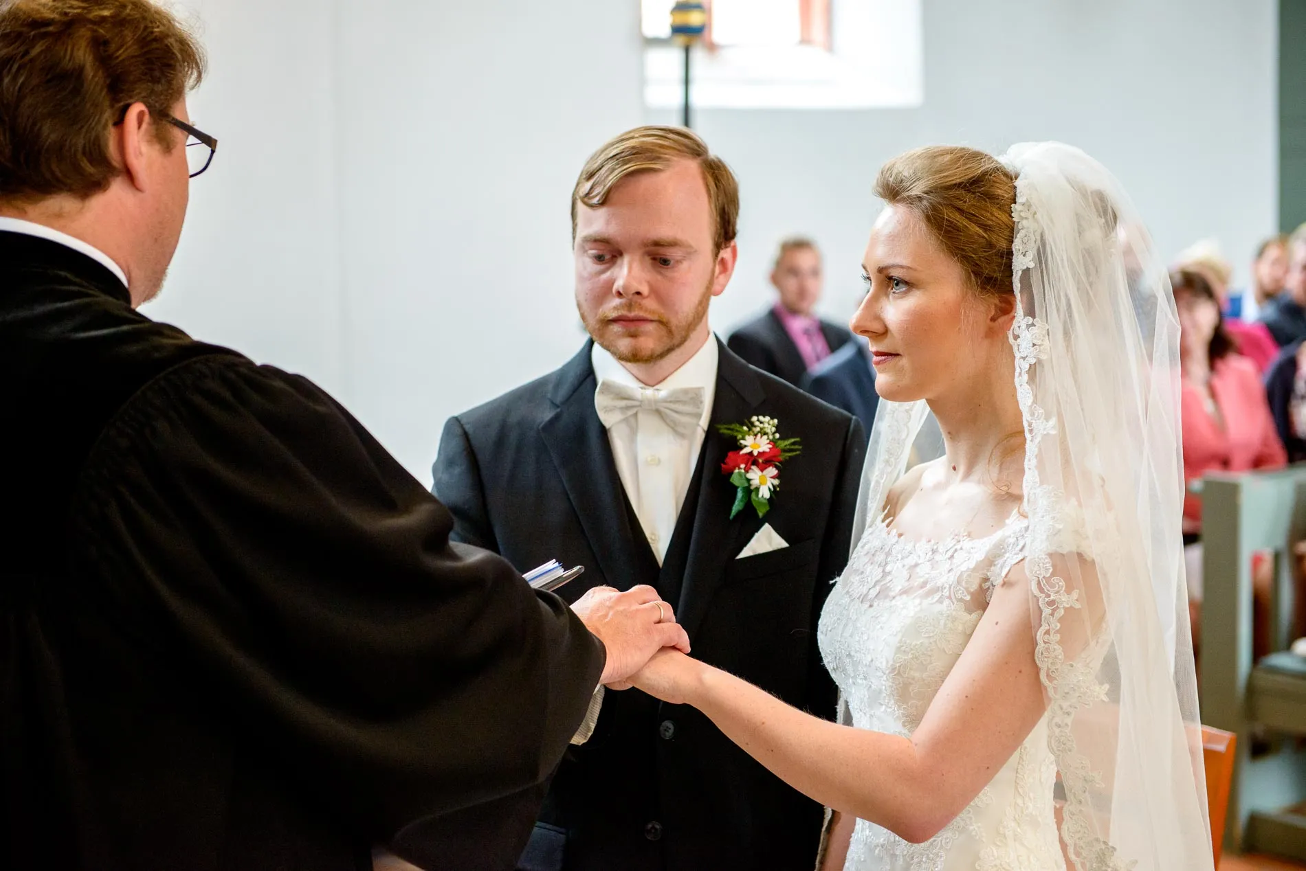 Gestartet hat der Tag im Stadtteil Schalkhausen, genauer gesagt in der evangelischen Kirche St. Nikolaus. Ein charmantes Gotteshaus mit langer Geschichte, das sich trotz seiner bescheidenen Größe als würdiger Rahmen für eine internationale Eheschließung erwies. Die Braut wurde traditionell vom Vater zum Altar geführt, während der Bräutigam vorne wartete – ein Bild, das selbst nach Hunderten Hochzeiten immer wieder berührt.