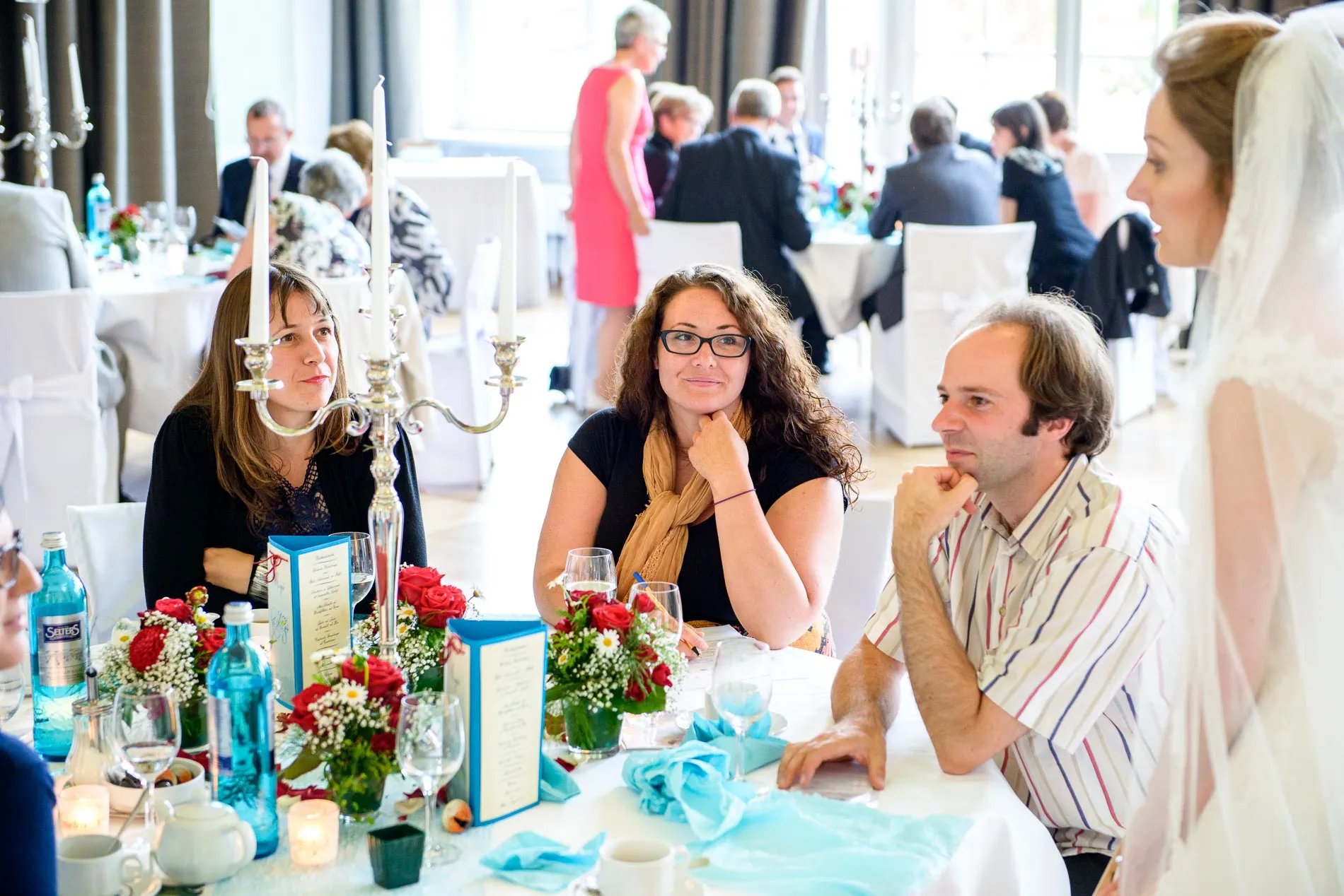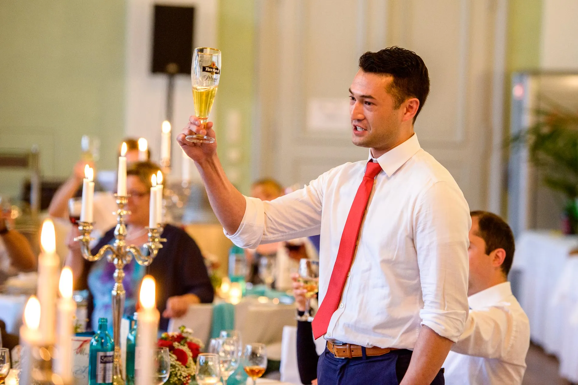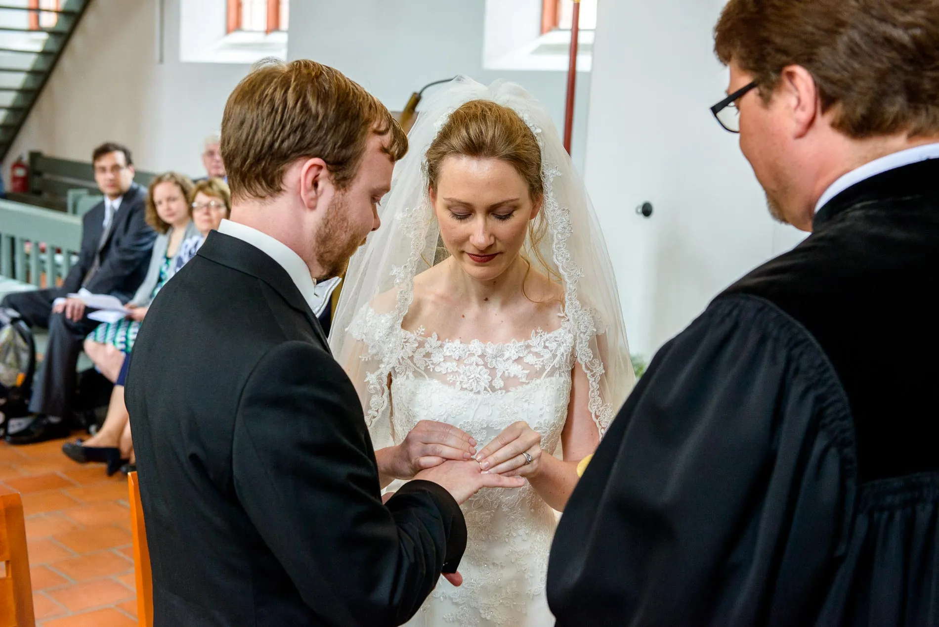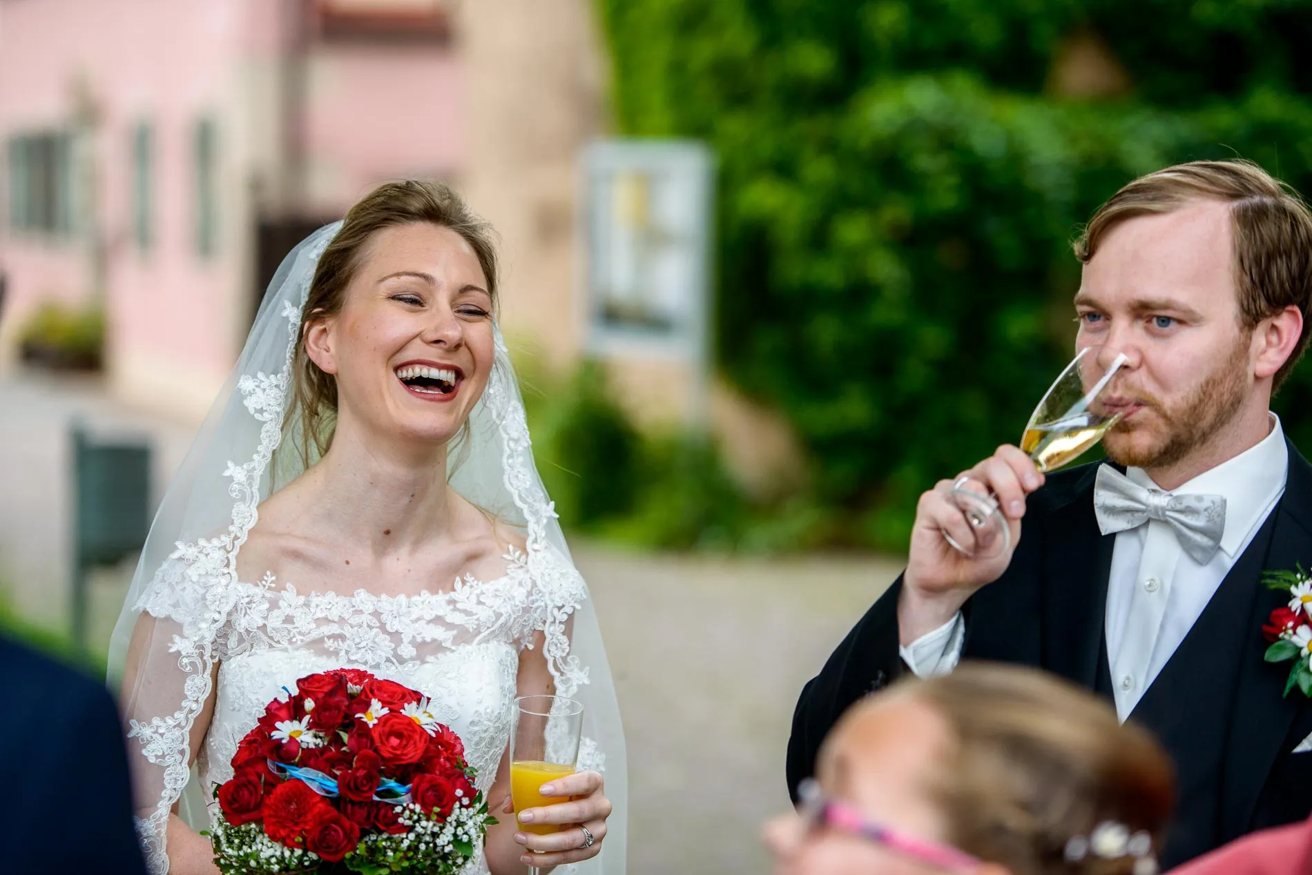 Gestartet hat der Tag im Stadtteil Schalkhausen, genauer gesagt in der evangelischen Kirche St. Nikolaus. Ein charmantes Gotteshaus mit langer Geschichte, das sich trotz seiner bescheidenen Größe als würdiger Rahmen für eine internationale Eheschließung erwies. Die Braut wurde traditionell vom Vater zum Altar geführt, während der Bräutigam vorne wartete – ein Bild, das selbst nach Hunderten Hochzeiten immer wieder berührt.