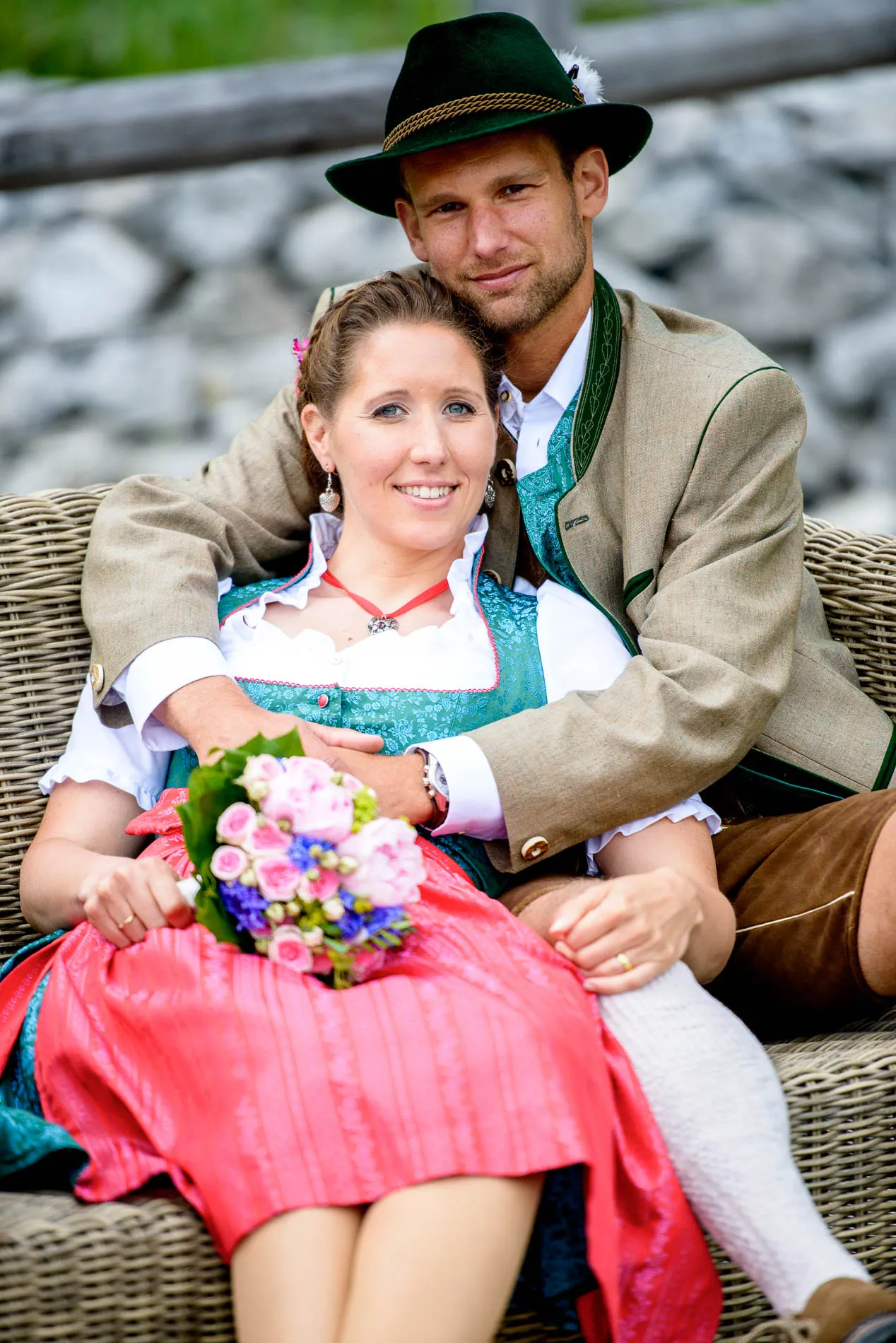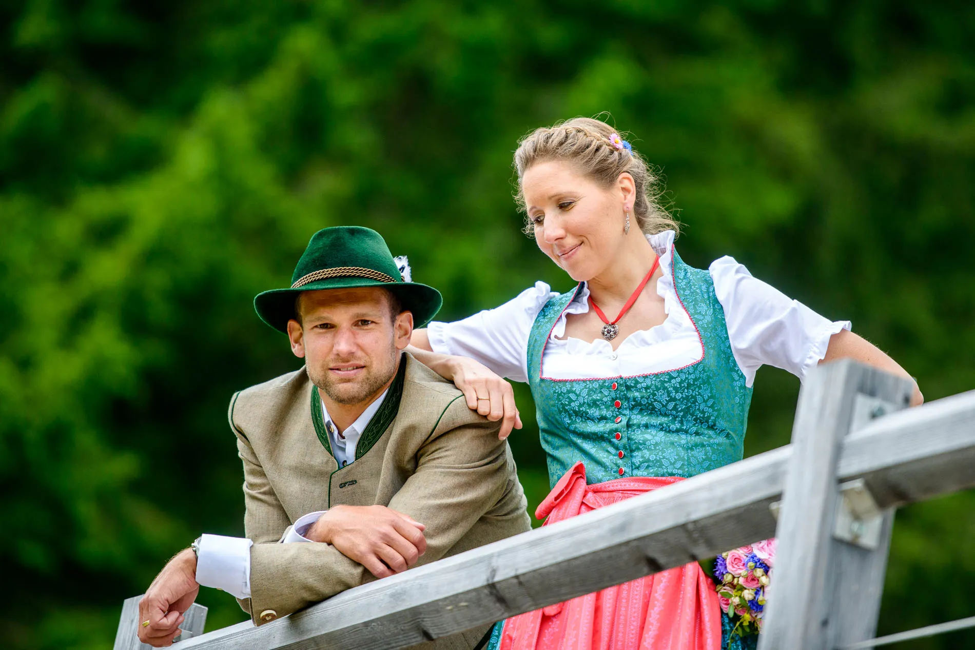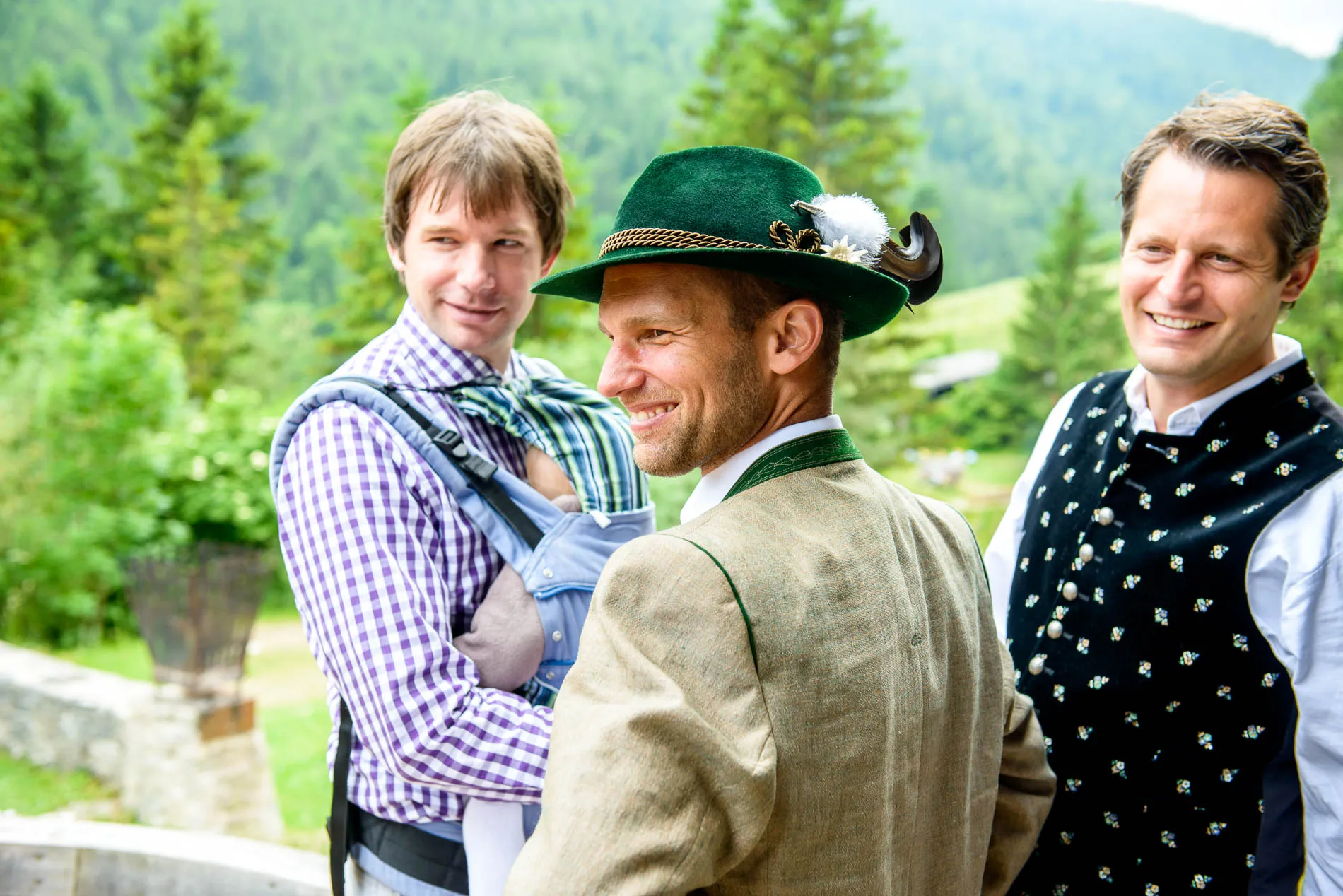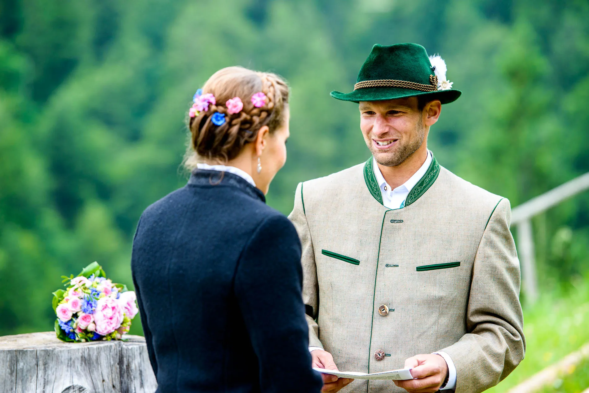 Schon beim ersten Blick auf das Brautpaar war klar: Hier wird nicht nur geheiratet, hier wird Tradition gelebt. Der Bräutigam im Trachtenanzug, die Braut im Dirndl – eine Kombination, die so zeitlos ist wie die Berge selbst. Einige Gäste ließen es sich nicht nehmen, stilecht in Lederhosen den Aufstieg zum Sillberghaus zu meistern. Wer behauptet, dass man für eine Hochzeit unbedingt Lackschuhe braucht, hat vermutlich noch nie gesehen, wie elegant man in Haferlschuhen eine Alm erklimmen kann.